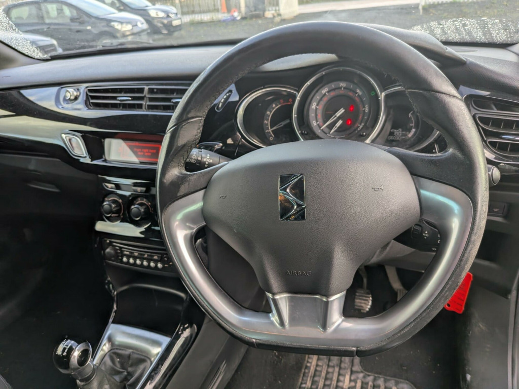 Citreon Ds3 1.6HDi DStyle 3Dr Hatchback Registered Sept 2014Fresh out sod England.Warranted 124k UK Miles With Service History & Verified Vosa MoT History.Full 12 Months MOT.Road Tax Only £20 Per Annum.Full Pre Delivery Inspection In Our Workshop.3 Months Comprehensive No Quibble In House Warranty Included With Option To Extend To 6 Months.Finished In Unmarked Metallic Grey With Black Chequered Cloth Trim.Power Steering,E/Windows, E/Door Mirrors, Air Conditioning, Trip Computer, Cruise Control, Bluetooth Connectivity, RDS Radio/CD/AUX, Remote Central Locking With Factory Alarm & Immobiliser, Alloy Wheels.Part Exchange & All Dealer Facilities Available Including Nationwide Delivery.Signature Cars Of Portadown Best Value Approved Used Cars In Northern Ireland.***** Check Out Our 5Star Reviews On Line ***** v socket, 16in steel wheels with airflow covers, 3d led rear lights, abs - anti-lock braking system, air conditioning, airbags - driver, automatic activation of hazard warning lights, automatic door and boot locking when in motion, auxiliary socket, black panel night-time instrument lighting, bottle holder, chrome front grille surround, connecting box - bluetooth system, courtesy reading lights - front, cruise control, curtain airbags, dark tinted rear windows, dashboard - shiny black, door handles - chrome, door sill protector - chrome, ebfd - electronic brakeforce distribution, electric windows - front with one-touch operation on drivers side, electrically adjustable door mirrors, electronic stability control, emergency brake assistance, exterior temperature display, front fog lights, front fog lights - chrome surround, front lateral airbags, front passenger airbag, gei - gear efficiency indicator, gloss black centre console, gloss black kit - gloss black dashboard with black gear knob, headlights - halogen, height and reach adjustable steering wheel, height-adjustable driver seat, isofix - child seat anchorage points - outer rear, interior mood lighting, led daytime running lights - drls, led signature, lashing eyes in the boot, luggage compartment - lighting, matching body-roof colour, multi-function on-board trip computer, puncture repair kit, radio - rds with cd and mp3 player, rear head restraints, remote central locking with deadlocks, roof colour painted door mirrors with chrome base, scented air freshener, seat belt unfastened warning - driver, seats - 1-3 - 2-3 split folding rear, side rubbing strips - chrome, speakers x6, speed limiter - adjustable, steering wheel - leather with chrome effect inserts, steering wheel mounted controls, storage - front door pockets, storage - front seat back pockets, storage - rear door pockets, sunvisors - front with covered/illuminated mirror, suspension - sports, usb socket, upper dashboard - soft-touch effect, variable power assisted steering