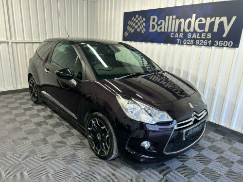 GOOD SPEC CITROEN DS3 1.6E-HDI AIRDREAM DSTYLE PLUS 3DR. SPEC INCLUDES** ONLY £20 ROAD TAX** LOW INSURANCE** 17 INCH ALLOYS** PRIVACY GLASS** REAR PARK SENSORS** FRONT CENTRE ARM REST** BLUE TOOTH** AIR CONLOW RATE FINANCE DEALS AVAILABLE WITH NO DEPOSIT REQUIREDALL TRADE IN`S WELCOMETELEPHONE MARK OR STUART ON 02892 613600 OR 07802 396444. 12V Socket, 17in Alloy Wheels - Bellone Black, 3D LED Rear Lights, ABS - Anti-Lock Braking System, Air Conditioning, Air Conditioning - Automatic-Digital, Airbags - Driver, Armrest - Front Centre, Auto-Dimming Electrochrome Rear View Mirror, Automatic Activation of Hazard Warning Lights, Automatic Door and Boot Locking when in Motion, Auxiliary Socket, Black Panel Night-time Instrument Lighting, Bottle Holder, Chrome Front Grille Surround, City Signature Pack, Connecting Box - Bluetooth System, Contrasting Body-Roof Colour, Courtesy Reading Lights - Front, Cruise Control, Curtain Airbags, Dark Tinted Rear Windows, Dashboard - Shiny Black, Door Handles - Chrome, Door Mirrors - Electrically Adjustable-Heated-Folding, Door Sill Protector - Chrome, EBFD - Electronic Brakeforce Distribution, Electric Windows - Front with One-touch Operation on Drivers Side, Electronic Stability Control, Emergency Brake Assistance, Exterior Temperature Display, Front Fog Lights, Front Fog Lights - Chrome Surround, Front Lateral Airbags, Front Passenger Airbag, GEI - Gear Efficiency Indicator, Gloss Black Centre Console, Gloss Black Kit - Gloss Black Dashboard with Black Gear Knob, Headlights - Automatic, Headlights - Halogen, Height and Reach Adjustable Steering Wheel, Height-Adjustable Driver Seat, ISOFIX - Child Seat Anchorage Points - Outer Rear, Interior Mood Lighting, LED Daytime Running Lights - DRLs, LED Signature, Lashing Eyes in the Boot, Luggage Compartment - Lighting, Matching Body-Roof Colour, Multi-Function On-Board Trip Computer, Plus Pack, Puncture Repair Kit, Radio - RDS with CD and MP3 Player, Rain Sensing Automatic Front Windscreen Wipers, Rear Head Restraints, Rear Parking Sensors, Remote Central Locking with Deadlocks, Roof Colour Painted Door Mirrors with Chrome Base, Scented Air Freshener, Seat Belt Unfastened Warning - Driver, Seats - 1-3 - 2-3 Split Folding Rear, Side Rubbing Strips - Chrome, Speakers x6, Speed Limiter - Adjustable, Steering Wheel - Leather with Chrome Effect Inserts, Steering Wheel Mounted Controls, Storage - Front Door Pockets, Storage - Front Seat Back Pockets, Storage - Rear Door Pockets, Sunvisors - Front with Covered/Illuminated Mirror, Suspension - Sports, USB Socket, Upper Dashboard - Soft-Touch Effect, Variable Power Assisted Steering, 12V Socket - Front, 17in Alloy Wheels - Aphrodite Black, Carpet Mats - Front and Rear, Cruise Control with Speed Limiter, Door Mirrors - Electrically Heated-Folding, Drivers and Passengers Sunvisor with Courtesy Mirror, Pollen Filter, Tyre Pressure Monitor.