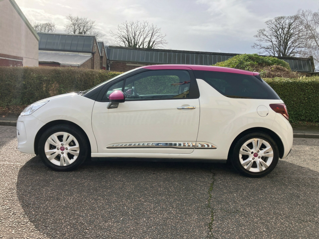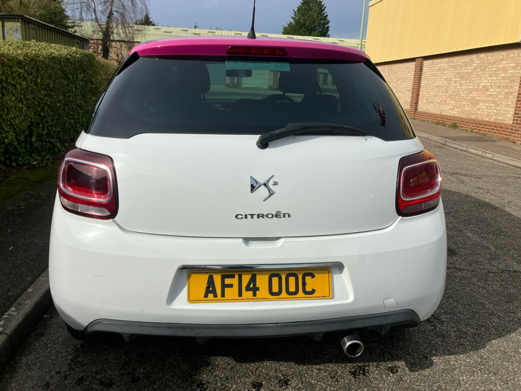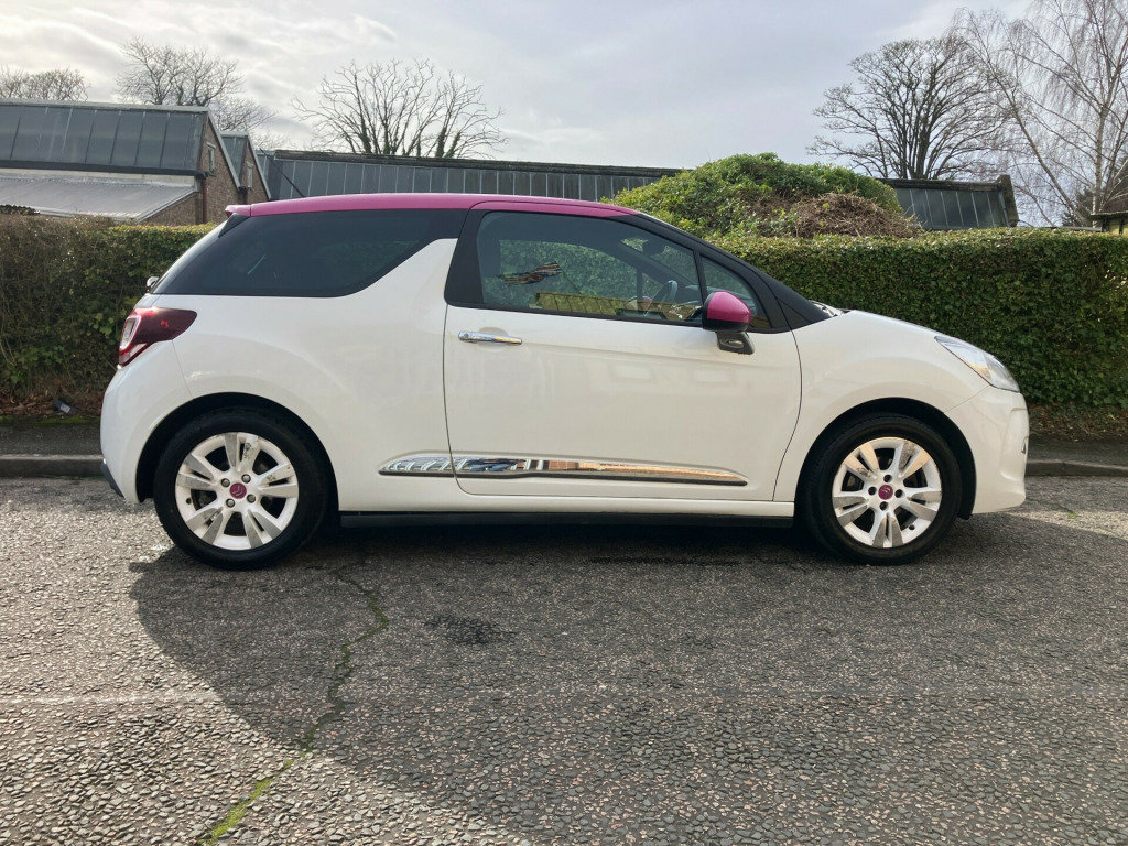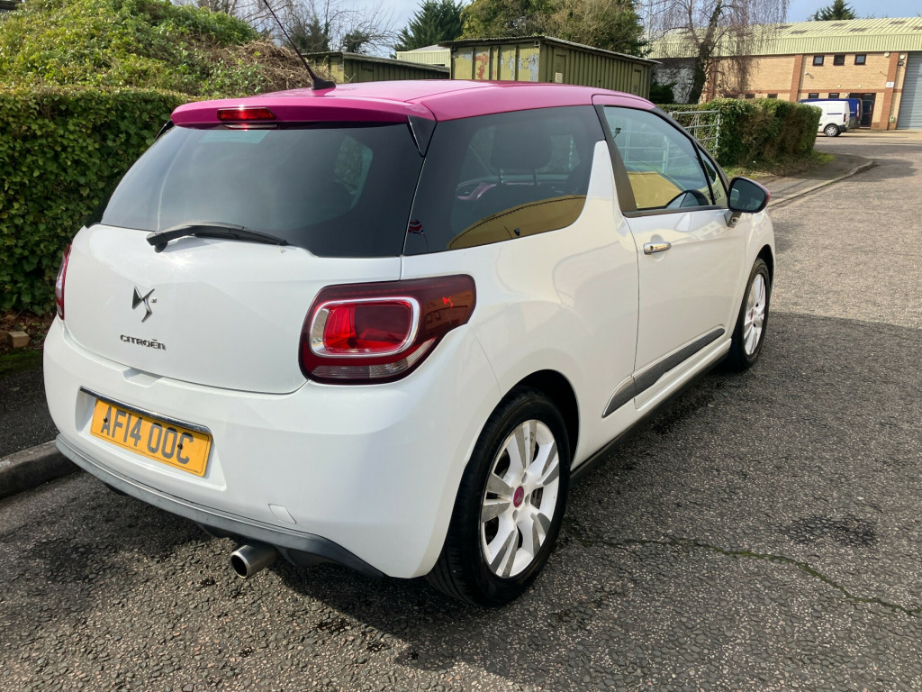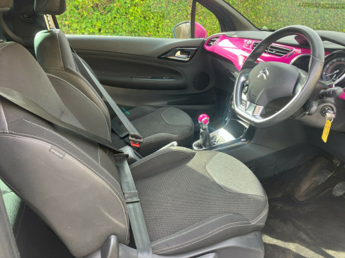 FULL SERVICE HISTORY, 2014 Citroen DS3 1.6 VTi DStyle Pink Hatchback with 3 doors and a manual petrol engine, boasting 75000 WILL HAVE NEW MOT . This ULEZ compliant car offers ample space with 5 seats and is equipped with features such as a 12V socket, auxiliary socket, connecting box with Bluetooth system, hi-fi audio upgrade, and a radio with CD and MP3 player. A stylish and reliable ride, this Citroen DS3 is perfect for city driving and comes with a Euro 5 engine delivering 120 ps of power. Don't miss out on this high-quality vehicle that offers both comfort and practicality. WARRANTY SPARE KEY OPEN 7 DAYS A WEEK FREE AA BREAKDOWN COVER PLEASE PHONE BEFORE ARRIVING 07831 303095 v socket, auxiliary socket, connecting box - bluetooth system, hi-fi system audio upgrade, radio - rds with cd and mp3 player, speakers x6, usb socket, 16in alloy wheels - ashera - matched to body colour, chrome front grille surround, dark tinted rear windows, door handles - chrome, door mirrors - fuchsia, electric windows - front with one-touch operation on drivers side, electrically adjustable door mirrors, front fog lights - chrome surround, fuchsia wheel centre caps, led signature, matching body-roof colour, puncture repair kit, roof colour - fuchsia, roof colour painted door mirrors with chrome base, side rubbing strips - chrome, 3d led rear lights, front fog lights, headlights - halogen, led daytime running lights - drls, abs - anti-lock braking system, airbags - driver, automatic activation of hazard warning lights, automatic door and boot locking when in motion, curtain airbags, ebfd - electronic brakeforce distribution, electronic stability control, emergency brake assistance, front lateral airbags, front passenger airbag, isofix - child seat anchorage points - outer rear, remote central locking with deadlocks, seat belt unfastened warning - driver, air conditioning, black panel night-time instrument lighting, bottle holder, courtesy reading lights - front, dashboard - fuschia, dashboard - shiny black, door sill protector - chrome, fuchsia gear lever insert, gloss black centre console, height and reach adjustable steering wheel, height-adjustable driver seat, interior mood lighting, lashing eyes in the boot, luggage compartment - lighting, rear head restraints, scented air freshener, seats - 1-3 - 2-3 split folding rear, steering wheel - leather with chrome effect inserts, steering wheel mounted controls, storage - front door pockets, storage - front seat back pockets, storage - rear door pockets, sunvisors - front with covered/illuminated mirror, upper dashboard - soft-touch effect, cruise control, exterior temperature display, gei - gear efficiency indicator, multi-function on-board trip computer, speed limiter - adjustable, suspension - sports, variable power assisted steering