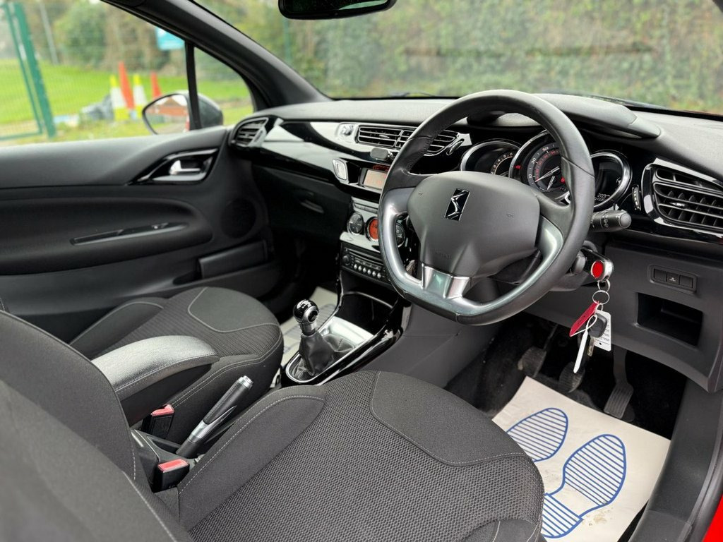 ere for sale at Leigh Cars Ltd we are delighted to present this lovely example of a Citroen DS3 1.6 petrol D-Style Plus 3dr 120bhp hatchback finished in sport red paint, with freshly refurbished 17" gloss black alloys, making this one really stand out from the crowd! This fine example comes with great service history (7 stamps) including new cam belt + water pump done in 2020. As part of our through pre sale safety checks and preparations the car also benefits from a fresh service and a brand new MOT - expiry January 2027. The D-Style Plus model comes with some great features which include rear parking aid, auto. lights + wipers, bluetooth, automatic air conditioning, cruise control, MP3 + CD player, electric windows, remote central locking, 17" alloy wheels, 2 keys + much much more. Road tax is £195 and average fuel economy of 49.6 mpg combined and is ULEZ charge exempt. This great value low mileage example drives absolutely faultlessly and is in exemplary condition inside and out! If you are looking for style on a budget as well as cheap ongoing running costs then look no further. Book in your appointment today to avoid disappointment, viewing is strictly by appointment only. As we are an AA accredited dealer you will receive 12 months complimentary AA roadside assistance. AA warranty packages available up to 2 years and superb low rate zero deposit finance deals available today. Why not give us a call or visit our website finance calculator to see how affo Roof Colour - Perla Nera Black, Sport Red, 12V Socket, 17in Alloy Wheels - Bellone Black, 3D LED Rear Lights, ABS - Anti-Lock Braking System, Air Conditioning, Air Conditioning - Automatic-Digital, Airbags - Driver, Armrest - Front Centre, Auto-Dimming Electrochrome Rear View Mir, Automatic Activation of Hazard Warning L, Automatic Door and Boot Locking when in , Auxiliary Socket, Black Panel Night-time Instrument Lighti, Bottle Holder, Chrome Front Grille Surround, City Signature Pack, Connecting Box - Bluetooth System, Contrasting Body-Roof Colour, Courtesy Reading Lights - Front, Cruise Control, Curtain Airbags, Dark Tinted Rear Windows, Dashboard - Shiny Black, Door Handles - Chrome, Doo