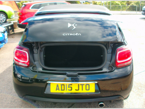 £20 A YEAR ROAD TAX ON THIS 2015 CONVERTIBLE CITRON DS-3 1.2 PURETECH D-STYLE PLUS BLACK, 43,732 MILES, COMPREHENSIVE 8 STAMP SERVICE HISTORY, 3 OWNERS, ELECTRIC POWER SOFT TOP ROOF, REAR PARK SENSORS, CRUISE CONTROL, AIR CON, CD PLAYER, AUX, USB, ULEZ COMPLIANT, E/MIRRORS, E/WINDOWS, C/LOCKS, ABS, MULTI AIR BAGS, ISOFIX, CLOTH UPHOLSTERY, FOG LAMPS, TINTS, 17'' ALLOY WHEELS, CAMBELT CHANGED MARCH 2021 AT 42,336 MILES, SUSSEX, EAST SUSSEX, EASTBOURNE, BN236PJ, 01323 643326, r conditioning, cruise control, multi-function steering wheel, power steering, abs, isofix child seat anchor points, multiple airbags, central locking, electric mirrors, electric windows, power hood, auxiliary input socket, cd player, alloy wheels, colour coded body, front fog lights, ulez compliant, usb, zero admin charge, £20 a year road tax