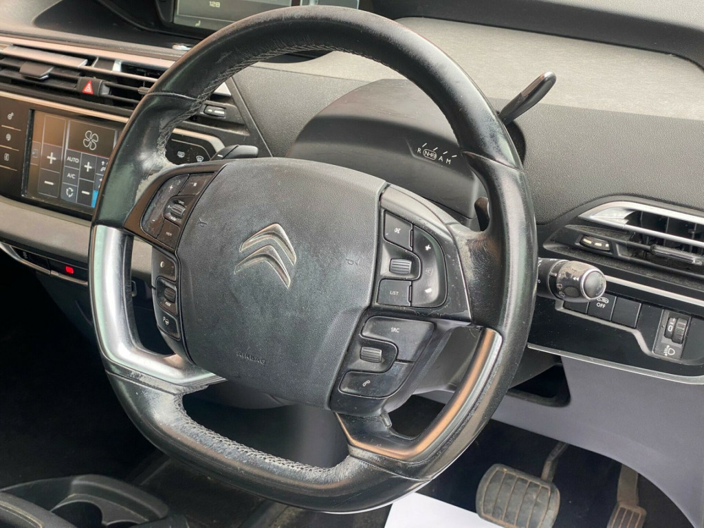 This 2014 Citroen Grand C4 Picasso e-HDi Exclusive+ is a remarkable example, having had only two owners from new. This seven seater MPV is powered by an efficient 1.6 litre diesel engine, offering an impressive fuel economy of 71 miles per gallon and benefiting from low CO2 emissions. The Exclusive+ trim level ensures a premium experience, enhanced by features such as Blind Spot Detection with Blind Spot Assistance, a panoramic sunroof with dark tinted glass that can be opened, and front parking sensors for easier manoeuvring.Further enhancing your driving comfort and convenience, this Grand C4 Picasso includes Bi-Zone climate control, allowing personalised temperature settings for both driver and passenger, and Active Cruise Control which adapts your speed to maintain a safe distance from the vehicle ahead. These highlights demonstrate how this particular vehicle offers a superior ownership experience compared to other similar models on the market. v socket - front, 12v socket - luggage compartment, 12v socket - rear, 12in hd panoramic central display, 12v socket - row 2, 17in alloy wheels - boa, 7in touch drive interface, abs - anti-lock braking system, active seatbelt safety system, air conditioning - automatic with dual zone temperature setting, air vents for rear seat passengers, airbags - curtain front and rear, airbags - driver, airbags - lateral front and rear, anti-theft alarm - parametric and volumetric, anti-theft immobiliser, armrest - front adjustable, auto-dimming electrochrome rear view mirror, automatic activation of hazard warning lights, automatic door and boot locking when in motion, auxiliary socket, bi-zone climate control, black panel night-time instrument lighting, black panel on-off instrument lighting, blind spot detection, blown bulb detection, bluetooth media streaming, bluetooth system, bumpers - body coloured, bumpers - body coloured partially painted front and rear, bumpers - chrome lower inserts, central locking - remote, child locks - electric with indicator, collision alert, compressor with puncture repair kit, cornering lights, courtesy reading lights - front and rear, cruise control - active, cup holders, curtain airbags, dark tinted - side windows (laminated/acoustic), dark tinted rear windows, dashboard (upper) - two-tone soft touch, dashboard - gloss finish grey, dashboard trim and air vent surrounds - aluminium, deadlocks, door handles - chrome insert, door handles - gloss black with chrome trim, door mirrors - body coloured with led indicators, door mirrors - electrically heated-folding, door mirrors - kerb lighting, door mirrors - reverse dipping, door sill protector - front and rear, drivers and passengers sunvisor with courtesy mirror, eba - electronic brake assistance, ebfd - electronic brakeforce distribution, esp - electronic stability programme, electric footrest - front passengers, electric parking brake, electric windows - front and rear with one touch operation and anti pinch, electronic rear window locks, exclusive style pack, find my car feature, flat tyre indicator, fold out flat load cover panel - bridges gap between folded seat and boot floor, front fog lights with cornering function, front parking sensors, front passenger airbag, front passenger relax function- electric footrest and massage, gei - gear efficiency indicator, glove box - illuminated and ventilated, guide me home headlights function, head restraints - extra support, headlights - automatic, headlights - halogen, height and reach adjustable steering wheel, height-adjustable driver seat, hill start assist, isofix - child seat anchorage points - rear x3, integrated fold-down aircraft style tray tables in back of front seats, interior mood lighting, jukebox - 8gb hard drive, keyless access and start, kids pack, led daytime running lights - drls, luggage compartment - sill scuff protector, multi-function on-board trip computer, panoramic sunroof with dark tinted glass, panoramic windscreen with sun blinds - sliding, park assist with gap measurement, pollen filter, power assisted steering - electric/variable, radio, radio - am/fm, radio - dab, rain sensing automatic front windscreen wipers, reading spot light for rear aircraft style tray tables, rear aircraft style tables, rear hanging hooks, rear lights - led 3d effect, rear parking sensors, rear passenger observation mirror, removable and rechargeable torch in boot, retractable roller-blind load cover, reversing camera, scented air freshener, seat belt unfastened warning, seats - drivers electric massage function, seats - front electric lumbar adjustment, seats - front passenger flat folding height and tilt adjustment, seats - front with massage function, seats - rear with individual sliding fore-aft adjustment, seats - sliding and folding flat row 2 - individual x3, speakers x6, speed limiter - adjustable, start button, steering wheel - leather with satin chrome inserts, steering wheel mounted controls, storage - centre console with sliding lid (removable), storage - front door pockets, storage - front seat back pockets, storage drawer under drivers seat, sun blinds - electric sliding for panoramic sunroof, sun blinds - rear side window, sun blinds - sliding front, tailgate - motorised with programmable opening height memory, traction control, tyre pressure monitor, usb socket, usb socket - additional, underfloor compartments in row 2, variable power assisted steering, emyway - colour satellite navigation