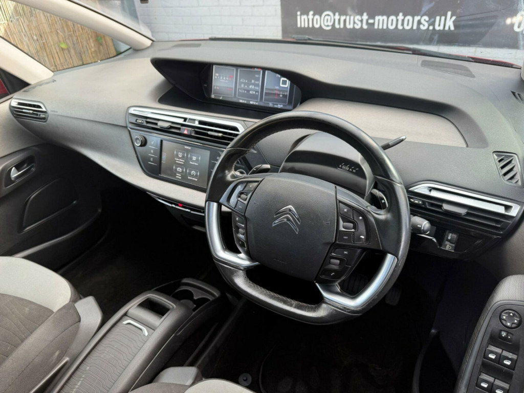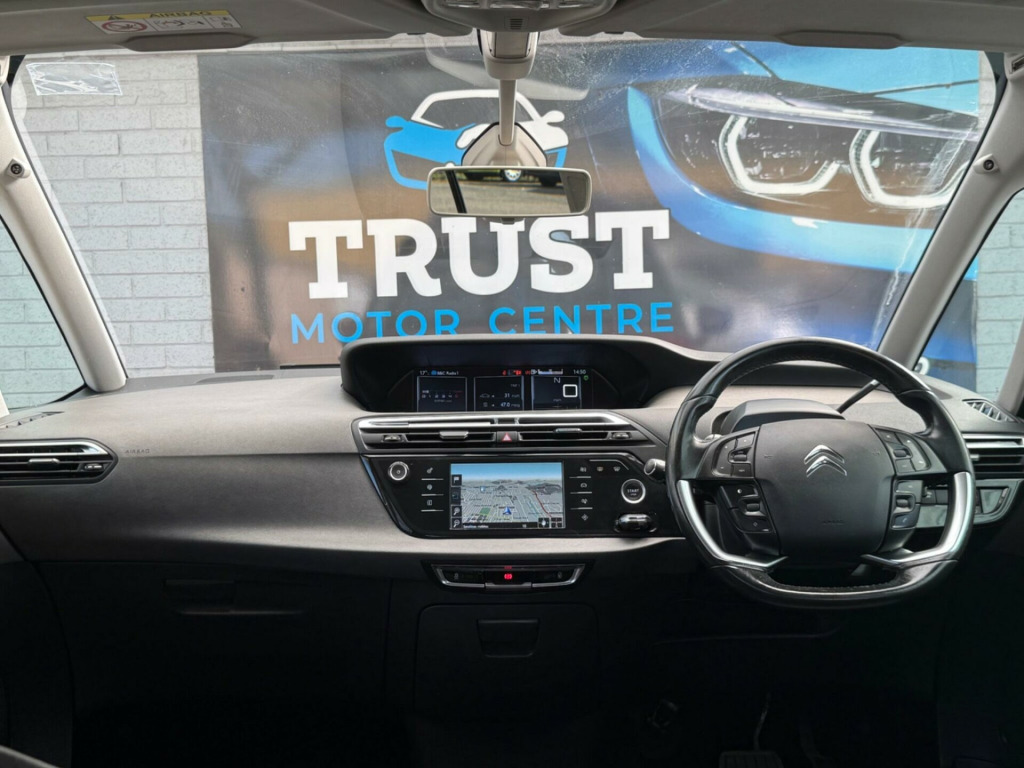 3 MONTHS WARRANTY!!12 MONTHS AA BREAKDOWN COVER!!FINANCE AVAILABLEAn exceptionally maintained Citroen Grand C4 Picasso presented in excellent condition inside and out. Recent service and MOT, new timing belt,Sat-Nav , parking camera , parking sensors, Bluetooth connectivity, cruise control , Here at TRUST MOTOR CENTRE, we are passionate about cars and pride ourselves on customer service. We have our own off-site service and MOT test station and we make sure all our cars fully checked before sale.The car come with a 3-month warranty This is extendable up to 3 years on most cars!We offer a covered viewing area and a heated/air-conditioned office for comfort and a kid’s area on the way!For peace of mind, we welcome any inspection on the car and would be happy to arrange these with a company of your choice.For more information or to book viewing please don’t hesitate to contact us Finance available, Part ex welcomeNationwide Delivery Available. 12V Socket, 12V Socket - Luggage Compartment, 12V Socket - Rear, 12in HD Panoramic Central Display, 17in Alloy Wheels - Boa, 7in Touch Drive Interface, ABS - Anti-Lock Braking System, Air Conditioning - Automatic with Dual Zone Temperature Setting, Air Vents for Rear Seat Passengers, Airbags - Driver, Airbags - Front Passenger with Cut-Off Device, Anti-Theft Alarm - Parametric and Volumetric, Anti-Theft Immobiliser, Armrest - Front Adjustable, Automatic Activation of Hazard Warning Lights, Automatic Door and Boot Locking when in Motion, Auxiliary Socket, Black Panel Night-time Instrument Lighting, Blown Bulb Detection, Bluetooth Media Streaming, Bluetooth System, Body Colour Door Handles, Bumpers - Body Coloured, Bumpers - Chrome Lower Inserts, Child Locks - Electric with Indicator, Chrome Side Signature, Compressor with Puncture Repair Kit, Cornering Lights, Courtesy Reading Lights - Front and Rear, Cruise Control with Speed Limiter, Cup Holders, Curtain Airbags, Dashboard (Upper) - Two-Tone Soft Touch, Dashboard Trim and Air Vent Surrounds - Aluminium, Door Mirrors - Body Coloured with LED Indicators, Door Mirrors - Electrically Heated-Folding, Door Mirrors - Kerb Lighting, Drivers and Passengers Sunvisor with Courtesy Mirror, EBA - Electronic Brake Assistance, EBFD - Electronic Brakeforce Distribution, ESP - Electronic Stability Programme, Electric Parking Brake, Electric Windows - Front and Rear with One Touch Operation and Anti Pinch, Electronic Rear Window Locks, Fan Speed Adjustment for Rear Seat Passenger Air Vents, Find My Car Feature, Flat Tyre Indicator, Fold Out Flat Load Cover Panel - Bridges Gap Between Folded Seat and Boot Floor, Front Fog Lights with Cornering Function, Front Lateral Airbags, Front Passenger Airbag, GEI - Gear Efficiency Indicator, Glove Box - Illuminated and Ventilated, Guide Me Home Headlights Function, Headlights - Automatic, Headlights - Halogen, Height and Reach Adjustable Steering Wheel, Height-Adjustable Driver Seat, Hill Start Assist, ISOFIX - Child Seat Anchorage Points - Rear x3, Integrated Fold-Down Aircraft Style Tray Tables in Back of Front Seats, Interior Mood Lighting, Jukebox - 8GB Hard Drive, Keyless Access and Start, LED Daytime Running Lights - DRLs, Lashing Eyes in the Boot, Luggage Compartment - Lighting, Luggage Compartment - Sill Scuff Protector, Multi-Function On-Board Trip Computer, Panoramic Windscreen, Pollen Filter, Radio - AM/FM, Radio - DAB, Rain Sensing Automatic Front Windscreen Wipers, Rear Hanging Hooks, Rear Parking Sensors, Removable and Rechargeable Torch in Boot, Retractable Roller-Blind Load Cover, Reversing Camera, Roof Rails - Graphite Grey Side Profile, Seat Belt Unfastened Warning, Seats - Folding Flat Rear - Individual, Seats - Front Passenger Flat Folding Height and Tilt Adjustment, Seats - Rear with Individual Sliding Fore-Aft Adjustment, Speakers x6, Speed Limiter - Adjustable, Start Button, Steering Wheel - Leather with Satin Chrome Inserts, Steering Wheel - Multifunction, Storage - Centre Console with Sliding Lid (Removable), Storage - Drawer Under Front Passengers Seat, Storage - Front Door Pockets, Storage - Front Seat Back Pockets, Storage Drawer Under Drivers Seat, Sun Blinds - Sliding Front, Tinted Windows - Rear, Traction Control, Tyre Pressure Monitor, USB Socket, USB Socket - Additional, Underfloor Compartments in Row 2, Variable Power Assisted Steering, eMyWay - Colour Satellite Navigation. Part service history