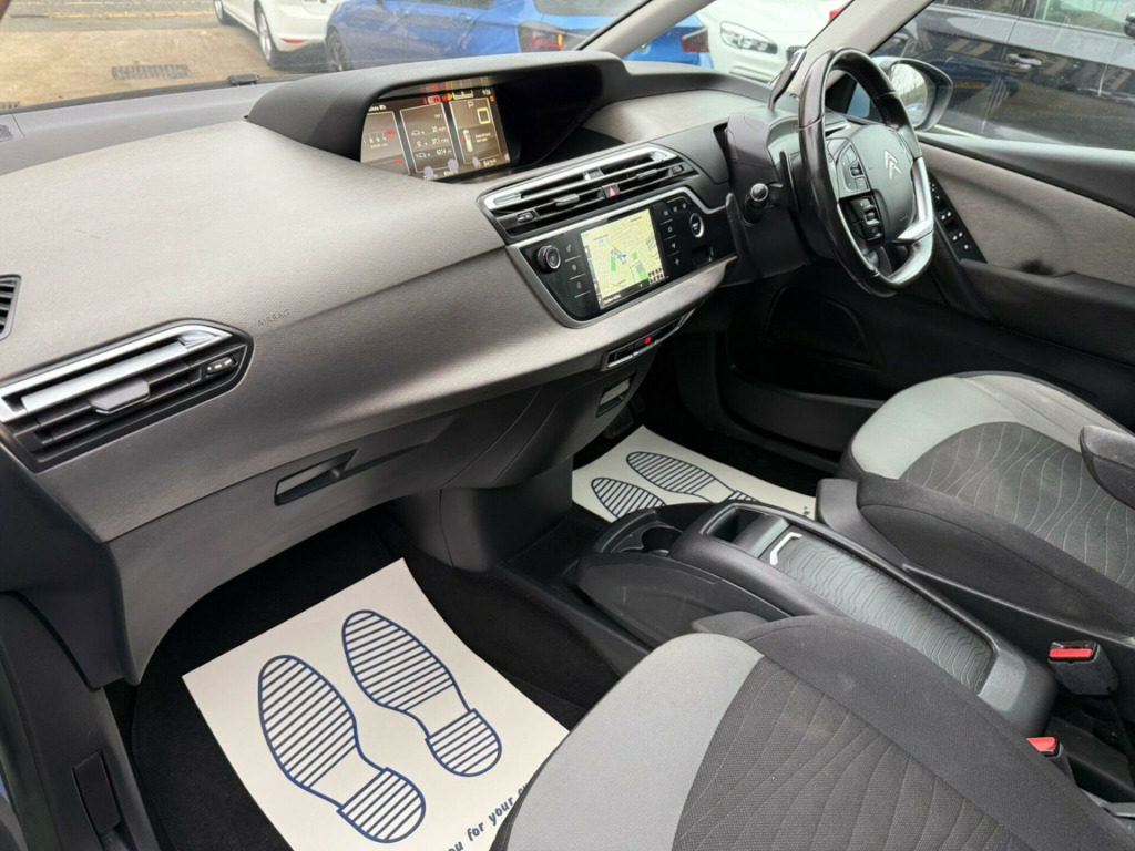 This 2014 Citroen Grand C4 Picasso BlueHDi Exclusive offers exceptional value with its low mileage of just 85,000 miles and only two previous owners. This versatile 7-seater boasts a powerful yet efficient 2.0L diesel engine, meeting the Euro 6 emission class. The Exclusive trim level ensures a comfortable and convenient driving experience, featuring Bi-Zone Climate Control for personalised comfort, rear parking sensors to aid manoeuvring, and keyless access and start for effortless entry and ignition. Stay connected on the go with the integrated Bluetooth system, allowing for hands-free calls and music streaming.Experience impressive fuel economy with this Grand C4 Picasso, achieving an outstanding 63 miles per gallon, which is significantly better than many other vehicles in its class. Its low CO2 emissions also contribute to lower running costs. For those who appreciate performance, the 2.0L diesel engine delivers a brisk 0-62mph acceleration in just 10.2 seconds, demonstrating that efficiency does not compromise responsiveness. This combination of practicality, economy, and performance makes it an excellent choice for families and individuals alike. v socket - front, 12v socket - luggage compartment, 12v socket - rear, 12in hd panoramic central display, 12v socket - row 2, 7in touch drive interface, abs - anti-lock braking system, air conditioning - automatic with dual zone temperature setting, air vents for rear seat passengers, airbags - curtain front and rear, airbags - driver, airbags - lateral front and rear, anti-theft alarm - parametric and volumetric, anti-theft immobiliser, armrest - front adjustable, automatic activation of hazard warning lights, automatic door and boot locking when in motion, auxiliary socket, bi-zone climate control, black panel night-time instrument lighting, black panel on-off instrument lighting, blown bulb detection, bluetooth media streaming, bluetooth system, body colour door handles, bumpers - body coloured, bumpers - body coloured partially painted front and rear, bumpers - chrome lower inserts, central locking - remote, child locks - electric with indicator, compressor with puncture repair kit, cornering lights, courtesy reading lights - front and rear, cruise control with speed limiter, cup holders, curtain airbags, dashboard (upper) - two-tone soft touch, dashboard trim and air vent surrounds - aluminium, deadlocks, door mirrors - body coloured with led indicators, door mirrors - electrically heated-folding, door mirrors - kerb lighting, drivers and passengers sunvisor with courtesy mirror, eba - electronic brake assistance, ebfd - electronic brakeforce distribution, esp - electronic stability programme, electric parking brake, electric windows - front and rear with one touch operation and anti pinch, electronic rear window locks, find my car feature, flat tyre indicator, fold out flat load cover panel - bridges gap between folded seat and boot floor, front fog lights with cornering function, front passenger airbag, gei - gear efficiency indicator, glove box - illuminated and ventilated, guide me home headlights function, headlights - automatic, headlights - halogen, height and reach adjustable steering wheel, height-adjustable driver seat, hill start assist, isofix - child seat anchorage points - rear x3, integrated fold-down aircraft style tray tables in back of front seats, interior mood lighting, jukebox - 8gb hard drive, keyless access and start, kids pack, led daytime running lights - drls, luggage compartment - sill scuff protector, multi-function on-board trip computer, panoramic windscreen with sun blinds - sliding, pollen filter, power assisted steering - electric/variable, radio, radio - am/fm, radio - dab, rain sensing automatic front windscreen wipers, rear aircraft style tables, rear hanging hooks, rear parking sensors, rear passenger observation mirror, removable and rechargeable torch in boot, retractable roller-blind load cover, reversing camera, seat belt unfastened warning, seats - front passenger flat folding height and tilt adjustment, seats - rear with individual sliding fore-aft adjustment, seats - sliding and folding flat row 2 - individual x3, speakers x6, speed limiter - adjustable, start button, steering wheel - leather with satin chrome inserts, steering wheel mounted controls, storage - centre console with sliding lid (removable), storage - drawer under front passengers seat, storage - front door pockets, storage - front seat back pockets, storage drawer under drivers seat, sun blinds - rear side window, sun blinds - sliding front, tinted windows - rear, traction control, tyre pressure monitor, usb socket, usb socket - additional, underfloor compartments in row 2, variable power assisted steering, emyway - colour satellite navigation