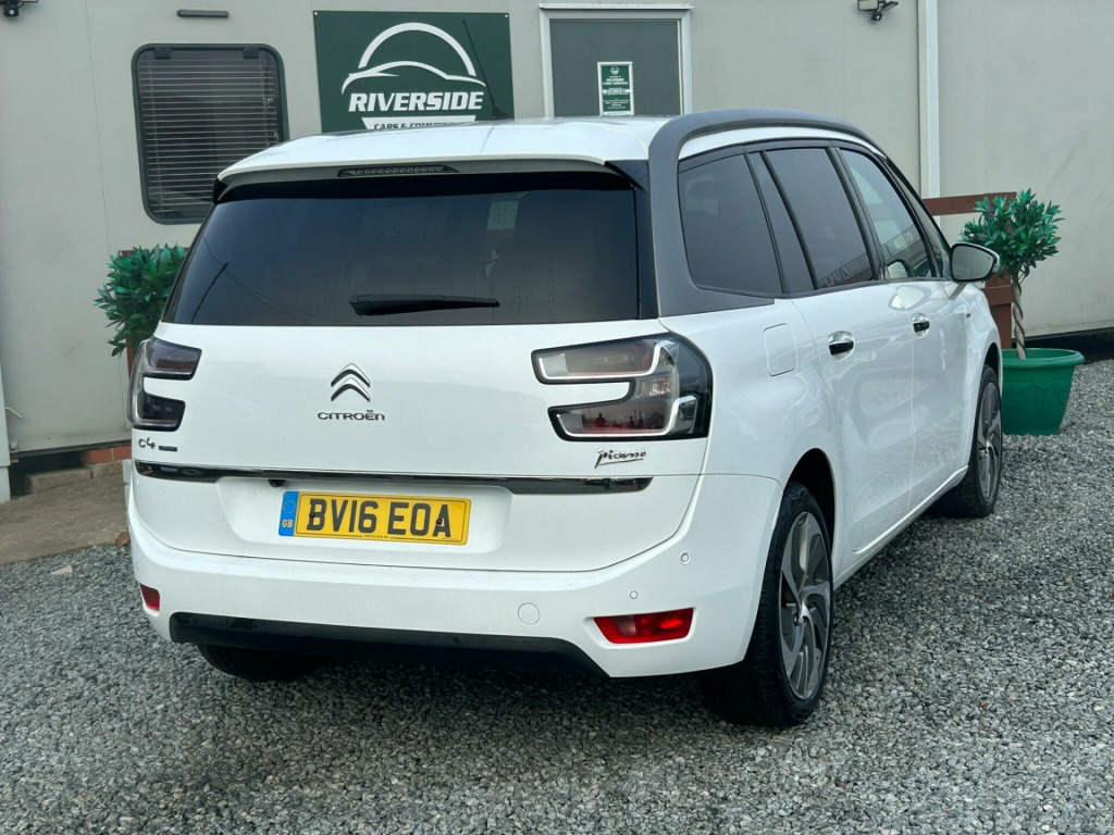 Finished In White This 2016 Citroen Grand C4 Picasso Blue HDi Exclusive+ offers an exceptional blend of practicality and advanced technology. As a 7 seat family car, it is powered by an efficient 2.0L Diesel engine, meeting Euro 6 emission standards. This Exclusive+ trim level comes equipped with automatic headlights, a comprehensive Bluetooth system for calls and media streaming, and air conditioning for the third row, ensuring comfort for all passengers. Furthermore, the advanced Park Assist system includes Blind Spot Monitoring, enhancing safety and ease of manoeuvring in various driving conditions.The fuel economy of this Grand C4 Picasso is a standout feature, achieving an impressive 66 miles per gallon, which is significantly better than many other vehicles in its class. Please note this vehicle does have a dent on the passenger side lower door / arch but the previous owners claimed on there insurance but kept the money rather than repair the damage as in there opinion was minimal, and the payout amount came in more useful at the time, this can be seen it our photos. This vehicle will come with 12 months mot, a sales service & 3 months warranty for total peace of mind. At Riverside Cars & Commercial all our customers have the added peace of mind that all our vehicles are supplied with the following, pre delivery inspection, mot, sales service & 1 months parts & labour warranty & extended warranties are available for total peace of mind. We also have our own workshop facilities on site with use of free courtesy cars available. Part exchange welcome & finance available. We offer both PCP and Hire Purchase agreements, please call us for a free quotation or more information. All of our vehicles have vast specifications, in most cases, far to much too list, so please always check the vehicles exact specification prior to purchase as this is out of our control. Vehicle information is fed via Autotrader. We always have at least 50 vehicles in stock to choose from. For a personalised walk round video or more information please call Tel : 01493 717369, v socket, 12v socket - luggage compartment, 12v socket - rear, 12in hd panoramic central display, 18in alloy wheels - python, 7in touch drive interface, abs - anti-lock braking system, active seatbelt safety system, air conditioning - automatic with dual zone temperature setting, air conditioning - row 3, air vents for rear seat passengers, airbags - driver, airbags - front passenger with cut-off device, aluminium gear surround, anti-theft alarm - parametric and volumetric, anti-theft immobiliser, armrest - front adjustable, auto-dimming electrochrome rear view mirror, automatic activation of hazard warning lights, automatic door and boot locking when in motion, auxiliary socket, black panel on-off instrument lighting, blind spot detection, blown bulb detection, bluetooth media streaming, bluetooth system, bumpers - body coloured, bumpers - chrome lower inserts, carpet mats - front and rear luxury velour, child locks - electric with indicator, compressor with puncture repair kit, courtesy reading lights - front and rear, cruise control, cup holders, curtain airbags, dark tinted rear windows, dashboard (upper) - two-tone soft touch, dashboard - gloss finish grey, dashboard trim and air vent surrounds - aluminium, deadlocks, door handles - gloss black with chrome trim, door mirrors - body coloured with led indicators, door mirrors - electrically heated-folding, door mirrors - kerb lighting, door mirrors - reverse dipping, door sill protector - front and rear, drivers and passengers sunvisor with courtesy mirror, ebfd - electronic brakeforce distribution, esp - electronic stability programme, electric footrest - drivers, electric footrest - front passengers, electric parking brake, electric windows - front and rear with one touch operation and anti pinch, electronic rear window locks, emergency brake assistance, fan speed adjustment for rear seat passenger air vents, find my car feature, flat tyre indicator, front fog lights with cornering function, front lateral airbags, front parking sensors, front passenger airbag, front passenger relax function- electric footrest and massage, gei - gear efficiency indicator, glove box - illuminated and ventilated, guide me home headlights function, head restraints - extra support, headlights - automatic, headlights - halogen, height and reach adjustable steering wheel, height-adjustable driver seat, hill start assist, isofix - child seat anchorage points - rear x3, integrated fold-down aircraft style tray tables in back of front seats, interior mood lighting, jukebox - 8gb hard drive, keyless access and start, kids pack, led daytime running lights - drls, lashing eyes in the boot, luggage compartment - lighting, luggage compartment - sill scuff protector, multi-function on-board trip computer, panoramic sunroof with dark tinted glass, panoramic windscreen, park assist with blind spot monitoring system, pollen filter, radio - dab, rain sensing automatic front windscreen wipers, reading spot light for rear aircraft style tray tables, rear hanging hooks, rear lights - led 3d effect, rear parking sensors, rear passenger observation mirror, removable and rechargeable torch in boot, retractable roller-blind load cover, reversing camera, roof rails - graphite grey side profile, scented air freshener, seat belt unfastened warning, seats - folding flat rear - individual, seats - front electric lumbar adjustment, seats - front passenger flat folding height and tilt adjustment, seats - front with massage function, seats - rear with individual sliding fore-aft adjustment, speakers x6, speed limiter - adjustable, start button, steering wheel - leather with satin chrome inserts, steering wheel - multifunction, storage - centre console with sliding lid, storage - front door pockets, storage - front seat back pockets, storage drawer under drivers seat, sun blinds - electric sliding for panoramic sunroof, sun blinds - rear s