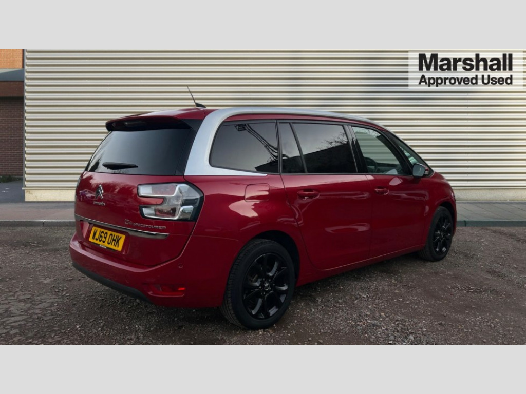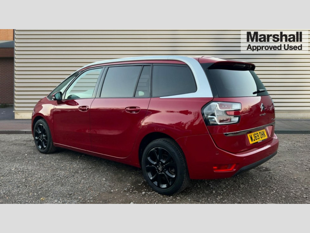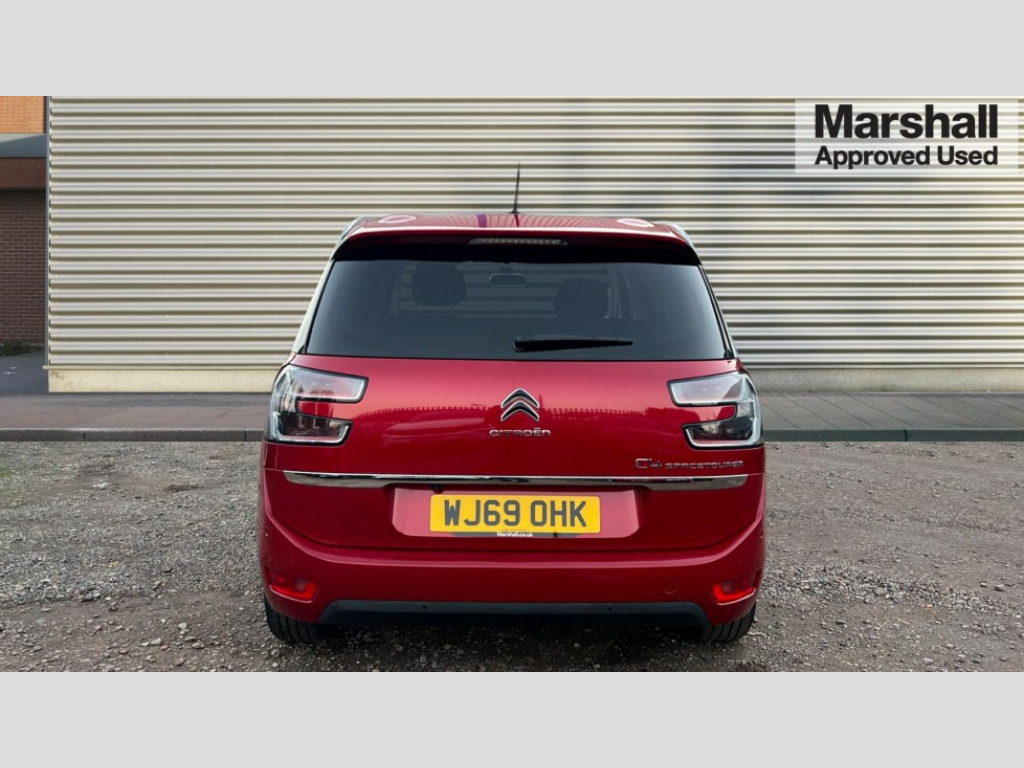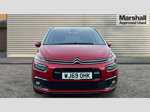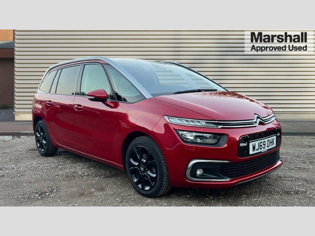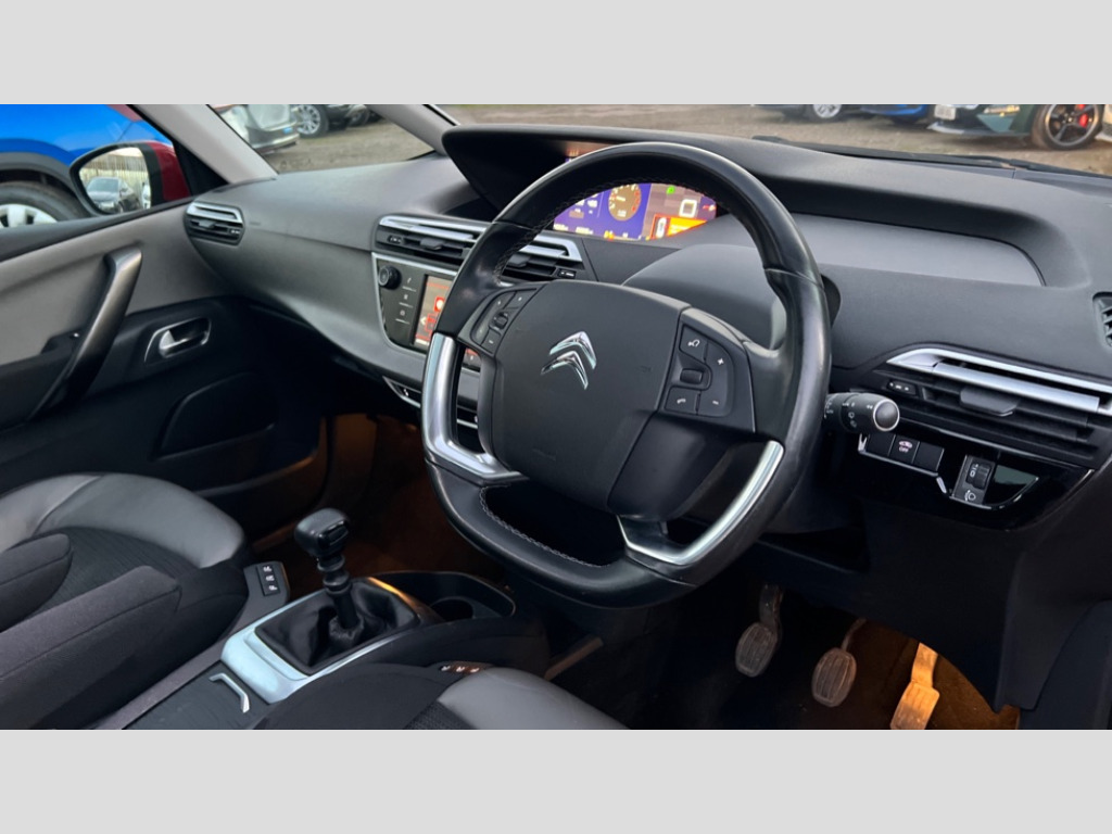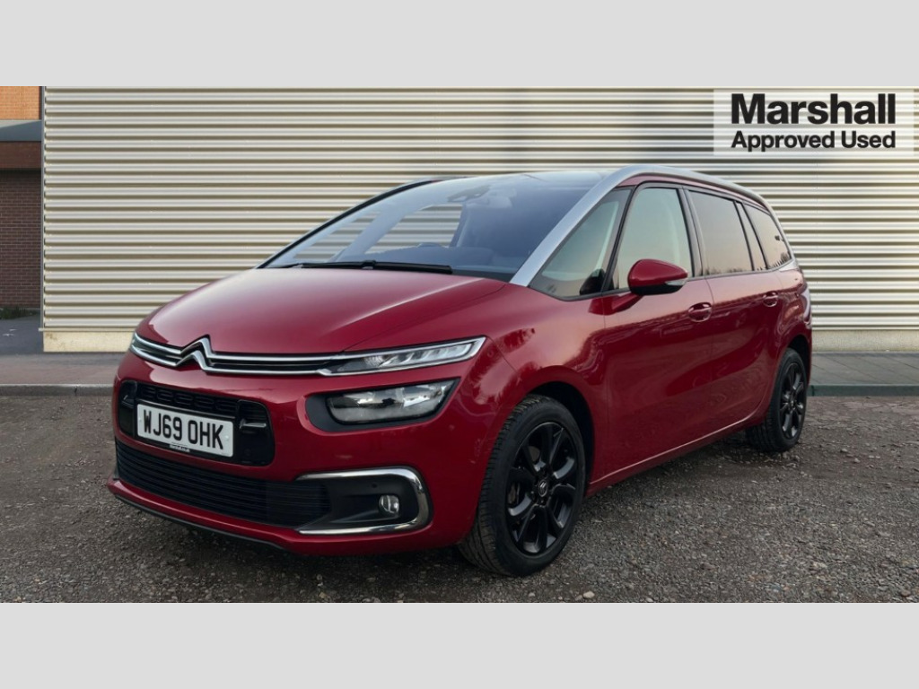 Citroen Grand C4 Spacetourer 1.2 PureTech 130 Flair 5dr 12" Panoramic HD central display, 7" Touch drive interface, Audible lights on warning, Blind spot monitoring system with LED alert on door mirrors, Citroen connect box emergency assist system, Citroen Connect Nav, Coffee Break Alert, Find my car feature, Flat tyre indicator, Front parking sensor, Gear efficiency indicator, Mirror screen with mirror link and car play, Power door closure, Rear parking sensor, Remote fuel cap release, Reversing camera, Service indicator, Trip computer, Variable assistance power steering, Bluetooth hands free and media streaming, DAB Digital radio, RDS radio with 6 speakers and Aux socket, Steering wheel mounted controls, 3D LED rear lights, Aluminium front sill scuff protectors, Aluminium side profile with integrated roof bars, Automatic activation of hazard warning lights, Automatic lights and windscreen wipers, Body colour bumpers, Body colour door handles, Body colour electrically heated, folding and reverse dipping door mirrors with LED indicators, Chrome lower front bumper insert, Cornering function, Dark tinted side windows and rear windscreen, Electric adjustable door mirrors, Electric front/rear windows with one touch/auto up/down, Foot operated motorised tailgate, Front fog lights, Kerb lighting (puddle lights in door mirrors), LED daytime running lights, Panoramic glass sunroof with dark tinted glass/electric sunblind, Panoramic windscreen with sliding interior sun blinds, Rear wiper, Windows total closure mode, 12 volt accessory power socket in central storage compartment, 3 separate full size rear seats with adjustable recline angle, 8 lashing eyes in boot, Additional 12 volt sockets in row 2 and boot, Air vents for rear seat passengers, Automatic digital dual zone air conditioning, Black panel on/off instrument lighting, Boot light, Child observation mirror, Cup holders, Dimmable interior mood lighting, Driver and front passenger seats adjustable armrests, Driver/passenger sunvisors and vanity mirrors, Fabric load cover (parcel shelf), Fan speed adjustment for rear seat passenger air vents, Fixed centre storage box with sliding lid, Fold-down aircraft style tray tables (integrated into back of front seats), Front and rear courtesy reading lights, Front door pockets with bottle holders, Front headrests, Front passengers seat flat folding, Front seat back storage pockets, Height adjustable front passenger seat, Height/tilt adjustable driver's seat, Illuminated and ventilated glove box, Illuminated centre console storage, Integrated retractable rear side window sun blinds, Interior lights activated when doors unlocked, Massage function for driver and front passenger, Rear seats with individual sliding fore/after adjustment, Rear underfloor storage [row 2], Storage under driver's seat, Three ISOFIX mounting points with top tether on all rear seats, Three retractable rear head restraints, ABS with Electronic brakeforce distribution and Emergency braking assistance, Automatic electronic parking brake, Driver, front passenger, front lateral and curtain airbags, Electronic Stability Control (ESC) with intelligent traction control (auto re-activation 30mph+), Five 3 point inertia reel seat belts, Front inertia reel seatbelt with pre-tensioners and force limiters, Hill start assist function, Mono-tone horn, Passenger airbag deactivate switch, Tyre pressure monitor, Unfastened seatbelt visual warning system on all seats + audible warning for driver/front passenger (front passenger presence detection), Immobiliser, Keyless entry and start, Perimetric and volumetric anti theft alarm, Remote central locking + deadlocks, Aluminium dashboard trim and air vent surrounds, Two tone soft touch upper dashboard, 17" Pontevedra alloy wheels, Space saver spare wheel