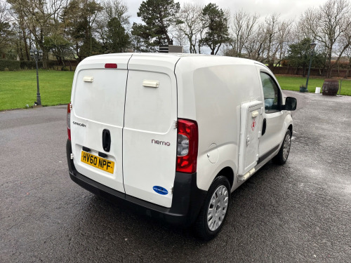 V CAR CAT D. For sale is a 2010 Citroen Nemo 1.4 HDi 8v LX Panel Van with only 42000 miles on the clock. This specialist vehicle runs on diesel and comes with a valid MOT until 18/07/2026. With 2 seats and 3 doors, this van has a gross weight of 1700kg and is perfect for meals on wheels or catering purposes. It boasts a fuel efficiency of 119 g/km and has 70 bhp. The manual transmission, FWD, L1 H1 configuration makes it a practical and reliable vehicle for commercial use. Additional features include adjustable steering column/wheel, armrest, centre console, clock, and electric windows (front). Don't miss out on this opportunity to enhance your business with this Citroen Nemo!, justable steering column/wheel, armrest, centre console, clock, electric windows (front), in car entertainment (radio/cd/mp3), seat height adjustment, seat lumbar support, tinted glass, trip computer, upholstery cloth, air bag driver, anti-lock brakes, central door locking, deadlocks, head restraints, immobiliser, power-assisted steering, seat belt pre-tensioners, third brake light, bulkhead, doors, mirrors external (electric heated/folding), nearside sliding side loading door, spare wheel (full size), steel wheels, power socket, rev counter