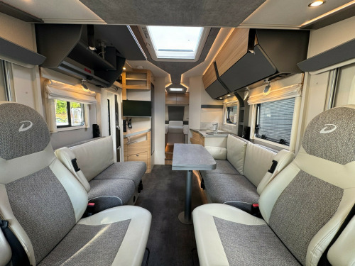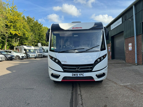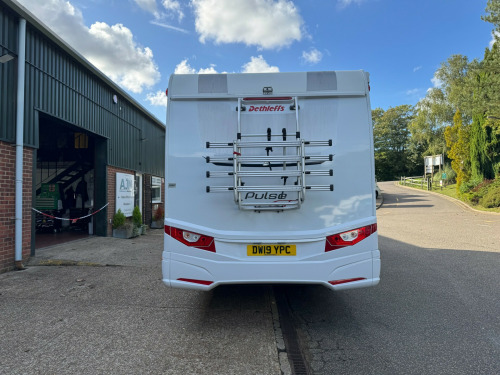 *** NEW ARRIVAL *** Andrew James Motorhomes are delighted to offer this stunning 2019 Dethleffs Pulse GT i7051 EBL on the ever popular Automatic gearbox 150BHP and presented in excellent condition courtesy of the one owner from new. With multiple extras installed.This stunning example A Class motorhome benefits being 4 berth with 4 travels seats. The rear passenger seats convert from side face lounge seating arrangement with front facing back inserts for the rear travel passengers when required as shown in the pictures. The large drop down over cab bed gives the additional sleeping area to the large rear single beds/double bed option over garage end bedroom.The spacious front lounge has wrap around seating with up 6 people with under bench and overhead storage. full Ambient LED lighting throughout, Split folding habitation dinning table which unfolds for large dinning easily reachable by all front seating group. The large drop down double bed above cab complete with memory foam mattress and ladder access if required.Spacious kitchen with sunken sink with flush counter top cover and 3 burner gas hob with split glass lid. over head and under counter storage cupboards and draw units. Built in Thetford under counter oven/Grill with grill tray. Opposite the kitchen is the Thetford low energy 3 way fridge freezer with automatic energy selection. next to the fridge freezer is the Avtex TV with swivel wall bracket with tv points. 12v main control panel with Truma heating and hot water system control panel above main habitation entrance door. Onboard 4G Wi-Fi system.Moving towards the rear of the motorhome is the mid washroom which benefits with ample storage and Thetford toilet with electric flush. Single bowl sink with chrome mixer tap. Opposite in hallway is the separate shower with double door glass screen divide The washroom can also be used as wall divide to main habitation area to create bedroom ensuite for privacy .The rear bedroom again benefits with ample storage and two large wardrobes and over bed and under bed storage and cupboards. The bedroom has additional door divides separating front habitation area. Bed options twin single or one large double bed, being the low bed option no ladder is required for bed access. Externally, 16'' alloys, Dometic Twin lens reverse camera, Dometic wind out canopy awning, LED DRL's, GT graphics pack, Gas locker with space for 2x 6kg bottles, Large heated garage with double door access, electric coach mirrors, solar panel, Goldschmtt hydraulic levelling system. Tyre pressure monitoring system.Chassis upgrade selected on build so currently plated at 4250kg, rear air-bags have been installed. Can be down plated to 3500kg if required.Disclaimer: Whilst every effort is made to ensure the accuracy of the data shown, it is not a definitive statement of specification of the vehicle and no responsibility will be accepted for errors in listing made on this site. uetooth connection, climate control, external gas bbq point, half leather, manufacturer direct, cassette toilet, double bed, end bedroom, fixed bed, hand basin, shower, wardrobe, 3-burner hob, 3-way fridge, fridge freezer, grill, oven, side kitchen, 3 point seatbelts, power steering, cruise control, steering wheel reach adjustment, traction control, trip computer, abs, service indicator, twin air bags, tyre pressure monitor, alarm cat 1, immobiliser, remote central locking, tracker fitted, electric mirrors, heated door mirrors, 3rd party sound system, bluetooth enabled stereo, cd player, radio, tv aerial, front armrest, height adjustable drivers seat, body coloured bumpers, colour coded body, full size spare wheel, led 3rd brake light, led daytime running lights, led rear lights, solid paint, 12v points, 12v usb charging points, 16, 4g wi-fi system, ample external locker space, ample storage offered, automatic, avtex television, dometic awning, double glazed side windows, drop over-cab double bed, external bbq point, height adjustable suspension, internal blinds, internal fitted curtains, large rear garage, led lighting throughout, mains 240v sockets, overhead led lighting, roof mounted solar panel, separate shower with glass screen doors, space for 2x 6kg gas bottles, swivel captains chairs, truma dual fuel heating system, truma electric/gas water heater, tv wall mount bracket, twin leisure batteries, twin lens reverse camera system, weight 4250kg, wrap around cab blinds, goldschmtt hydraulic levelling system, 16'' Alloys
