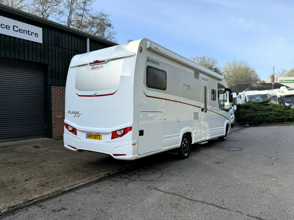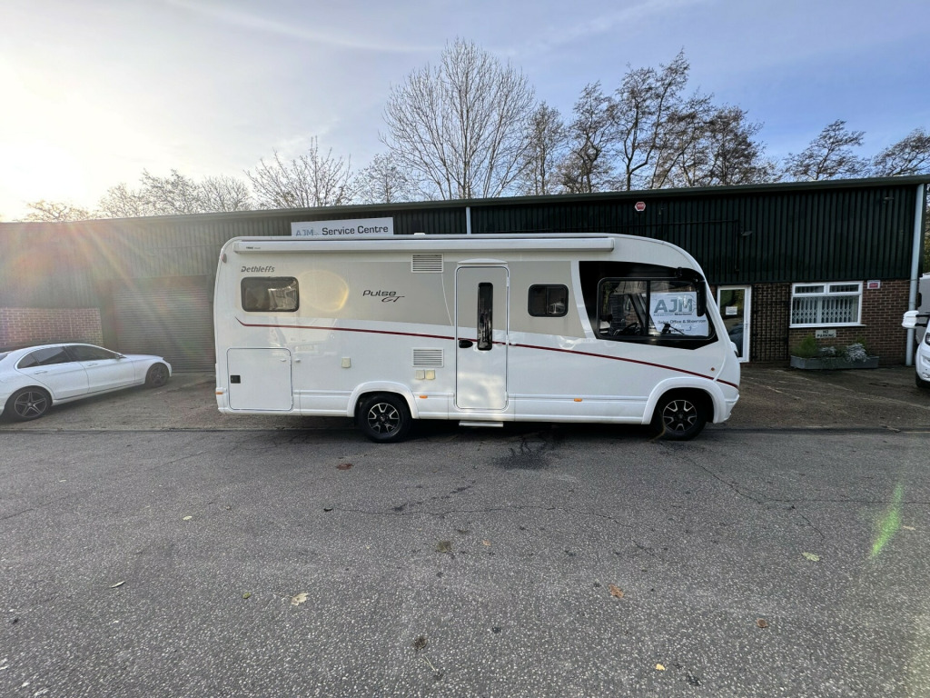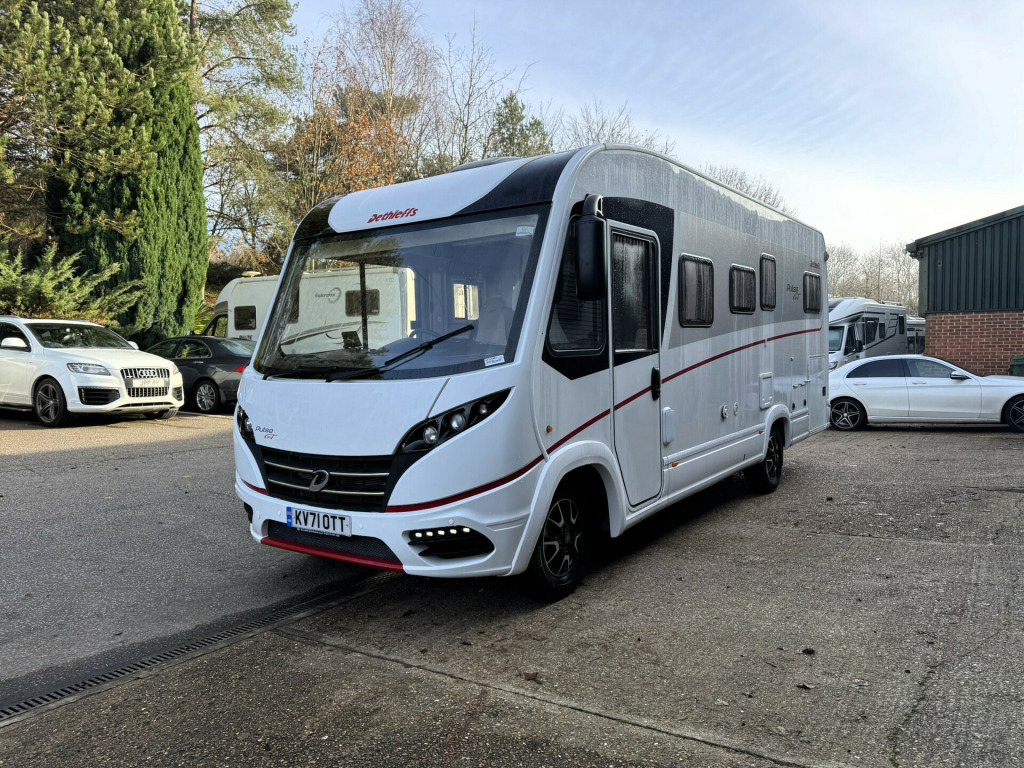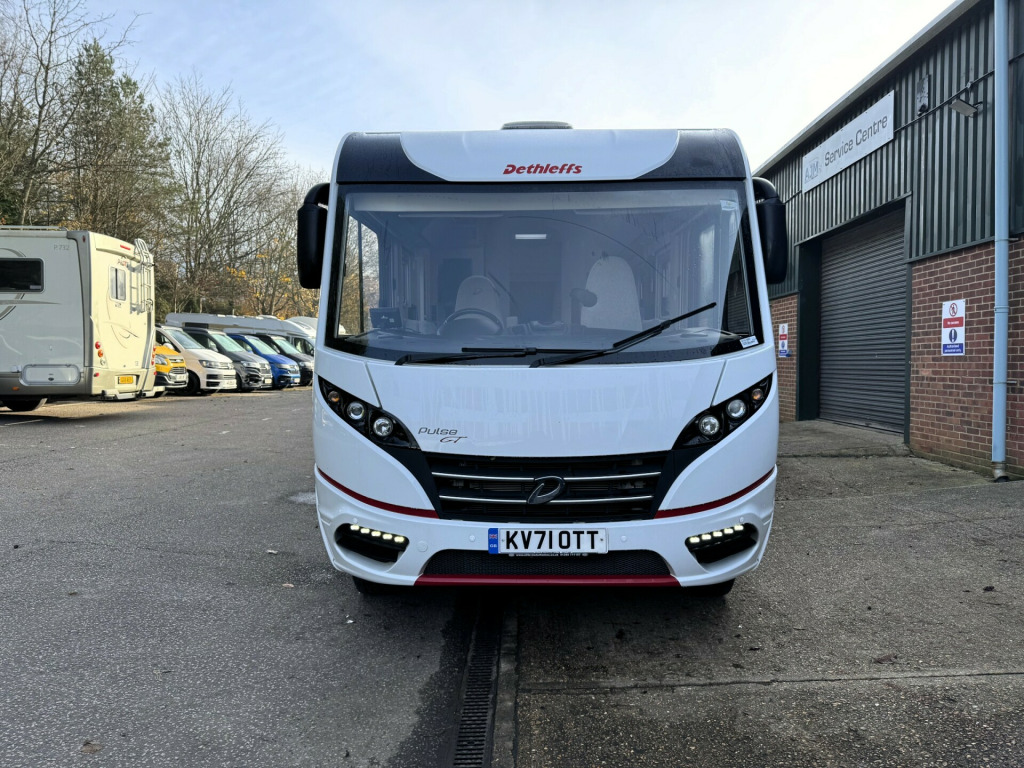 *** NEW ARRIVAL *** Andrew James Motorhomes are delighted to offer this stunning 2021 Dethleffs Pulse GT i7051 EBL on the ever popular 9 Speed Automatic 160BHP Option having only covered just 7815 miles and previously supplied by ourselves..This stunning example A Class motorhome benefits being 4 berth with 4 travels seats. The rear passenger seats convert from side face lounge seating arrangement with front facing back inserts for the rear travel passengers when required. The large drop down over cab bed gives the additional sleeping area to the large rear single beds/double bed option over garage end bedroom.Spacious kitchen with sunken sink with flush counter top cover and 3 burner gas hob with split glass lid. ample storage both over and under counter. Thetford under counter oven/Grill with grill tray. opposite the kitchen is the low energy 3 way fridge freezer. next to the fridge freezer is the Avtex TV with 45 degree tilt wall bracket. On board motorhome wi-fi system with wireless router.The washroom benefits with ample storage and Thetford toilet with electric flush. Single bowl sink with chrome mixer tap. Opposite in hallway is the separate shower with double door glass screen.The rear bedroom again benefits with ample storage and two large wardrobes and over bed and under bed storage and cupboards. Both the bedroom and access to the front living area have door divides.Externally the motorhome benefits from, 16'' alloy wheels, external BBQ point, Twin lens reverse camera system, Thule wind out canopy awning, LED DRL running lights, GT External graphics pack, Gas locker with space for 2x 6kg bottles (Gaslow options available on request), Large heated garage with double door access, Heated, electric coach style mirrors, roof mounted solar with Victron MPPT solar controller, Battery Master system.Viewing is highly recommended here today.Disclaimer: Whilst every effort is made to ensure the accuracy of the data shown, it is not a definitive statement of specification of the vehicle and no responsibility will be accepted for errors in listing made on this site. uetooth connection, climate control, external gas bbq point, manufacturer direct, cassette toilet, end bedroom, fixed bed, hand basin, shower, wardrobe, 3-burner hob, 3-way fridge, fridge freezer, grill, oven, side kitchen, 3 point seatbelts, central locking, power steering, cruise control, front parking sensor, rear parking sensor, steering wheel reach adjustment, trip computer, abs, service indicator, twin air bags, alarm cat 1, immobiliser, remote central locking, heated door mirrors, 3rd party sound system, bluetooth enabled stereo, cd player, tv aerial, front armrest, height adjustable drivers seat, body coloured bumpers, colour coded body, led 3rd brake light, led daytime running lights, led indicator lights, led rear lights, 12v points, 16, 4g wi-fi system, 9 speed automatic gearbox, ample external locker space, ample storage offered, battery master system, drop over-cab double bed, external bbq point, fresh water onboard tank, fully winterised, heated rear garage, internal blinds, internal fitted curtains, large rear garage, led lighting throughout, leisure battery, mains 240v sockets, mppt solar regulator, omnistor thule awning, overhead led lighting, removable habitation carpets, roof mounted solar panel, separate shower with glass screen doors, space for 2x 6kg gas bottles, swivel captains chairs, truma dual fuel heating system, truma electric/gas water heater, twin lens reverse camera system, under counter led lighting, weight 3500kg, wrap around cab blinds, 16'' Alloys