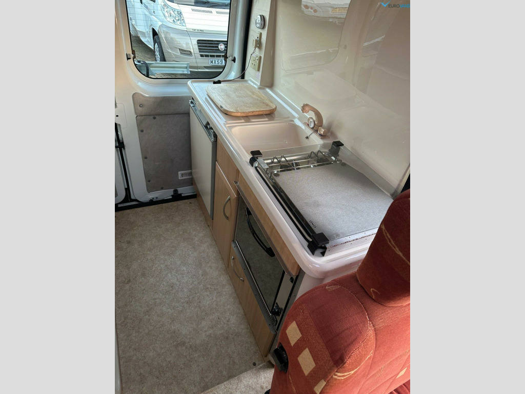 A clever under 5 metre motorhome from the masters of the miniature, Romahome. Hardly any bigger than a car, this beautifully packaged example of British craftsmanship and design has all you need for your holidays or even just daily use. It is fully equipped with a toilet, wash hand basin and shower in a cubical as well as a fully fitted kitchen including four burner hob, oven, fridge and plentiful cupboards. The fixed high roof allows you to walk and stand in the living space and the front seats swivel to face the rear, forward facing and belted rear seats and then they can all combine to make a double bed or two singles. Clever stuff! A fresh habitation has been done along with a service readying it for your holidays. This is value for money motor homing and ideal for those Scottish ferries.