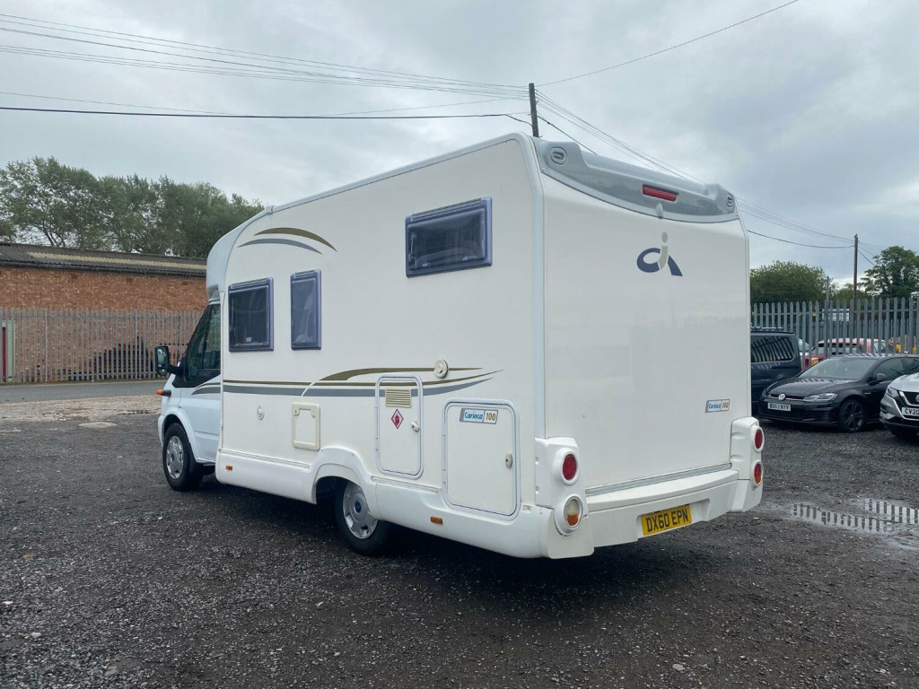2010 ford transit carioca 100 4 berth Motor home which has only covered 32,200 miles from new. , This Carioca 100 4 berth motor home which is based on a Ford transit 2.2 TDCI is in superb condition inside and out. , Complete with Washroom and separate shower, wardrobe and also a high adjustable rear bed with garage/storage. , There is a kitchen area which includes gas central heating a 3 burner hob, mini grill and also a 80 litre fridge. , In the cab there is central locking + cruise control and also front swivel seats. , Fiamma side awning !!, , Priced to sell so grab yourself a bargain !!, , WE ARE LOCATED IN WINSFORD CHESHIRE 10 MINS FROM JUNCTION 18 OF THE M6 MOTORWAY,, , NATIONWIDE DELIVERY AVAILABLE ON REQUEST... £22,995.00, , Email : [email protected], , T : 0333 323 4406 , M : 07941 044 460