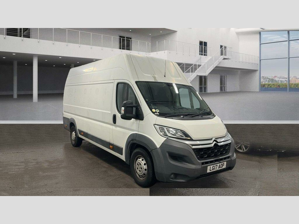 This 2017 Citroen Relay 2.0 BlueHDi 35 Enterprise L4 Extra High Roof is a robust and capable van, registered in 2017. It features a powerful 2.0 litre diesel engine, meeting Euro 6 emission standards, and boasts a substantial towing weight of 3000 kg. The Enterprise trim level ensures a practical and comfortable driving experience, enhanced by notable features such as 16 inch steel wheels, rear parking sensors with parking assistance, and air conditioning. Connectivity is also a strong point, with a touch screen audio pack that includes Bluetooth functionality.This particular Relay stands out with its impressive cargo volume of 17000 litres, offering ample space for your business needs. Furthermore, its low insurance group rating indicates that running costs are kept to a minimum, making it a more economical choice compared to similar vehicles. This combination of generous load capacity and cost effectiveness makes the Citroen Relay a smart option for a variety of commercial applications. v socket in cabin, 12v socket - load compartment, 16in steel wheels, 2 cup holders, abs - anti-lock braking system, air conditioning, airbags - driver, anti-theft alarm - parametric and volumetric, anti-theft immobiliser, bumpers - front - black, chrome front grille, deadlocks, driver seat height and lumbar adjustment, eba - electronic brake assistance, esp - electronic stability programme, front electric windows, full steel bulkhead, heated twin lens door mirrors with electric adjustment for passenger side, high frequency remote control central locking with plip, laminated windscreen, mid-height interior protection, nearside sliding side loading door, overhead storage shelf, rear doors - twin - unglazed, rear doors opening - 180 degree, rear parking sensors, seats - dual passenger bench, smartnav navigation and stolen vehicle tracking, spare wheel - steel, steering wheel - mounted controls, steering wheel - reach adjustable, tinted windows, touch screen audio pack, touchscreen - colour 5in with audio system and connecting box, tray for spare wheel, two speed intermittent front windscreen wipers, variable power assisted steering