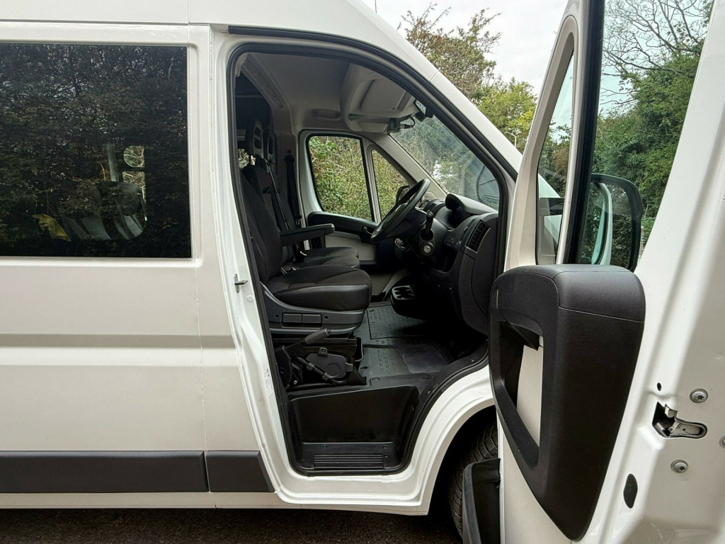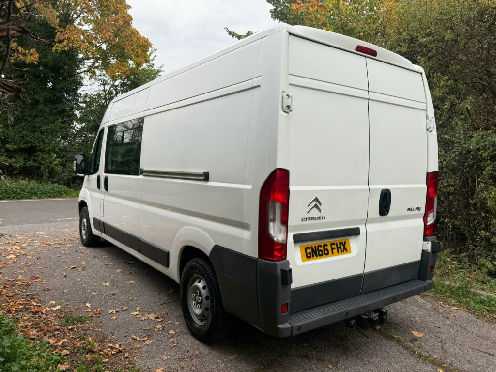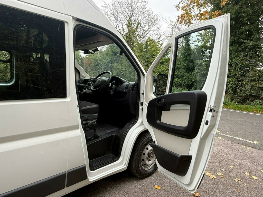 OverviewA rare 9-seater Citron Relay 35 L3H2 in fantastic condition ex-Military and maintained to the highest standard.Professionally converted for multi-crew transport, offering both comfort and practicality with a full Euro 6 ULEZ-compliant setup.Perfect for site crews, shuttle use, family transport, camper conversions, or export.This van drives superbly, feels tight and solid, and reflects the excellent care of its previous government ownership. Key Features2016 (66) Citron Relay 35 L3H2 2.0 BlueHDi 130ps9 Seats (3 Front + 3 Middle + 3 Rear)Ex-Military Fleet - Exceptionally MaintainedEuro 6 - ULEZ & Clean Air Zone Compliant6-Speed Manual Front-Wheel DriveLong Wheelbase - High Roof (L3H2)Towbar + ElectricsFully Ply-Lined Rear Cargo SectionDual Passenger Seat Power Steering ABS Traction ControlElectric Windows & MirrorsBluetooth USB AUX ConnectivitySide Windows & Twin Rear DoorsRear Step Steel Wheels Central Locking Condition & DriveDrives beautifully - smooth gearbox, strong clutch, no warning lights.Clean bodywork for age, straight panels, tidy cab and seating area.Ex-MoD serviced and maintained on time with fleet discipline.HPI clear, ready to drive away. Dimensions & Practical InfoLoad Length: 3.7mInternal Height: 1.9mGross Weight (GVW): 3,500kgPayload: approx. 1,200kg (varies by seating layout)ULEZ Compliant - No Extra Charges in London or Clean Air Zones SummaryA rare, versatile 9-seater with commercial durability and car-like comfort.Ideal for builders, shuttle operators, crew transport, or conversion into a day van or camper.ULEZ compliant, well-kept, and priced to sell at £12,499 don't miss this one. M13 Cars LtdFinance, part exchange & nationwide delivery available.Viewings by appointment - call or message to arrange. v socket in cabin, 12v socket - load compartment, 15in steel wheels, 2 cup holders, abs - anti-lock braking system, air conditioning, airbags - driver, anti-theft alarm - parametric and volumetric, anti-theft immobiliser, bumpers - front - black, chrome front grille, deadlocks, driver seat height and lumbar adjustment, eba - electronic brake assistance, esp - electronic stability programme, front electric windows, full steel bulkhead, heated twin lens door mirrors with electric adjustment for passenger side, high frequency remote control central locking with plip, laminated windscreen, mid-height interior protection, nearside sliding side loading door, overhead storage shelf, rear doors - twin - unglazed, rear doors opening - 180 degree, rear parking sensors, seats - dual passenger bench, smartnav navigation and stolen vehicle tracking, spare wheel - steel, steering wheel - mounted controls, steering wheel - reach adjustable, tinted windows, touch screen audio pack, touchscreen - colour 5in with audio system and connecting box, tray for spare wheel, two speed intermittent front windscreen wipers, variable power assisted steering