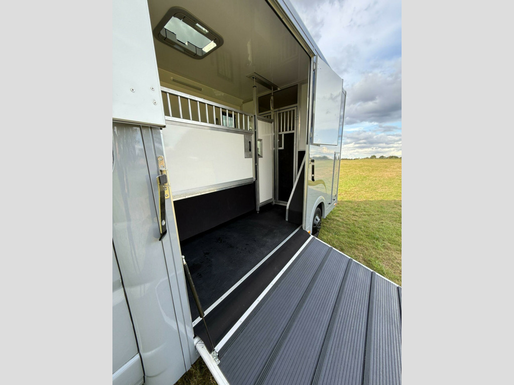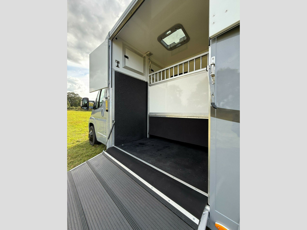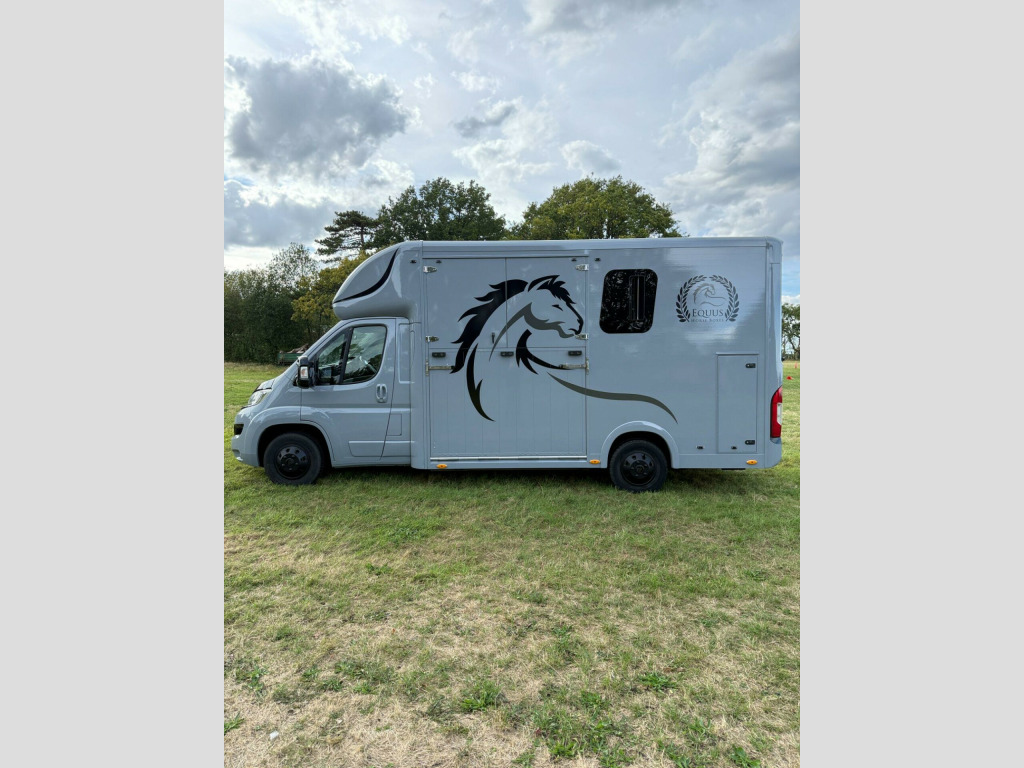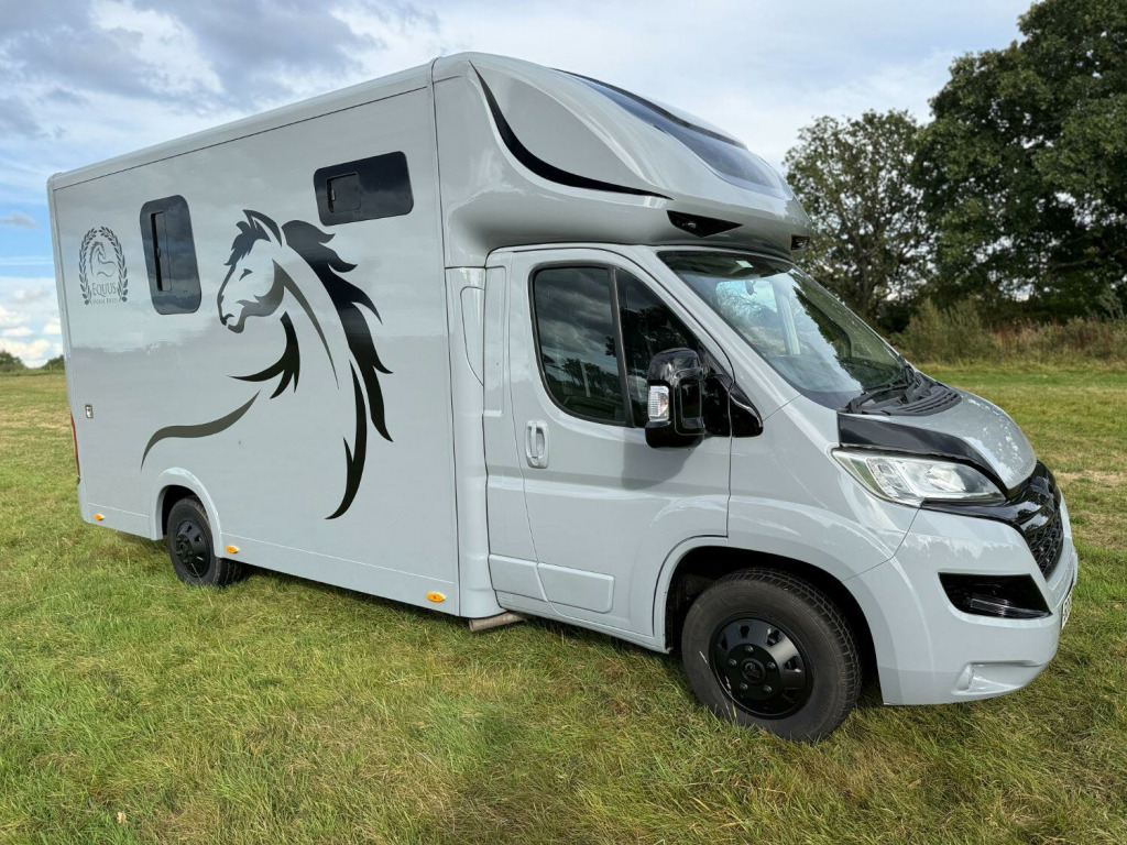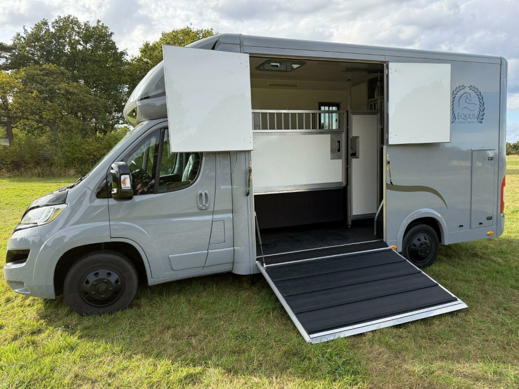 New Build Equus 3.5T coach built Horsebox. Built on 2020 140BHP Relay Built on special factory order coachbuilder chassis. Galvanized low floor Alko chassis with Towbar gives you the Low floor extended roof allowing an extra 12 of internal box height over standard horseboxes, Low Mileage @ 35000, ✅Reinforced Bulkhead and horse safety cell . ✅Euro 6 model, ✅Roof Vent, ✅Custom Paint BMW M grey, ✅Light Weight Reinforced Loading Ramp with internal gas assist struts, ✅ One Piece external doors all round, ✅Stallion Pro Removable partion, ✅led Lighting Throughout, ✅Groom Area with wardrobe, ✅internal horse camera and reverse camera, ✅Composite FloorOver Aluminum Plank with Equimat and drainage, ✅Bonded limo style opening Tinted windows, ✅Large Saddle Rack Locker, ✅ 1050Kg Payload can be uprated to 1450kg, Located in Cheshire 5 Mins From Mcr Airport 12 Months Warranty on Build and 6 months Mechanical. RTB