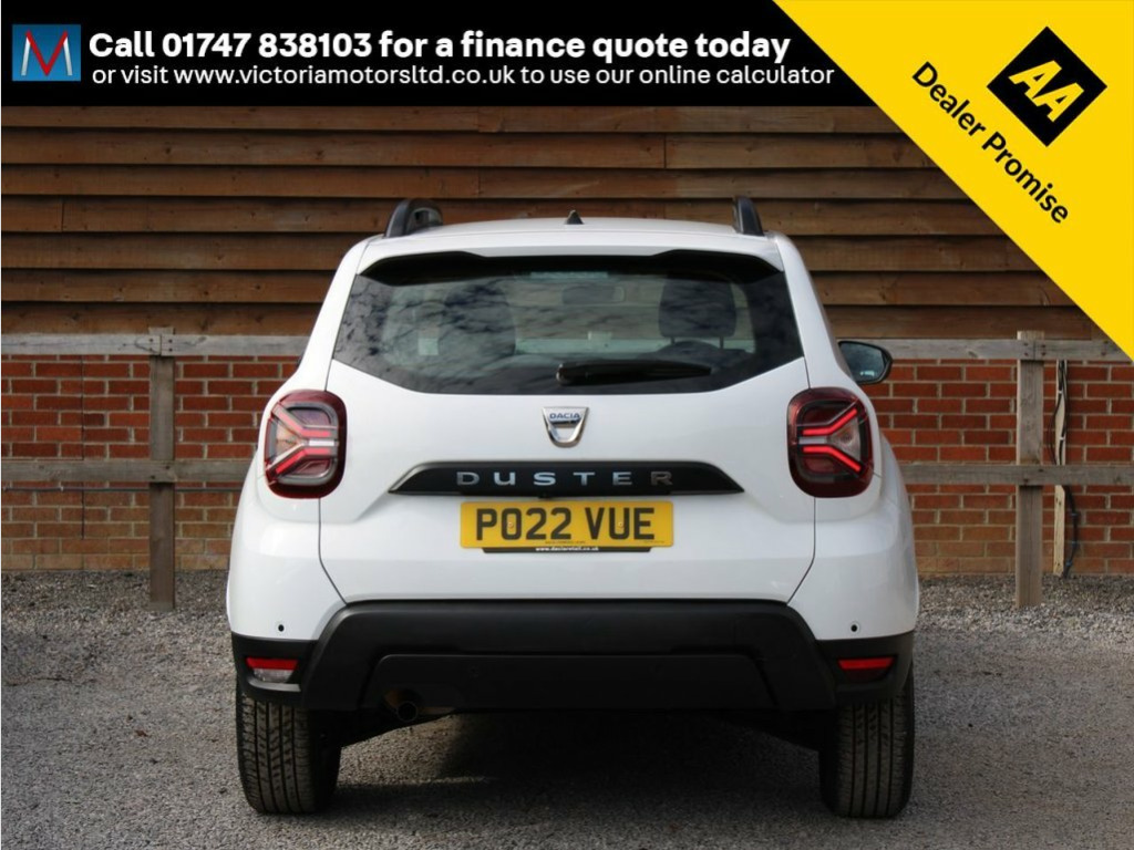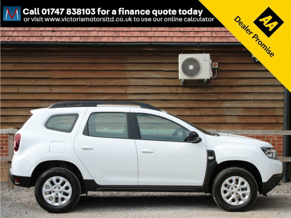 ***FOR VIEWINGS AND TEST DRIVES CALL US ON 01747 838103 TO BOOK AN APPOINTMENT***Great value for money one owner Duster fitted with Dacia's 1.0 turbo petrol ULEZ compliant engine with great power and economy finished in white with equipment including touch screen media unit with satellite navigation, apple carplay meaning you can mirror the apps from your phone onto the screen of your car such as Google maps and Spotify, bluetooth, air conditioning, auto lights, media connections, cruise control, alloy wheels, 1 owner, 37000 miles, service history, high up driving position with easy access in and out of the cockpit***PART EXCHANGE AVAILABLE***USE THE FINANCE CALCULATOR ON OUR WEBSITE www.victoriamotorsltd.co.uk AND QUOTE YOURSELF A MONTHLY PAYMENT FIGURE TODAY WITH ZERO DEPOSITS AVAILABLE*** 16in Alloy Wheels, 3-Point Rear Seatbelts x3, 3-Speed Front Windscreen Wipers, 7-Function On-Board Computer, 8in Media Display and Smartphone Replica, ASR - Traction Control with ESC - Electr, Air Vents - Satin Chrome, Airbags - Driver, Airbags - Front Passenger with Deactivat, Airbags - Front Side, Anti-lock Braking System - ABS and Emerg, Backlighted Steering Wheel, Body-Coloured Front and Rear Bumpers, Boot Light, Centre Console Fascia - Matt Black, Centre Console Surround, Child Locks in Rear Doors, Cruise Control and Speed Limiter, DRL - Daytime Running Lights, Dacia Plug and Radio - MP3 - USB - Bluet, Decorative Insert on Door Panels - Front, Door Handles - Body Coloured, Door Mirrors