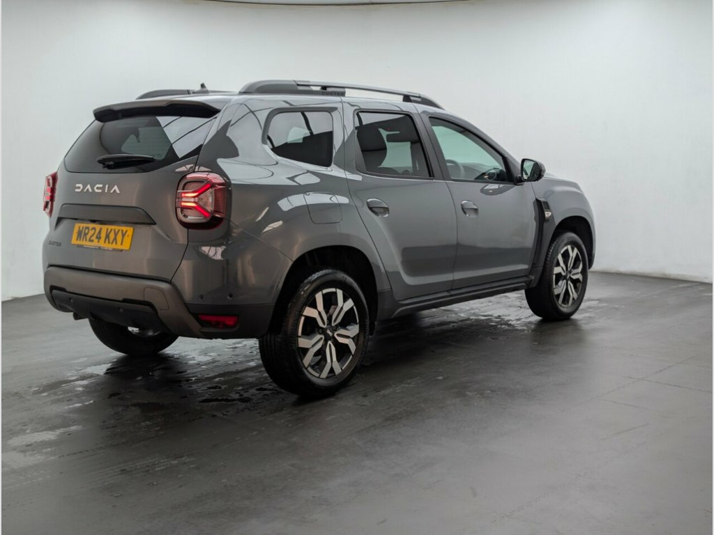 17" alloys, Cruise control, Rear view camera, Tinted windows and Heated front seats. This 2024 Dacia Duster TCe Journey offers exceptional value with remarkably low mileage for its age, having covered just 10936 miles. This Euro 6 compliant 1.0 litre petrol model boasts a clear vehicle history check, providing peace of mind for its next owner. The Journey trim level ensures a comfortable and well equipped experience, complemented by a generous boot space perfect for all your adventures. With an impressive fuel economy of 46 miles per gallon, this Dacia Duster is designed to be economical for your everyday driving needs. Furthermore, its low CO2 emissions highlight its efficiency compared to many other vehicles in its class. This combination of low running costs and practical features makes the Duster TCe Journey a sensible and appealing choice. 12V Sockets - Front and Rear, 17in Alloy Wheels - Tergan, 2 Front Reading Lights, 3-Point Rear Seatbelts x3, 8in Media NAV, Acoustic Windshield, Air Vents Surrounds - Steel Grey, Airbags - Driver, Airbags - Front Passenger with Deactivat, Airbags - Shoulder and Curtain Side, Anti-lock Braking System - ABS and Emerg, Automatic Air Conditioning, Automatic Headlights, Automatic Windscreen Wipers, Blind Spot Warning, Body-Coloured Front and Rear Bumpers - L, Boot Light, Child Locks in Rear Doors, Cruise Control and Speed Limiter, Dark Glass on Lateral Rear Windows, Door Handles - Body Coloured, Door Mirrors - Heated and Electrically A, Door Mirrors - Megalith Grey, Door Open - Visual and Audible