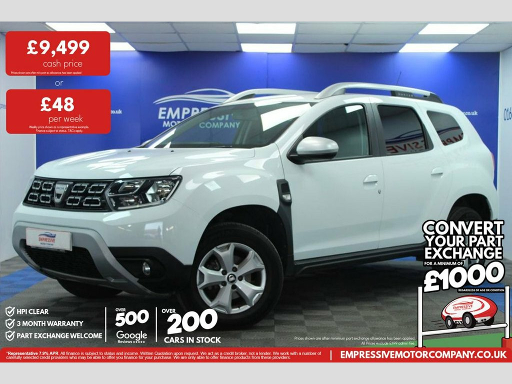 ****ANOTHER ONE DRIVES THE DUSTER**** Just in! This Stunning 2019 DACIA DUSTER 1.3 TCe Comfort SUV 5dr Petrol Manual Euro 6 (s/s) (130 ps) Finished In White! 29,547 miles 1.3L petrol Insurance group 14 Parking sensors Reverse camera Touch media screen with sat nav Bluetooth connectivity Start stop Eco mode Air conditioning Cruise Control Speed limiter Voice control Auto headlights 16in Alloy Wheels - Cyclade Aluminium, 3-Point Rear Seatbelts x3, 3-Speed Front Windscreen Wipers, 4 X 20W FM-AM-DAB Tuner with Steering-Co, 7-Function On-Board Computer, Air Recirculation - 4-speed Heating and , Air Vents - Satin Chrome, Airbags - Driver, Airbags - Front Passenger with Deactivat, Airbags - Front Side, Anti-lock Braking System - ABS and Emerg, Armrest - Front Centre, ASR - Traction Control with ESC - Electr, AUX Input, Black Number Plate Surround with Satin C, Bluetooth Connectivity, Boot Light, Bumpers - Front and Rear Lower Section i, Bumpers - Front and Rear Upper Section -, Central Locking - Remote, Centre Console Fascia - Matt Black, Centre Console Surround - Dark Carbo