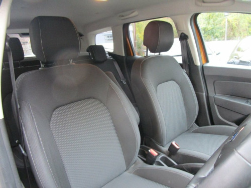 This 2019 Dacia Duster TCe Comfort boasts a full service history, with its last service completed on 08 August 2025 at 51,703 miles, offering you peace of mind. This Euro 6 compliant 1.3L petrol model comes in the Comfort trim, featuring a 7in touchscreen MediaNav system with satellite navigation, Android Auto, and Apple CarPlay. You'll also benefit from Bluetooth connectivity for seamless calls and music streaming, automatic dusk sensing headlights, and rear parking sensors paired with a rear parking camera to assist you with manoeuvring. The Dacia Duster TCe Comfort is designed to be economical and practical, indicated by its impressive fuel economy of 46 miles per gallon and low CO2 emissions, which are better than many other vehicles in its class. Furthermore, its low insurance group rating means that running costs are kept to a minimum, making this a sensible choice for everyday driving. 16in Alloy Wheels - Cyclade Aluminium, 3-Point Rear Seatbelts x3, 3-Speed Front Windscreen Wipers, 4 X 20W FM-AM-DAB Tuner with Steering-Co, 7-Function On-Board Computer, ASR - Traction Control with ESC - Electr, AUX Input, Air Recirculation - 4-speed Heating and , Air Vents - Satin Chrome, Airbags - Driver, Airbags - Front Passenger with Deactivat, Airbags - Front Side, Anti-lock Braking System - ABS and Emerg, Armrest - Front Centre, Black Number Plate Surround with Satin C, Bluetooth Connectivity, Boot Light, Bumpers - Front and Rear Lower Section i, Bumpers - Front and Rear Upper Section -, Central Locking - Remote, Centre Console Fascia - Matt Black, Centre Console Surround - Dark Carbo