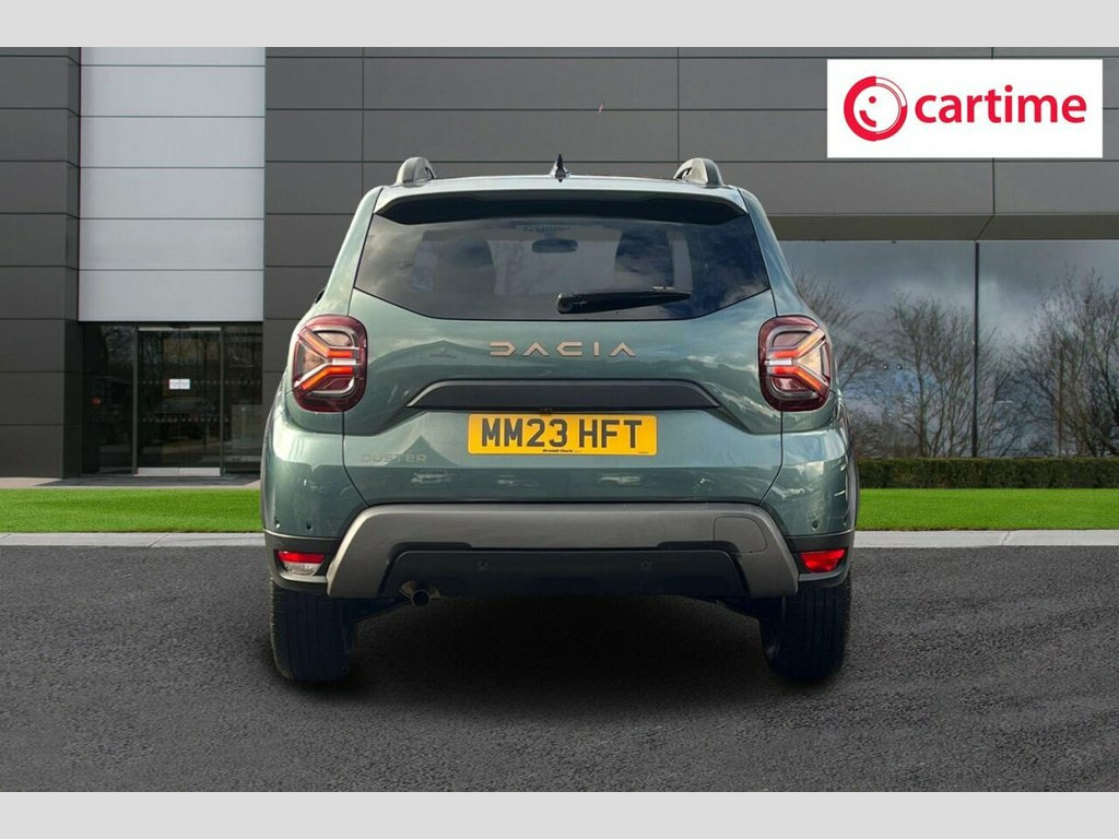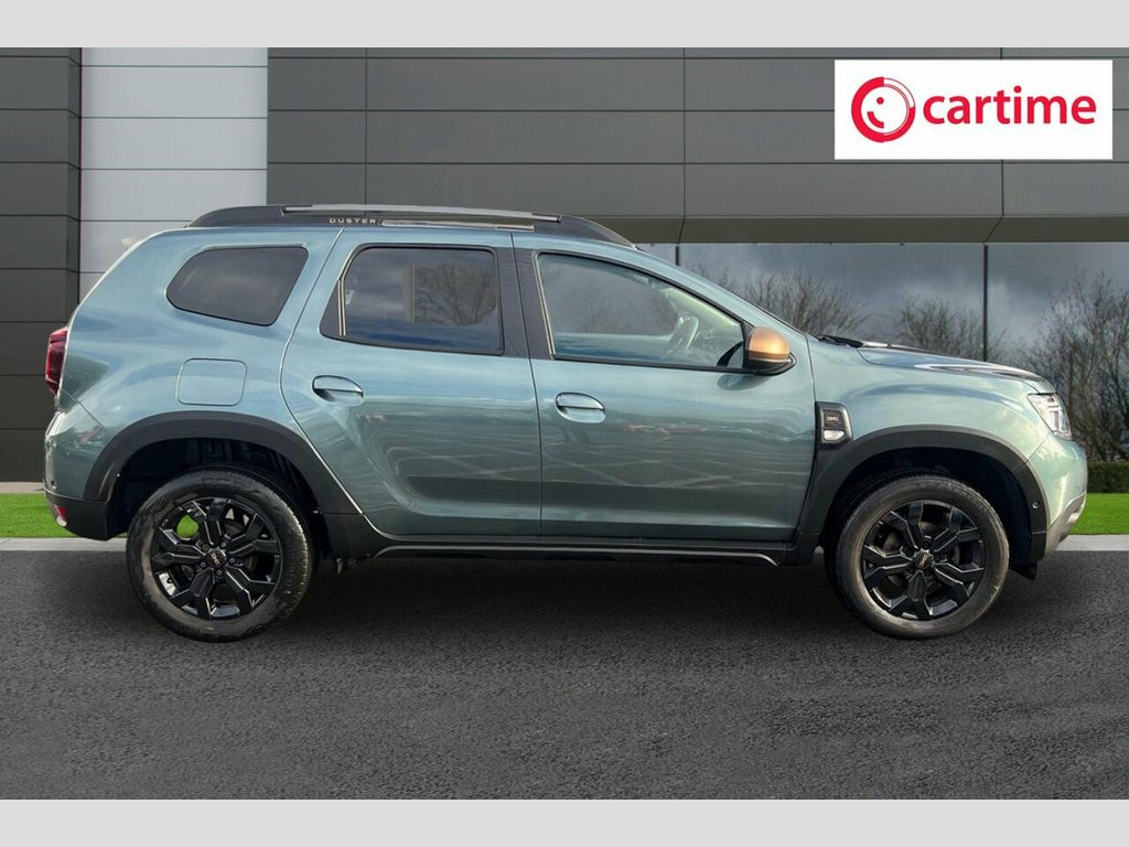 This 2023 Dacia Duster TCe EXTREME is a superb example, having had only one owner since new. This Euro 6 compliant 1.3L petrol model offers a compelling blend of practicality and modern technology. Inside, you'll find the comfort of heated front seats and the convenience of keyless entry. For enhanced safety and ease of parking, it features Blind Spot Warning with Blind Spot Assistance and a rear view camera. Entertainment and navigation are handled by the 8in Media NAV system, which includes Bluetooth connectivity. The Dacia Duster EXTREME stands out with its impressive fuel economy, achieving up to 46 miles per gallon, which indicates it is more efficient than many other vehicles in its class. Furthermore, its low CO2 emissions are better for the environment compared to similar cars. You'll also appreciate the generous boot space, making it ideal for carrying luggage or shopping. This combination of efficiency, space, and advanced features makes this Duster a practical and appealing choice. 12V Sockets - Front and Rear, 17in Alloy Wheels - Tergan Black, 2 Front Reading Lights, 3-Point Rear Seatbelts x3, 8in Media NAV, Acoustic Windshield, Air Vents Surrounds - Copper Brown, Airbags - Driver, Airbags - Front Passenger with Deactivat, Airbags - Shoulder and Curtain Side, Anti-lock Braking System - ABS and Emerg, Automatic Air Conditioning, Automatic Headlights, Automatic Windscreen Wipers, Blind Spot Warning, Body-Coloured Front and Rear Bumpers - L, Boot Light, Cedar Green, Child Locks in Rear Doors, Cruise Control and Speed Limiter, Dark Glass on Lateral Rear Windows, Door Handles - Body Coloured, Door Mirrors - Copper Brown, Door Mirrors - Heated and Electrically A, Door Open