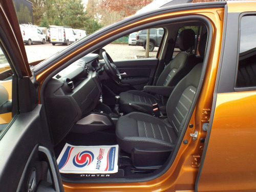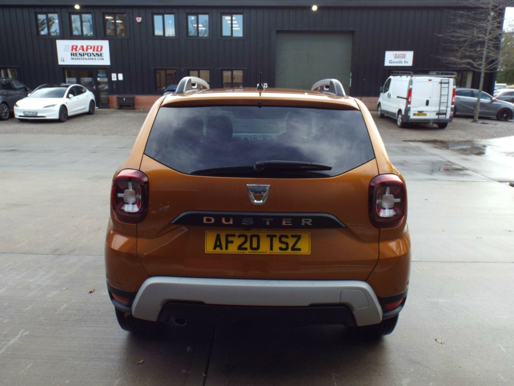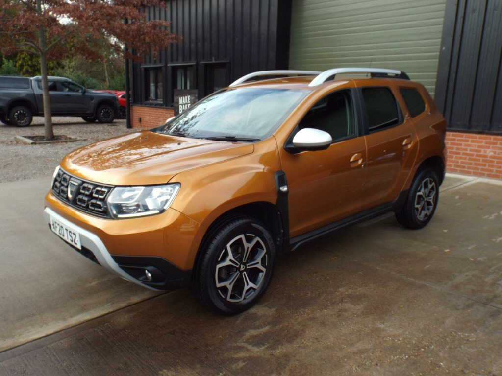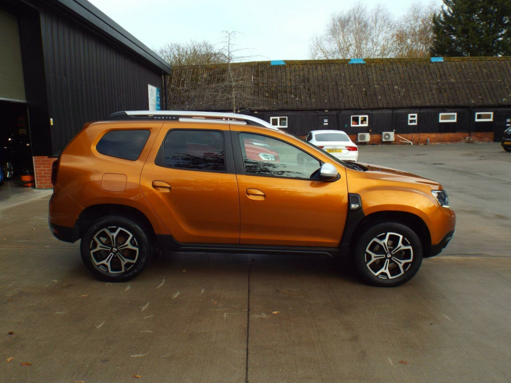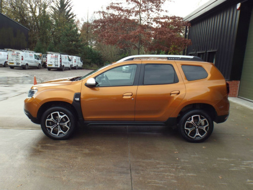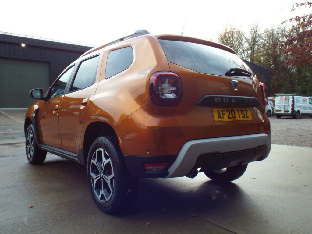 **NATIONWIDE DELIVERY AVAILABLE**This is a very clean and well looked after 1 owner from new 2020/20 Dacia Duster 1.3TCe Prestige which comes with a full service history (Just serviced too) a full years MOT and an excellent spec. Finished in a lovely metallic Burnt Orange the paintwork is superb and the vehicle has a great shine to it from all over. The colour really suits the car and it looks brilliant. The black cloth interior is also in excellent condition with no adverse wear at all. Great spec: E/Windows, E/Mirrors, Remote C/L (2xKeys), Keyless Go & Entry, Diamond cut alloy wheels, Front and rear parking sensors, Rear reversing camera, Auto lights, LED DRLs, Front and rear fog lights, Black cloth interior, AM/FM/DAB Radio, Aux/USB Input, Bluetooth connectivity, SAT-NAV, Climate control with Air conditioning, Multi-function steering wheel, Cruise control, ABS/PAS/DSC, Fully fitted mats plus loads more. This is a great example, one owner, good mileage, excellent history and presented in great condition too. We offer excellent finance rates, accept credit/debit cards and welcome part exchange too..., in alloy wheels - diamond-cut, 3-point rear seatbelts x3, 3-speed front windscreen wipers, 4 x 20w fm-am-dab tuner with steering-column mounted fingertip controls, 7-function on-board computer, asr - traction control with esc - electronic stability control, aux input, air recirculation - 4-speed heating and ventilation, air vents - satin chrome, airbags - driver, airbags - front passenger with deactivation function, airbags - front side, anti-lock braking system - abs and emergency brake assist - eba, armrest - front centre, black number plate surround with satin chrome duster inscription, blind spot warning, bluetooth connectivity, boot light, bumpers - front and rear lower section in black, bumpers - front and rear upper section - body coloured, central locking - remote, centre console fascia - matt black, centre console surround - dark carbon, child locks in rear doors, chrome front grille, climate control, cruise control, drl - daytime running lights, dark glass on lateral rear windows, decorative inserts on front and rear door panels - piano black, door handles - body coloured, door handles - interior front - black, door handles - interior rear - black, door mirrors - grey - dark metal, door mirrors - heated and electrically adjustable, door open - visual and audible warning, driver seat lumbar adjustment, driver and passenger seatbelt not fastened - visual and audible warning, dusk sensor, eco mode, electric power-assisted steering, electric windows - front, electric windows - rear, fabric decorative insert on front and rear door panels, front door sill protection strip, front fog lights, front passenger reading light, front seatbelt pretensioners, gear lever cap insert - satin chrome, gear shift indicator, glovebox light, headlights - double optic, headrests - rear height adjustable x3, heated rear window, height-adjustable drivers seat, height-adjustable front headrests, height-adjustable front seatbelts, height-adjustable steering wheel, high level third brake light, isofix points for child seats in both outer rear seats, instrument dial surrounds - satin chrome, keyless entry, lower steering wheel insert - satin chrome, map pockets on front seatbacks, multiview camera includes sensors, rear parking camera, rear parking sensors, rear passenger reading light, rear washer-wipe, rev counter, roof bars - longitudinal with duster inscription - satin chrome, satellite navigation - medianav 7in touchscreen multimedia system, seats - 60-40 split folding rear, side sills - black, skid plates - front and rear - satin chrome, soft feel steering wheel, speed limiter, steering wheel - chrome logo surround, sunvisor with vanity mirror - passenger, tailgate trim with duster inscription - black-satin chrome, thatcham approved engine immobiliser, tyre inflation kit, tyre pressure monitor, usb connection for mp3 players, under passenger seat storage