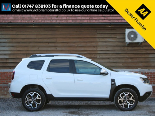 ***FOR VIEWINGS AND TEST DRIVES CALL US ON 01747 838103 TO BOOK AN APPOINTMENT***Top spec four wheel drive Duster fitted with Dacia's 1.3 turbo petrol ULEZ compliant engine with great power and economy finished in white with equipment including heated seats, touch screen media unit with satellite navigation, parking sensors and parking camera, apple carplay meaning you can mirror the apps from your phone onto the screen of your car such as Google maps and Spotify, bluetooth, auto air conditioning, auto lights, media connections, electric folding wing mirrors, cruise control, diamond cut alloy wheels, 1 owner, 27000 miles, service history, high up driving position with easy access in and out of the cockpit***PART EXCHANGE AVAILABLE***USE THE FINANCE CALCULATOR ON OUR WEBSITE www.victoriamotorsltd.co.uk AND QUOTE YOURSELF A MONTHLY PAYMENT FIGURE TODAY WITH ZERO DEPOSITS AVAILABLE*** 17in Alloy Wheels - Diamond-Cut, 3-Point Rear Seatbelts x3, 3-Speed Front Windscreen Wipers, 4 X 20W FM-AM-DAB Tuner with Steering-Co, 7-Function On-Board Computer, ASR - Traction Control with ESC - Electr, AUX Input, Air Recirculation - 4-speed Heating and , Air Vents - Satin Chrome, Airbags - Driver, Airbags - Front Passenger with Deactivat, Airbags - Front Side, Anti-lock Braking System - ABS and Emerg, Armrest - Front Centre, Black Number Plate Surround with Satin C, Blind Spot Warning, Bluetooth Connectivity, Boot Light, Bumpers - Front and Rear Lower Section i, Bumpers - Front and Rear Upper Section -, Central Locking - Remote, Centre Console Fascia - Matt Black, Centre Console Surroun