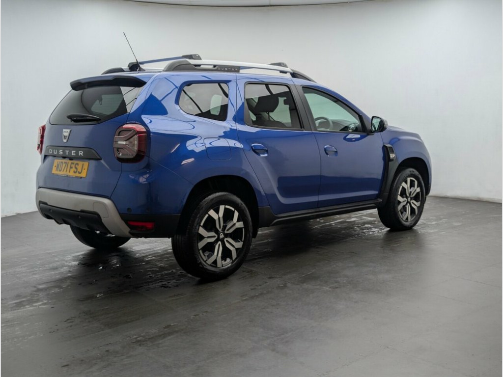 Navigation, Parking camera, Heated seats, Apple CarPlay and Android Auto. Last service done at 21885 miles on 25/04/2024. Boasting an MOT valid until February 2027 and a clear vehicle history check, this 2022 Dacia Duster TCe Prestige offers excellent peace of mind. This single owner vehicle is presented in the Prestige trim and features a responsive 1.3L Petrol Engine, meeting Euro 6 emission standards. You'll appreciate the convenience of keyless entry, automatic air conditioning for a comfortable cabin temperature, and the distinctive Y shape LED lighting for both the headlights and rear lights. Experience enhanced comfort with heated seats, perfect for colder mornings. The Dacia Plug and Radio system comes equipped with MP3, USB, Bluetooth, and DAB capabilities, all controllable from the steering wheel. With impressive fuel economy of 45 mpg and low CO2 emissions, this Duster is designed to be more economical to run than many similar vehicles. 17in Alloy Wheels, 3-Point Rear Seatbelts x3, 3-Speed Front Windscreen Wipers, 7-Function On-Board Computer, 8in Media Nav and Smartphone Replication, Acoustic Windshield, Air Vents - Satin Chrome, Airbags - Driver, Airbags - Front Passenger with Deactivat, Airbags - Front Side, Anti-lock Braking System - ABS and Emerg, ASR - Traction Control with ESC - Electr, Automatic Air Conditioning, Backlighted Steering Wheel, Blind Spot Warning, Body-Coloured Front and Rear Bumpers, Boot Light, Centre Console Fascia - Matt Black, Centre Console Surround, Child Locks in Rear Doors, Cloth - Black with Grey Stitching, Cruise Control and Speed Limiter, Dacia Plug and Radio - MP3 - USB - Bluet, Dark Glass