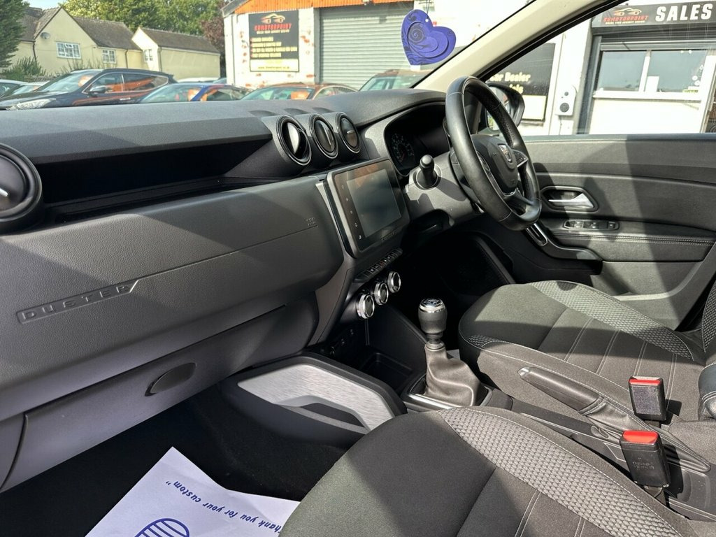 A STUNNING HPI CLEAR EXAMPLE OF A DACIA DUSTER FINISHED IN BLACK, WITH SERVICE HISTORY, REAR PARKING SENSORS, SATNAV AND MUCH MORE, THE VEHICLE WILL BE SUPPLIED WITH A FRESH MOT AND A SERVICE ALONG WITH A 3 MONTHS RETURN TO DEALER WARRANTY WITH THE OPPORTUNITY TO EXTEND WITH RAC FOR UP TO 36 MONTHS, ** FINANCE AVAILABLE FOR UP TO 60 MONTHS WITH 0 DEPOSIT OPTIONS** 17in Alloy Wheels, 3-Point Rear Seatbelts x3, 3-Speed Front Windscreen Wipers, 7-Function On-Board Computer, 8in Media Nav and Smartphone Replication, ASR - Traction Control with ESC - Electr, Acoustic Windshield, Air Vents - Satin Chrome, Airbags - Driver, Airbags - Front Passenger with Deactivat, Airbags - Front Side, Anti-lock Braking System - ABS and Emerg, Automatic Air Conditioning, Backlighted Steering Wheel, Blind Spot Warning, Body-Coloured Front and Rear Bumpers, Boot Light, Centre Console Fascia - Matt Black, Centre Console Surround, Child Locks in Rear Doors, Cruise Control and Speed Limiter, DRL - Daytime Running Lights, Dacia Plug and Radio - MP3 - USB - Bluet, Dark Glass on La