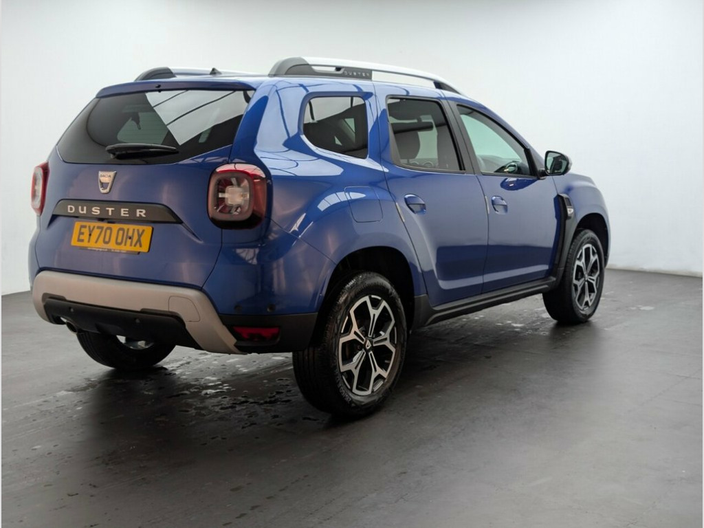 //17" alloys, Navigation, Rear parking sensors, Cruise control and Bluetooth. miles on 6 services - last service done at 21774 miles on 18/07/2025. This 2020 Dacia Duster TCe Prestige offers exceptional value with its remarkably low mileage of just 22,400 miles for its age, a clear vehicle history check, and a fuel economy of 45 mpg. This Euro 6 compliant 1.3L petrol engine is housed within the well appointed Prestige trim, offering a blend of practicality and comfort. You can navigate with ease using the MediaNav 7in touchscreen system, which includes satellite navigation, Android Auto, and Apple CarPlay. Stay connected on the go with Bluetooth connectivity, and enjoy peace of mind with the rear parking camera and blind spot warning system. The Dacia Duster TCe Prestige stands out with its low insurance group, making it an economical choice for many drivers. The inclusion of climate control ensures a comfortable cabin environment regardless of the weather. These features, combined with its impressive fuel efficiency and low mileage, demonstrate how this Dacia Duster provides a superior ownership experience compared to other vehicles in its class. 17in Alloy Wheels - Diamond-Cut, 3-Point Rear Seatbelts x3, 3-Speed Front Windscreen Wipers, 4 X 20W FM-AM-DAB Tuner with Steering-Co, 7-Function On-Board Computer, Air Recirculation - 4-speed Heating and , Air Vents - Satin Chrome, Airbags - Driver, Airbags - Front Passenger with Deactivat, Airbags - Front Side, Anti-lock Braking System - ABS and Emerg, Armrest - Front Centre, ASR - Traction Control with ESC - Electr, AUX Input, Black Number Plate Surround with Satin C, Blind Spot Warning, Bluetooth Connectivity, Boot Light, Bumpers - Front and Rear Lower Section i, Bumpers - Front and Rear Upper Section -, Central Locking - Remote, Centre Console Fascia - Matt Black, Centre Console Surroun