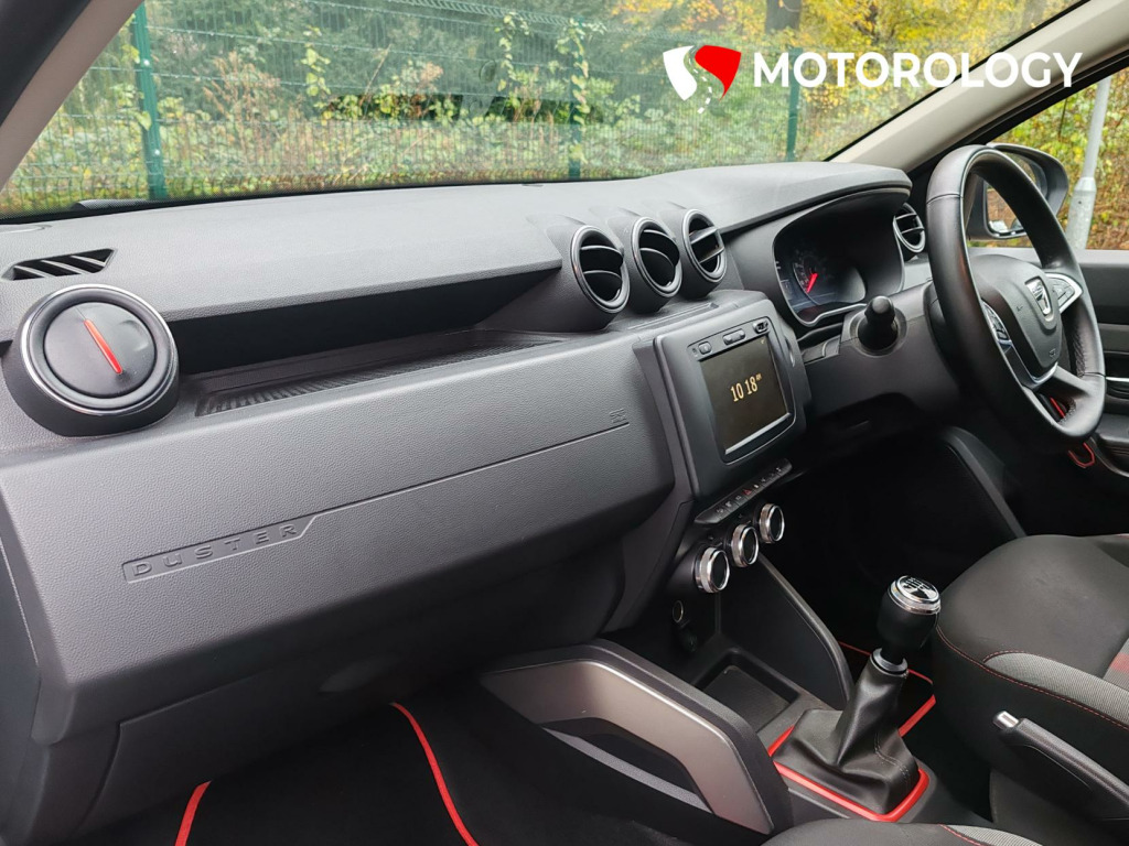 Opting for the Highland Grey colour enhances the Duster’s sophisticated appearance, ensuring it stands out in both urban and rural settings. The Techroad Cloth interior, in black and grey with red stitching, not only adds a touch of elegance but also offers durability and comfort, making every journey enjoyable.