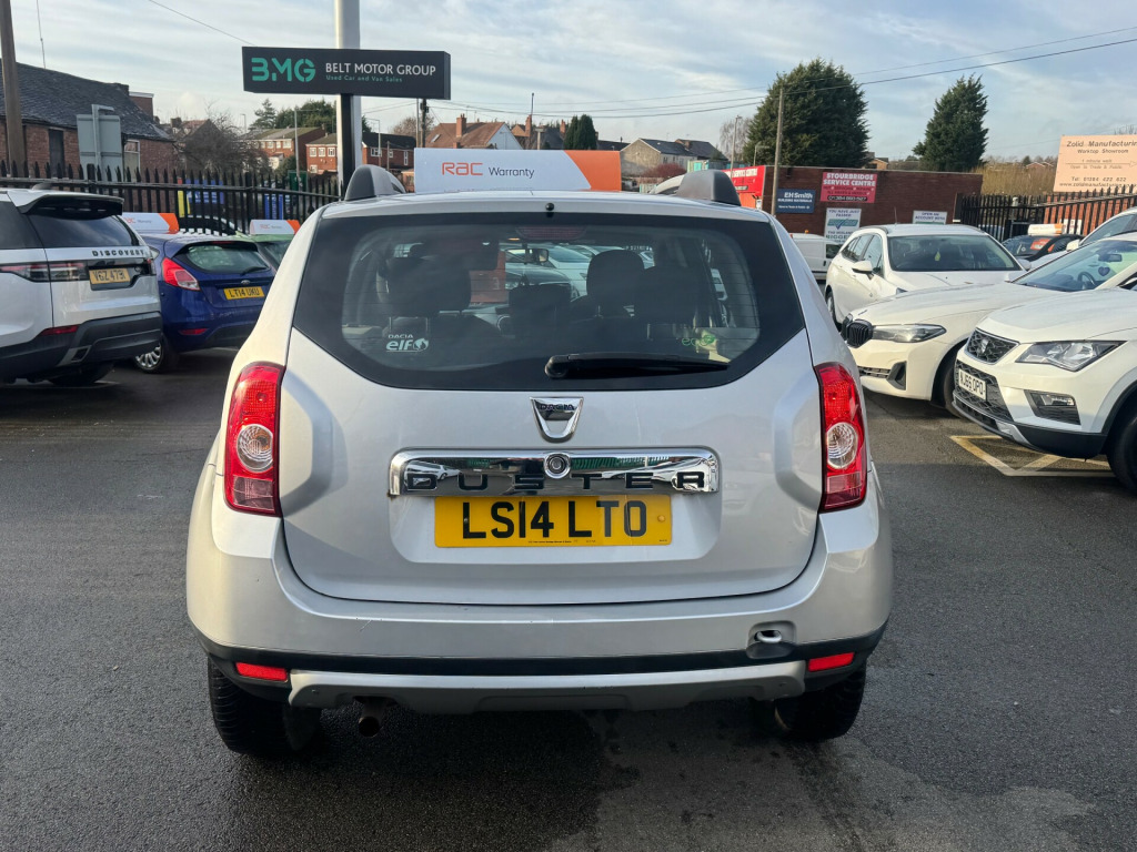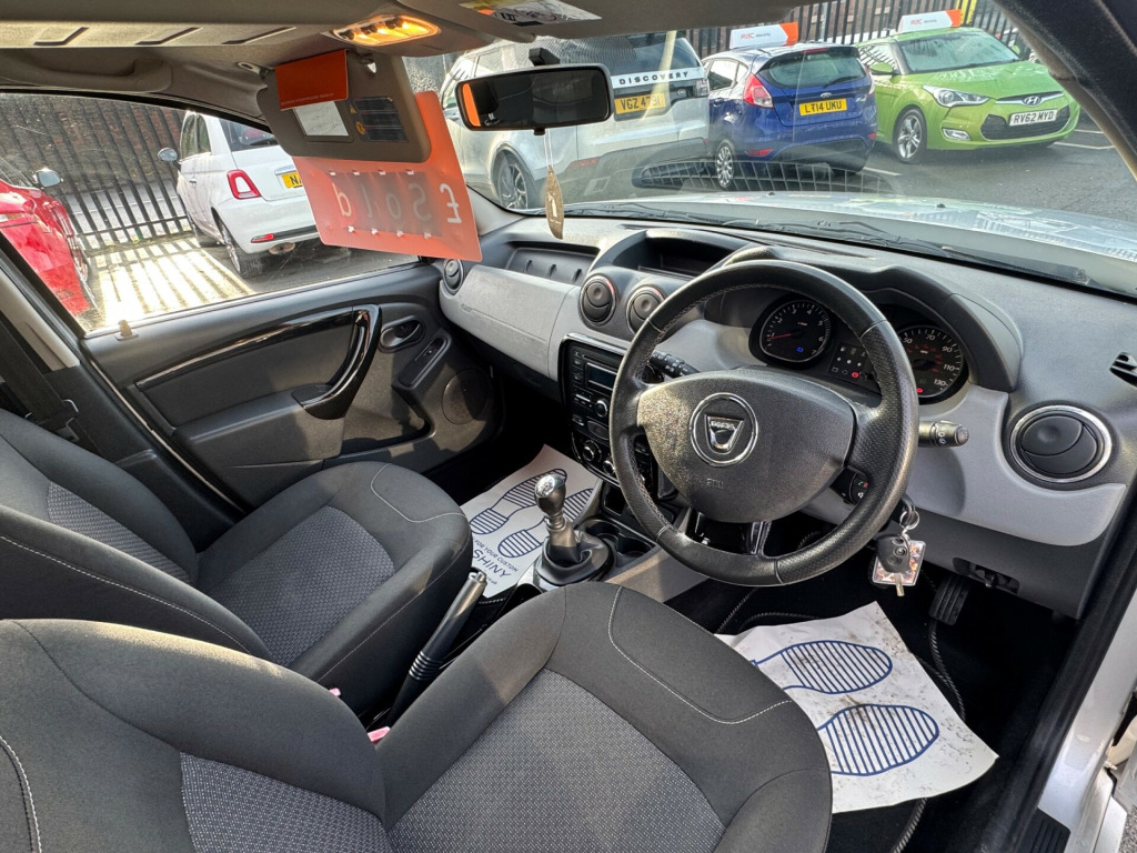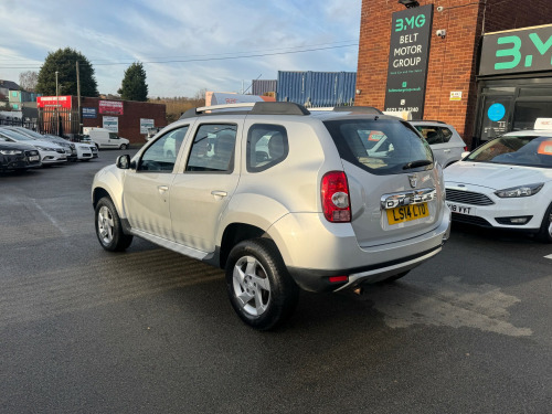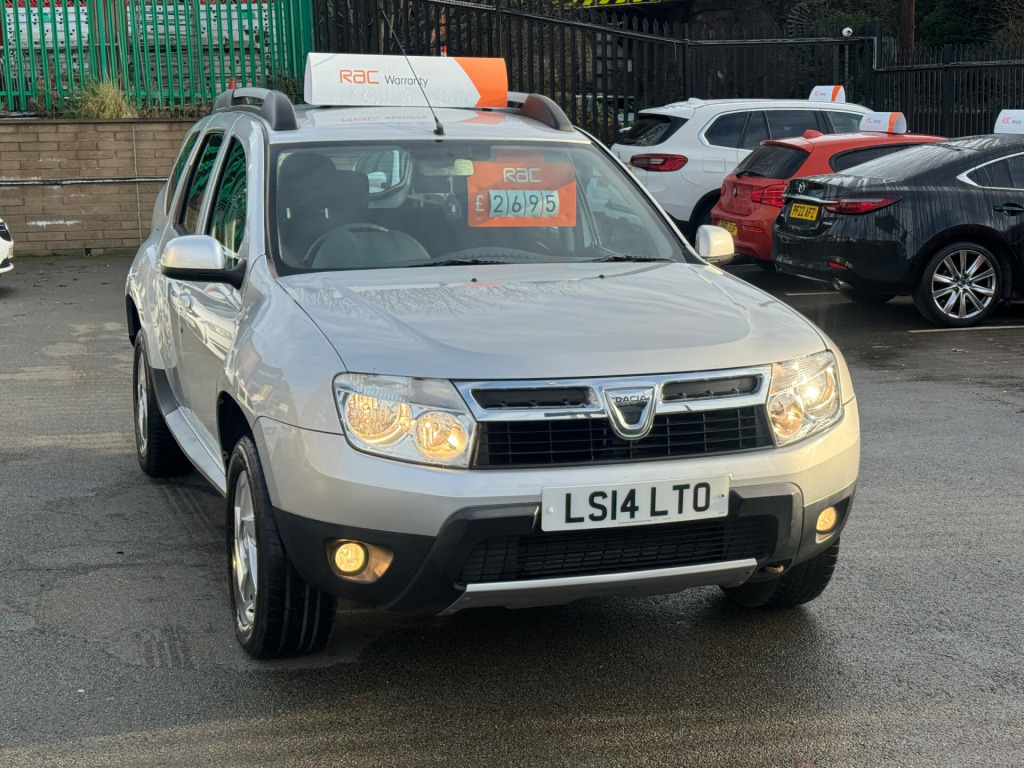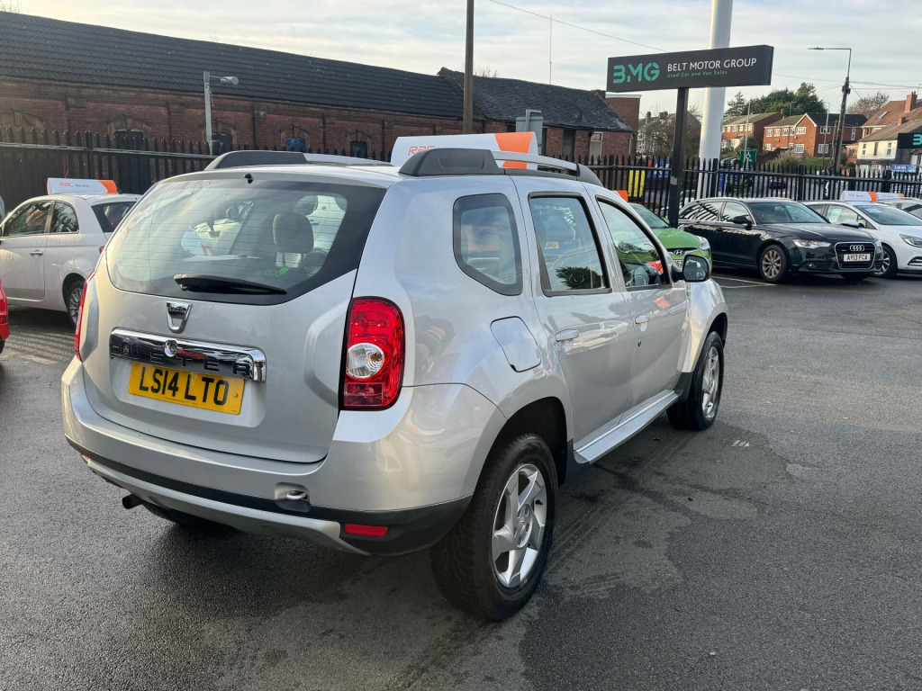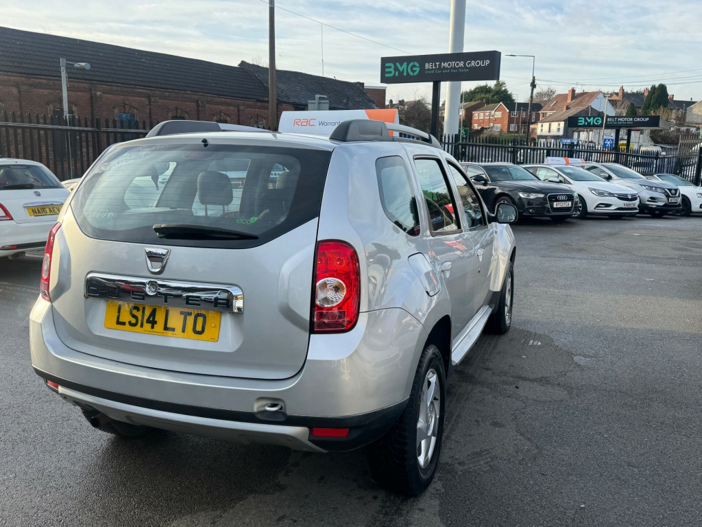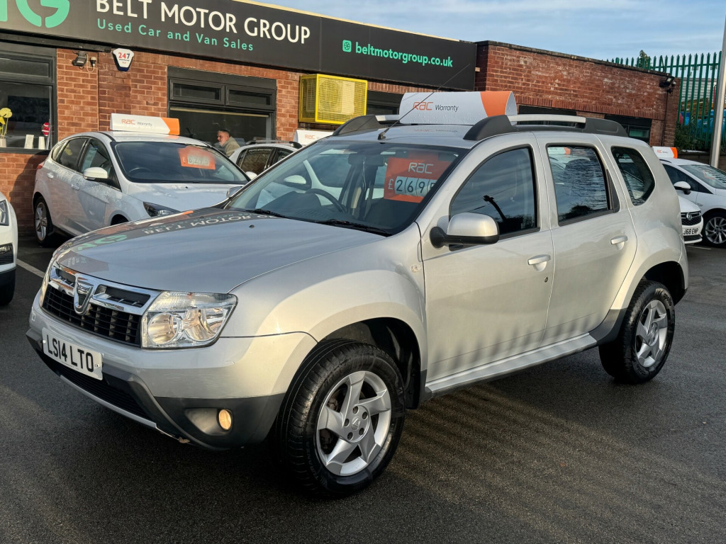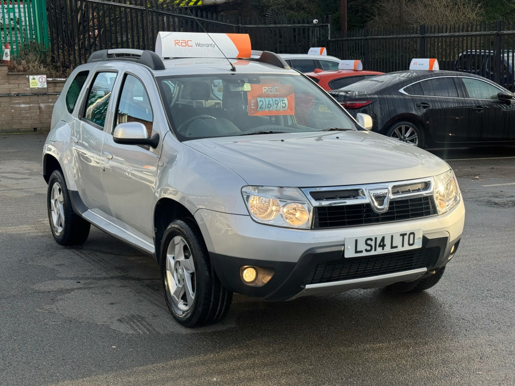 FREE 12 MONTHS RAC WARRANTY - FREE 12 MONTHS RAC ROADSIDE ASSISTANCEThis 2014 Dacia Duster 1.5 dCi Laureate SUV with 109000 miles on the odometer is a stylish and reliable diesel vehicle, ideal for those seeking a spacious and efficient ride. With 5 seats and 5 doors, this SUV is perfect for families or those who simply require extra space. The manual transmission, Euro 5 engine with 110 ps, and 16in Alloy Wheels ensure a smooth and powerful driving experience. The exterior features include Bumpers in Black and Body Coloured sections, a Chrome Front Grille, and Chrome Number Plate Surround with Duster Inscription, adding a touch of sophistication to this practical vehicle. Overall, this Dacia Duster prioritizes both comfort and style, making it a great option for those in need of a reliable and versatile SUV. in alloy wheels - everest, bumpers - front and rear lower section in black, bumpers - front and rear upper section - body coloured, chrome front grille, chrome number plate surround with duster inscription, door handles - satin chrome, door mirrors - body coloured, door mirrors - heated and electrically adjustable, electric windows - front and rear, heated rear window, roof bars - longitudinal - satin chrome, scuff plates - front and rear - satin chrome, side sills - satin chrome, steering wheel - chrome logo surround, tinted windows, tyre inflation kit, abs - anti-lock braking system, asr - traction control, airbags - driver, airbags - front passenger, airbags - front passenger deactivation, airbags - front side, automatic door relocking system, central locking - remote, child locks in rear doors, driver and front passenger seat belt unfastened - visual and audible warning, eba - emergency brake assist, ebd - electronic brakeforce distribution, esc - electronic stability control, front seatbelt pretensioners, isofix points for child seats in both outer rear seats, steering wheel - piano black lower insert, thatcham approved engine immobiliser, aux input, bluetooth connectivity, radio with cd player including mp3 cd reader with fingertip controls, speakers - x4 - 20w, usb connection for mp3 players, air recirculation - 4-speed heating and ventilation, air vents - chrome surrounds, air vents for rear passengers, black door sill protection strip, boot light, centre console surround - piano black, cigarette lighter and removable ashtray, decorative inserts on front and rear door panels - piano black, gear lever cap insert - chrome, glovebox light, grab handles - rear passenger with coat hook, headrests - rear height adjustable x3, height-adjustable drivers seat, height-adjustable front headrests, height-adjustable steering wheel, instrument dial surrounds - chrome, interior door handles - piano black, interior lighting - front reading spotlights, manual air conditioning, map pockets on front seatbacks, seats - 60-40 split folding rear, steering column mounted fingertip controls, steering wheel - leather, sunvisor with vanity mirror - passenger, cruise control and speed limiter, door open - visual and audible warning, eco mode, gear shift indicator, outside temperature gauge, power assisted steering, trip computer - 7 function, front fog lights, headlights - double optic with chrome surrounds, high level third brake light