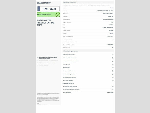 Premium Vehicles present this Dacia Duster 1.5 dCi Prestige EDC in silver with rugged SUV styling. A practical and efficient crossover, offering diesel economy, automatic convenience, and impressive comfort with Prestige features. ????Finance Made Simple, Bespoke finance packages available at competitive rates, tailored to your budget, with fast approval so you can enjoy your new car without delay. ????At a Glance, -Service history: x6 services completed - last serviced 77,818 miles, -MOT valid until September 2026, no advisories, -x4 Bridgestone tyres, -2 keys, -2 Owners, -Euro 6, ULEZ compliant, -HPI clear, certificate available, -3 months nationwide warranty (parts & labour), extendable up to 3 years, ????️Specification Includes:, Reverse camera & Parking sensors, Driving modes: Eco, normal, Cruise control with speed limiter, Bluetooth audio & telephone connectivity, Sat Nav, DAB digital radio and USB port, Rear heated windscreen, Electronic wing mirrors, Engine start/stop function, For full specification, please view all images. Buy With Confidence:, ✅Proudly top-rated for 4 consecutive years, ✅FCA Authorised & Regulated, ✅Trusted AA Motor Dealer, ✅Complimentary warranty & 12 months AA breakdown cover, ✅MOT & service checks completed, ✅HPI checked, ✅Comprehensive driveaway insurance (subject to eligibility), ✅Fair & competitive pricing, ✅Diverse stock range & part exchange welcomed, ✅No admin fees (£249 applies for third-party broker purchases only), ✅Video viewings & UK-wide home delivery, ✅Open weekends & bank holidays, flexible viewings available, ⭐About Us, At Premium Vehicles, we are proud to be an award-winning????AA Motor Dealer. Our reputation is built on trust, professionalism, and delivering an exceptional experience, backed by industry recognition.