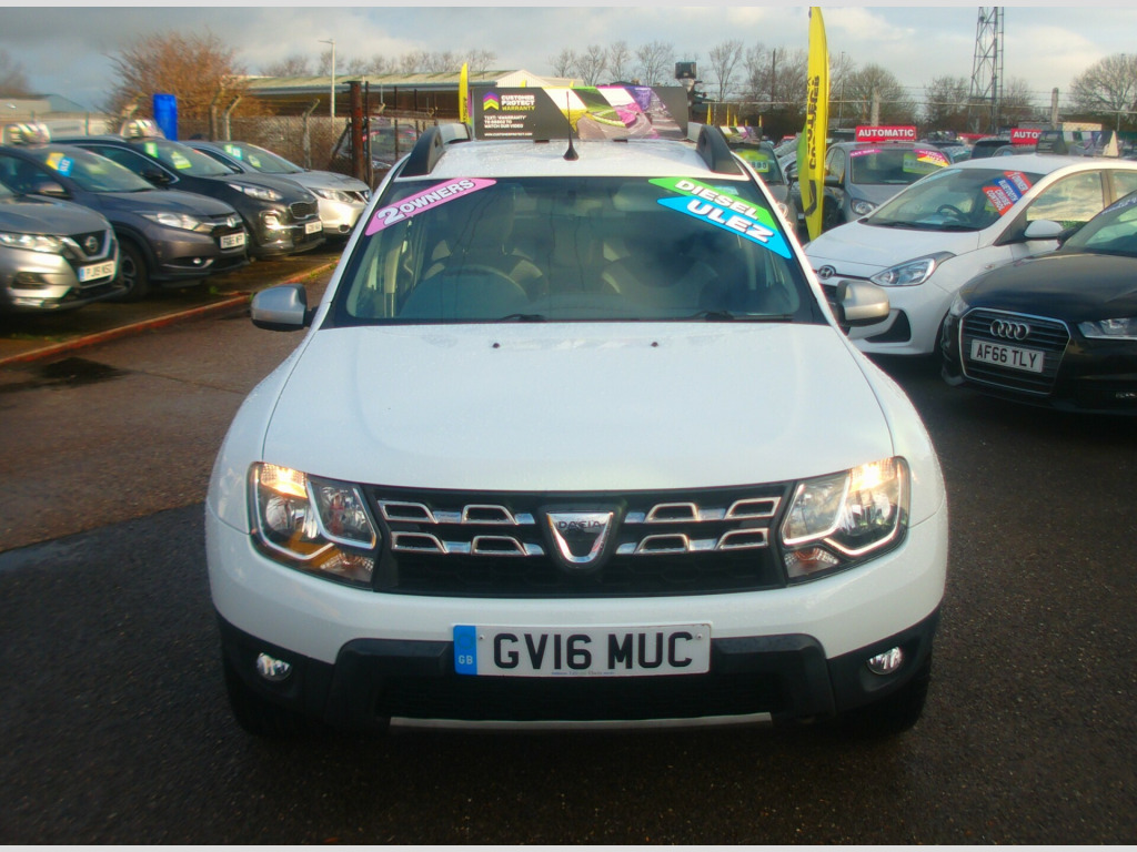 £35 A YEAR ROAD TAX ON THIS 2016 DACIA DUSTER 1.5 DCI PRESTIGE 5 DOOR, WHITE, 58,129 MILES, 2 OWNERS, ULEZ COMPLIANT DIESEL, SAT NAV, BLUETOOTH, DAB RADIO, USB, AUX, CRUISE CONTROL, REAR PARKING CAMERA, PARKING SENSORS, AIR CON, TOW BAR, ROOF RAILS, ISOFIX, C/LOCKING, ABS, MULTI AIR BAGS, FRONT FOGS, R/W/WIPE, 16'' ALLOY WHEELS, SUSSEX, EAST SUSSEX, EASTBOURNE, BN23 6PJ, 01323 643326, r conditioning, bluetooth connection, satellite navigation, cruise control, multi-function steering wheel, parking camera, parking sensors, power steering, traction control, abs, isofix child seat anchor points, multiple airbags, central locking, electric mirrors, electric windows, auxiliary input socket, alloy wheels, colour coded body, front fog lights, rear wash/wipe, roof rails, tow pack, aux, dab radio, ulez compliant, zero admin charge, £35 a year road tax