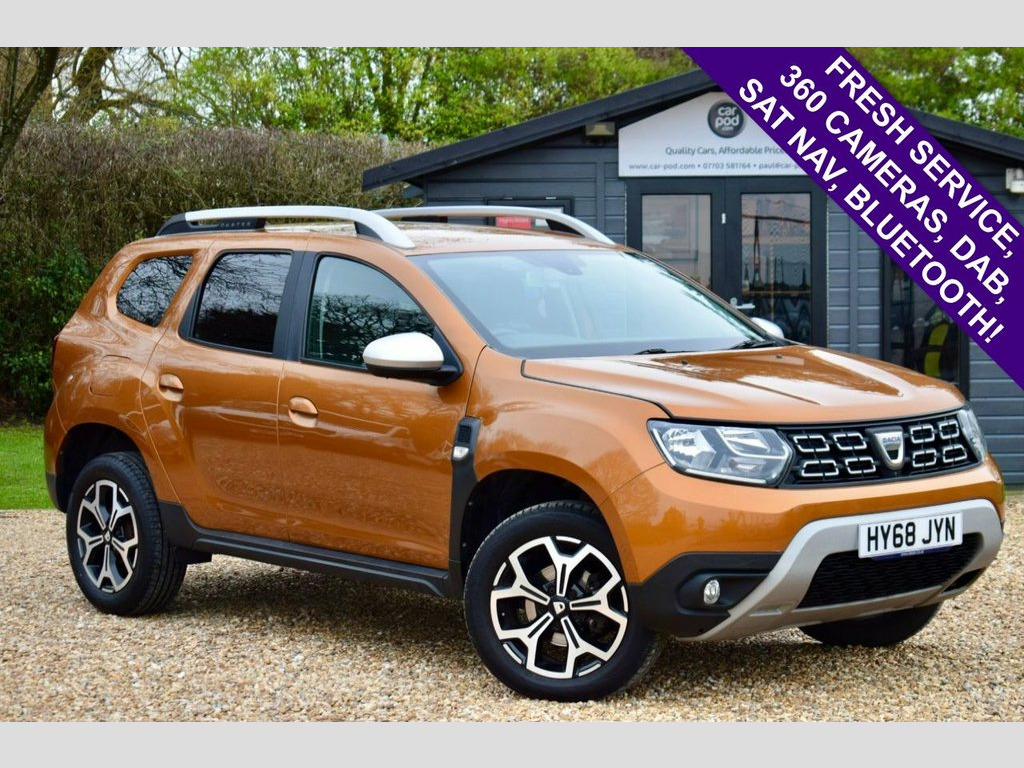 Welcome to Car-Pod and our advert for this 'Desert Orange' Dacia Duster 1.6 Prestige SUV which joins us with Service Records (Services at 4k, 7k, 13k, 18k, 24k, 49k miles) and an MOT until 6th September 2026. This car is Loaded with features including 360 Cameras, Rear Parking Sensors, Sat Nav, DAB Radio, Bluetooth, Cruise Control, Automatic Headlights, 17in Alloys, Spare Wheel and 2 Remote Keys. Call now to book your personal viewing, alternatively scan the QR Code for a walk around video of this car! 17in Alloy Wheels - Diamond-Cut, 3-Seat Rear Bench, 7in Touchscreen Navigation System Plus D, ABS - Anti-lock Braking System, Airbag - Front and Lateral, Analogue Dashboard, ASR - Traction Control with ESC - Electr, Auto Air-Conditioning, Automatic High Low Beam, Blind Spot Warning, Bluetooth Connectivity, Booster Emergency Braking, Cruise Control, Dark Metal Add-On On The Bumper Part, Dark Metal Roof Bars, Daylight - Nightlight Rearview Mirror, Desert Orange, Door Mirrors - Body Coloured, Door Mirrors - Heated and Electrically A, Driver Seat Lumbar Adjustment, DRL - Daytime Running Lights, ECO Mode, Electric Windows - Front, Electric Windows - Rear, Exhaust Tailpipe - Chrome Finish, Extra T