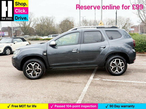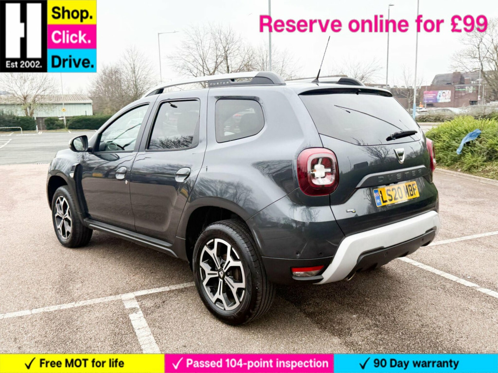 17in Alloy Wheels - Diamond-Cut, 3-Point Rear Seatbelts x3, 3-Speed Front Windscreen Wipers, 4 X 20W FM-AM-DAB Tuner with Steering-Column Mounted Fingertip Controls, 7-Function On-Board Computer, ASR - Traction Control with ESC - Electronic Stability Control, AUX Input, Air Recirculation - 4-speed Heating and Ventilation, Air Vents - Satin Chrome, Airbags - Driver, Airbags - Front Passenger with Deactivation Function, Airbags - Front Side, Anti-lock Braking System - ABS and Emergency Brake Assist - EBA, Armrest - Front Centre, Black Number Plate Surround with Satin Chrome Duster Inscription, Blind Spot Warning, Bluetooth Connectivity, Boot Light, Bumpers - Front and Rear Lower Section in Black, Bumpers - Front and Rear Upper Section - Body Coloured, Central Locking - Remote, Centre Console Fascia - Matt Black, Centre Console Surround - Dark Carbon, Child Locks in Rear Doors, Chrome Front Grille, Climate Control, Cruise Control, DRL - Daytime Running Lights, Dark Glass on Lateral Rear Windows, Decorative Inserts on Front and Rear Door Panels - Piano Black, Door Handles - Body Coloured, Door Handles - Interior Front - Black, Door Handles - Interior Rear - Black, Door Mirrors - Grey - Dark Metal, Door Mirrors - Heated and Electrically Adjustable, Door Open - Visual and Audible Warning, Driver Seat Lumbar Adjustment, Driver and Passenger Seatbelt Not Fastened - Visual and Audible Warning, Dusk Sensor, ECO Mode, Electric Power-Assisted Steering, Electric Windows - Front, Electric Windows - Rear, Fabric Decorative Insert on Front and Rear Door Panels, Front Door Sill Protection Strip, Front Fog Lights, Front Passenger Reading Light, Front Seatbelt Pretensioners, Gear Lever Cap Insert - Satin Chrome, Gear Shift Indicator, Glovebox Light, Headlights - Double Optic, Headrests - Rear Height Adjustable x3, Heated Rear Window, Height-Adjustable Drivers Seat, Height-Adjustable Front Headrests, Height-Adjustable Front Seatbelts, Height-Adjustable Steering Wheel, High Level Third Brake Light, ISOFIX Points for Child Seats in Both Outer Rear Seats, Instrument Dial Surrounds - Satin Chrome, Keyless Entry, Lower Steering Wheel Insert - Satin Chrome, Map Pockets on Front Seatbacks, Multiview Camera Includes Sensors, Rear Parking Camera, Rear Parking Sensors, Rear Passenger Reading Light, Rear Washer-Wipe, Rev Counter, Roof Bars - Longitudinal with Duster Inscription - Satin Chrome, Satellite Navigation - MediaNav 7in Touchscreen Multimedia System, Seats - 60-40 Split Folding Rear, Side Sills - Black, Skid Plates - Front and Rear - Satin Chrome, Soft Feel Steering Wheel, Speed Limiter, Steering Wheel - Chrome Logo Surround, Sunvisor with Vanity Mirror - Passenger, Tailgate Trim with Duster Inscription - Black-Satin Chrome, Thatcham Approved Engine Immobiliser, Tyre Inflation Kit, Tyre Pressure Monitor, USB Connection for MP3 Players, Under Passenger Seat Storage