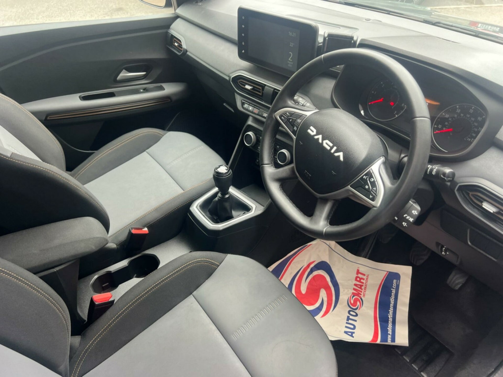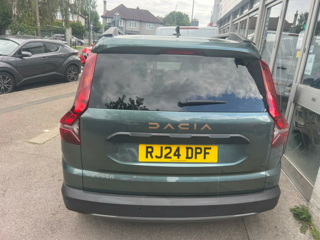With only one previous owner, this 2024 Dacia Jogger TCe EXTREME is a practical and well-equipped family car. The EXTREME trim complements the Jogger's inherent versatility, providing a comfortable and connected driving experience. The 1.0L petrol engine is Euro 6 compliant, ensuring lower emissions.Inside, the cabin offers seating for seven, making it ideal for larger families or those needing extra passenger space. The 8in MediaNav system with DAB radio, Android Auto, Apple CarPlay, and Bluetooth provides comprehensive connectivity. Features such as Blind Spot Warning with Blind Spot Assistance and automatic air conditioning, including climate control, enhance safety and convenience. The Y-Shaped LED lighting signature, including LED headlights, adds a modern touch to the exterior, while heated front seats ensure comfort during colder months. The acceleration of 0-62mph in 11.2 seconds indicates a balance of performance and efficiency, making it suitable for everyday driving. bric - colour harmony - titanium black, 16in alloy wheels - full black, 3-point rear seatbelts x3, 3-speed front windscreen wipers, 6 airbags - front and side driver and passengers including curtain airbags, 8in medianav with dab radio, air vents - satin chrome, anti-lock braking system - abs and emergency brake assist - eba, auto lighting system, automatic air conditioning, automatic central locking, automatic emergency braking system - aebs, automatic wiper, blind spot warning, child locks in rear doors, copper brown animation on air vents, copper brown dacia logo on wheel centre caps, copper brown deco part on the fog lamp area, copper brown doors deco parts, copper brown stepway marking on the roof bars, cruise control and speed limiter, dark glass, deco part on instrument panel and door with textile, door handles - body coloured, door mirrors - copper brown, door mirrors - heated and electrically adjustable, door open - visual and audible warning, door sills with topographic pattern, driver and passenger seatbelt not fastened warning, driver and passenger vanity mirror with cover, drivers one touch electric windows and rear electric windows, eco mode, esc - electronic stability control, esp - electronic stability programme and hsa - hill start assist, electric power-assisted steering, electronic parking brake, emergency call - e-call, engine immobiliser, extended grip switch, front 12v plug, front fog lights, front seatbelt pretensioners, front and rear bumper - body-coloured, front and rear parking sensors and rear-view camera, gear shift indicator, headrests - rear height adjustable x3, heated front seats, heated rear window, height and depth-adjustable steering wheel, height-adjustable drivers seat with armrest, height-adjustable front headrests, height-adjustable front seatbelts, high central armrest with console storage, high level third brake light, isofix points for child seats in both outer rear seats, interior door handles - satin chrome, keyless entry, led automatic daytime running lights, lateral sticker with topographic pattern, micro-cloud grey fabric on dashboard, modular roof bars - chrome, new 3.5in tft instrument panel with onboard computer, radiator grille - chrome, rear 12v plug, rear washer-wiper, remote central locking, rev counter, roof bars - longitudinal - black, rubber mats with topographic pattern - front and rear, shark antenna - shiny black, sliding tray tables, smartphone holder on dashboard, snorkel sticker with topographic pattern, soft feel steering wheel, split folding rear bench seat back - 1-3 - 2-3, tyre inflation kit, tyre pressure monitor, usb connection for data transfer and charging, usb socket, y-shaped led lighting signature