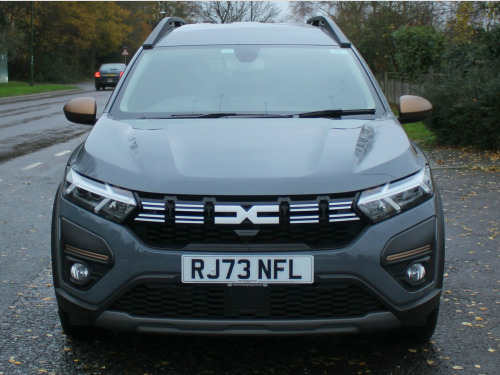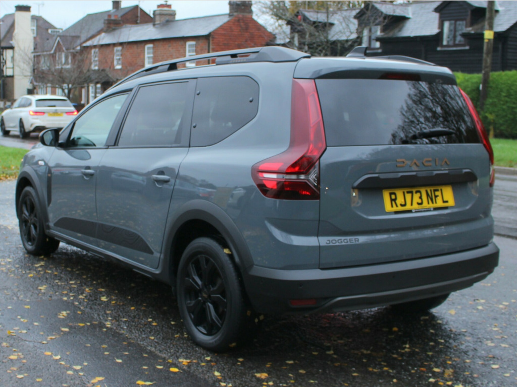 This 2023 Dacia Jogger 1.0 TCe EXTREME MPV with 31450 miles on the clock is a spacious and versatile family vehicle that is ULEZ compliant and will not require an MOT until 30/07/2026. Powered by a 1.0 litre petrol engine with a manual transmission, this 5-door MPV has 7 seats, making it an ideal choice for larger families or those needing extra space. It comes with desirable features such as a spare wheel, 16in alloy wheels, fabric interior in Colour Harmony - Titanium Black, and distinctive Copper Brown Dacia logo and deco parts. With its practicality, fuel efficiency and stylish design, this Dacia Jogger is the perfect choice for those in need of a reliable and spacious family vehicle for their day-to-day needs., OPEN 7 DAYS A WEEK - A SELECTION OF UP TO 200 CARS AND VANS AVAILABLE. Click on dealer 'VISIT WEBSITE' link for many more large photographs of this car. We are a West Sussex Trading Standards Approved 'Buy with Confidence Dealership'. in alloy wheels - full black, copper brown dacia logo on wheel centre caps, copper brown deco part on the fog lamp area, copper brown stepway marking on the roof bars, dark glass, door handles - body coloured, door mirrors - copper brown, door mirrors - heated and electrically adjustable, drivers one touch electric windows and rear electric windows, front and rear bumper - body-coloured, heated rear window, lateral sticker with topographic pattern, modular roof bars - chrome, radiator grille - chrome, roof bars - longitudinal - black, snorkel sticker with topographic pattern, tyre inflation kit, 3-point rear seatbelts x3, 6 airbags - front and side driver and passengers including curtain airbags, anti-lock braking system - abs and emergency brake assist - eba, automatic emergency braking system - aebs, child locks in rear doors, driver and passenger seatbelt not fastened warning, esc - electronic stability control, esp - electronic stability programme and hsa - hill start assist, electronic parking brake, engine immobiliser, extended grip switch, front seatbelt pretensioners, height-adjustable front seatbelts, isofix points for child seats in both outer rear seats, keyless entry, remote central locking, 3-speed front windscreen wipers, air vents - satin chrome, automatic air conditioning, automatic central locking, automatic wiper, copper brown animation on air vents, copper brown doors deco parts, deco part on instrument panel and door with textile, door sills with topographic pattern, driver and passenger vanity mirror with cover, headrests - rear height adjustable x3, heated front seats, height and depth-adjustable steering wheel, height-adjustable drivers seat with armrest, height-adjustable front headrests, high central armrest with console storage, interior door handles - satin chrome, micro-cloud grey fabric on dashboard, new 3.5in tft instrument panel with onboard computer, rear washer-wiper, rubber mats with topographic pattern - front and rear, sliding tray tables, smartphone holder on dashboard, soft feel steering wheel, split folding rear bench seat back - 1-3 - 2-3, 8in medianav with dab radio, emergency call - e-call, front 12v plug, rear 12v plug, shark antenna - shiny black, usb connection for data transfer and charging, usb socket, auto lighting system, front fog lights, high level third brake light, led automatic daytime running lights, y-shaped led lighting signature, blind spot warning, cruise control and speed limiter, door open - visual and audible warning, eco mode, electric power-assisted steering, front and rear parking sensors and rear-view camera, gear shift indicator, rev counter, tyre pressure monitor