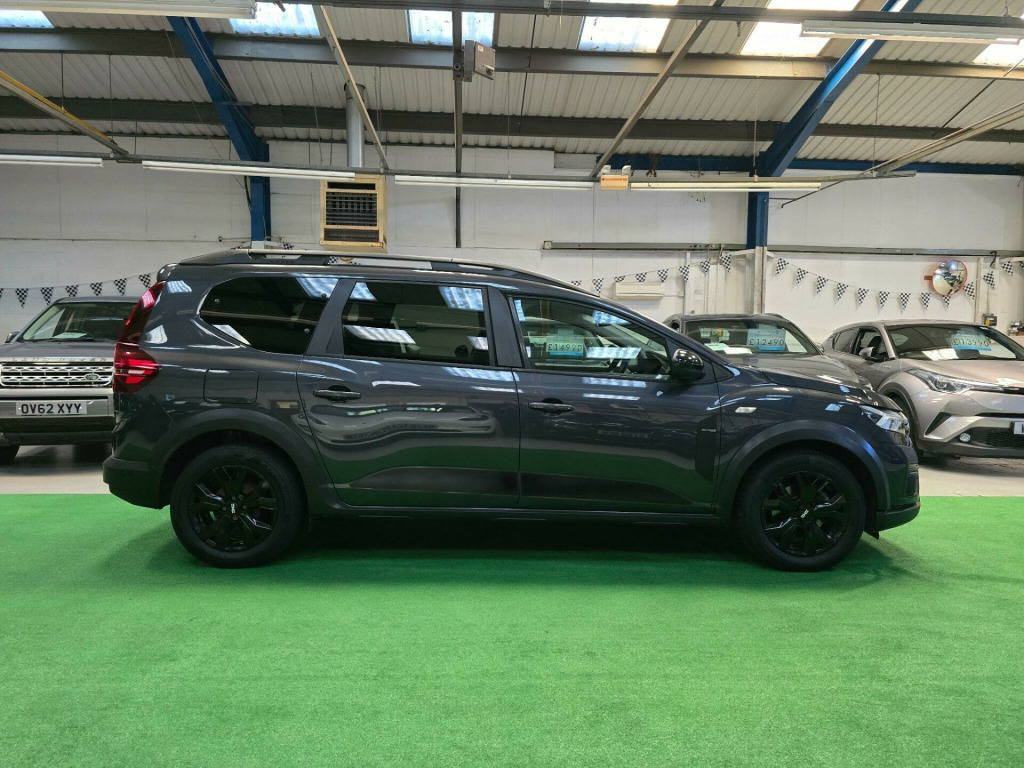 This 2023 Dacia Jogger TCe Extreme SE is a superb example, having had only one owner since new. This Euro 6 compliant, 1.0 litre petrol model offers exceptional practicality with its seven seats, making it ideal for families or those needing extra space. The Extreme SE trim level comes equipped with a host of desirable features, including a Y shaped LED lighting signature with automatic headlights, and heated front seats for added comfort. For seamless connectivity and entertainment, it boasts an 8in MediaNav system with DAB radio, supporting both Android Auto and Apple CarPlay, alongside Bluetooth functionality. Safety is also a priority, with Blind Spot Warning and Blind Spot Assistance systems included.The Dacia Jogger TCe Extreme SE offers a compelling blend of efficiency and performance, accelerating from 0 to 62mph in a respectable 11.2 seconds. These highlights demonstrate how this vehicle stands out from others in its class, providing a well rounded package for everyday driving. The combination of its spacious interior, modern technology, and advanced safety features ensures a comfortable and secure experience for all occupants.. 16in Alloy Wheels - Black, 3-Point Rear Seatbelts x3, 3-Speed Front Windscreen Wipers, 6 Airbags - Front and Side Driver and Passengers including Curtain Airbags, 8in MediaNav with DAB Radio, Air Vents - Satin Chrome, Airbags - Front Passenger Deactivation, Anti-lock Braking System - ABS and Emergency Brake Assist - EBA, Auto Lighting System, Automatic Air Conditioning, Automatic Central Locking, Automatic Emergency Braking System - AEBS, Blind Spot Warning, Child Locks in Rear Doors, Cruise Control and Speed Limiter, Dark Glass, Deco Part on Instrument Panel and Door with Textile, Door Handles - Body Coloured, Door Mirrors - Black Painted, Door Mirrors - Heated and Electrically Adjustable, Door Open - Visual and Audible Warning, Driver and Passenger Seatbelt Not Fastened Warning, Driver and Passenger Vanity Mirror with Cover, Drivers One Touch Electric Windows and Rear Electric Windows, ECO Mode, ESC - Electronic Stability Control, ESP - Electronic Stability Programme and HSA - Hill Start Assist, Electric Power-Assisted Steering, Electronic Parking Brake, Emergency Call - E-Call, Engine Immobiliser, Floor Mats, Front 12v Plug, Front Fog Lights, Front Seatbelt Pretensioners, Front and Rear Bumper - Body-Coloured, Front and Rear Parking Sensors and Rear-View Camera, Gear Shift Indicator, Headrests - Rear Height Adjustable x3, Heated Front Seats, Heated Rear Window, Height and Depth-Adjustable Steering Wheel, Height-Adjustable Drivers Seat with Armrest, Height-Adjustable Front Headrests, Height-Adjustable Front Seatbelts, High Central Armrest with Console Storage, High Level Third Brake Light, ISOFIX Points for Child Seats in Both Outer Rear Seats, Interior Door Handles - Satin Chrome, Interior Trim - Fog Grey, Keyless Entry, LED Automatic Daytime Running Lights, Lower Door Protection Sticker - Additional - Snorkel Type - Megalith Grey, Luggage Space Cover, Modular Roof Bars - Chrome, New 3.5in TFT Instrument Panel with Onboard Computer, Radiator Grille - Chrome, Rear 12v Plug, Rear Washer-Wiper, Remote Central Locking, Rev Counter, Roof Bars - Longitudinal - Black, Shark Antenna - Shiny Black, Skid Plates - Front and Rear - Megalith Grey, Smartphone Holder on Dashboard, Soft Feel Steering Wheel, Split Folding Rear Bench Seat Back - 1-3 - 2-3, Tyre Inflation Kit, Tyre Pressure Monitor, USB Connection for Data Transfer and Charging, USB Socket, Y-Shaped LED Lighting Signature, Reverse Camera, Satellite Navigation, Fabric - Colour Harmony - Titanium Black. Part service history