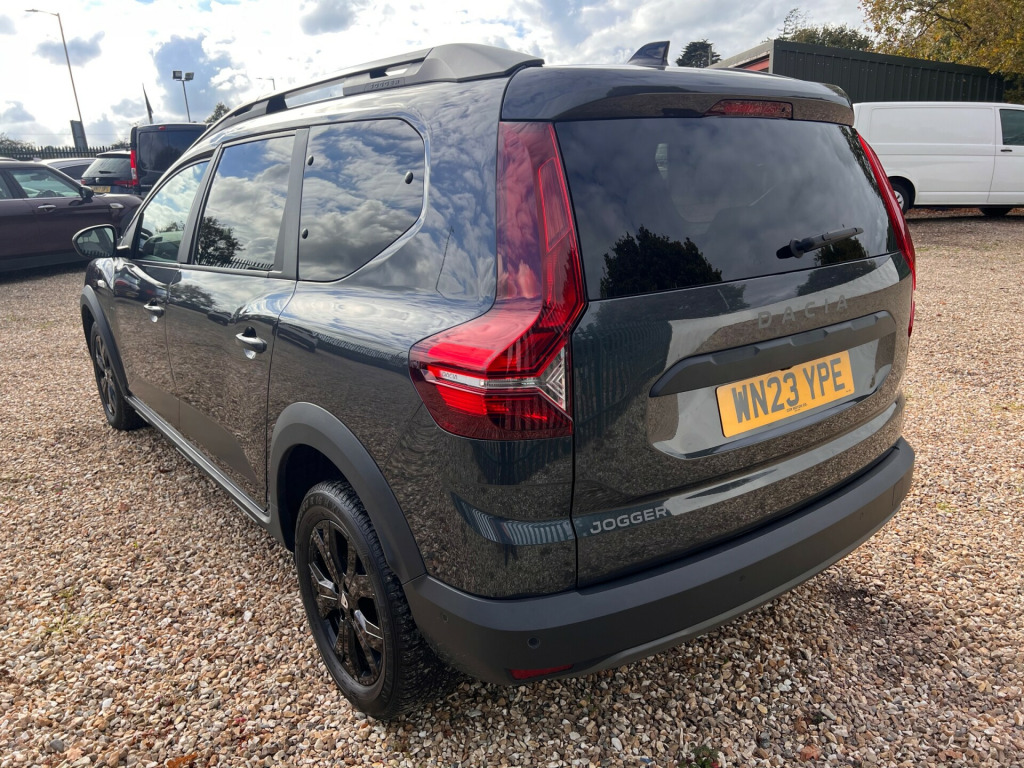 This 2023 Dacia Jogger 1.0 TCe Extreme SE MPV with a manual petrol engine is the perfect family car, with 7 seats and 5 doors to accommodate everyone comfortably. With only 48000 miles on the clock, this spacious MPV is still in great condition and is ULEZ compliant for peace of mind in city driving. Featuring a sleek Slate Grey exterior, 16in Alloy Wheels in Black, Dark Glass, Body Coloured Door Handles, and Black Painted Door Mirrors, this car exudes style and practicality. With a powerful 110 ps engine, this Euro 6 compliant vehicle is ideal for long journeys or everyday use, making it a great choice for those in need of a reliable and spacious car.- Extended Warranties Available- Finance Available- Part Exchange Welcome in alloy wheels - black, dark glass, door handles - body coloured, door mirrors - black painted, door mirrors - heated and electrically adjustable, drivers one touch electric windows and rear electric windows, front and rear bumper - body-coloured, heated rear window, modular roof bars, radiator grille - chrome, roof bars - longitudinal - black, side protection stickers - snorkel-type sticker, tyre inflation kit, 3-point rear seatbelts x3, 6 airbags - front and side driver and passengers including curtain airbags, anti-lock braking system - abs and emergency brake assist - eba, automatic emergency braking system - aebs, child locks in rear doors, driver and passenger seatbelt not fastened warning, esc - electronic stability control, esp - electronic stability programme and hsa - hill start assist, electronic parking brake, engine immobiliser, front seatbelt pretensioners, height-adjustable front seatbelts, isofix points for child seats in both outer rear seats, keyless entry, remote central locking, skid plates - front and rear - megalith grey, 3-speed front windscreen wipers, air vents - satin chrome, automatic air conditioning, automatic central locking, automatic windscreen wipers, deco part on instrument panel and door with textile, driver and passenger vanity mirror with cover, fixed smartphone holder on dashboard, floor mats, headrests - rear height adjustable x3, heated front seats, height and depth-adjustable steering wheel, height-adjustable drivers seat with armrest, height-adjustable front headrests, high central armrest with console storage, interior door handles - satin chrome, new 3.5in tft instrument panel with onboard computer, rear washer-wiper, sliding tray tables, soft feel steering wheel, split folding rear bench seat back - 1-3 - 2-3, 8in medianav with dab radio, emergency call - e-call, front 12v plug, glossy black shark-type aerial, rear 12v plug, usb connection for data transfer and charging, usb socket, auto lighting system, front fog lights, high level third brake light, led automatic daytime running lights, y-shaped led lighting signature, blind spot warning, cruise control and speed limiter, door open - visual and audible warning, eco mode, electric power-assisted steering, front and rear parking sensors and rear-view camera, gear shift indicator, rev counter, tyre pressure monitor