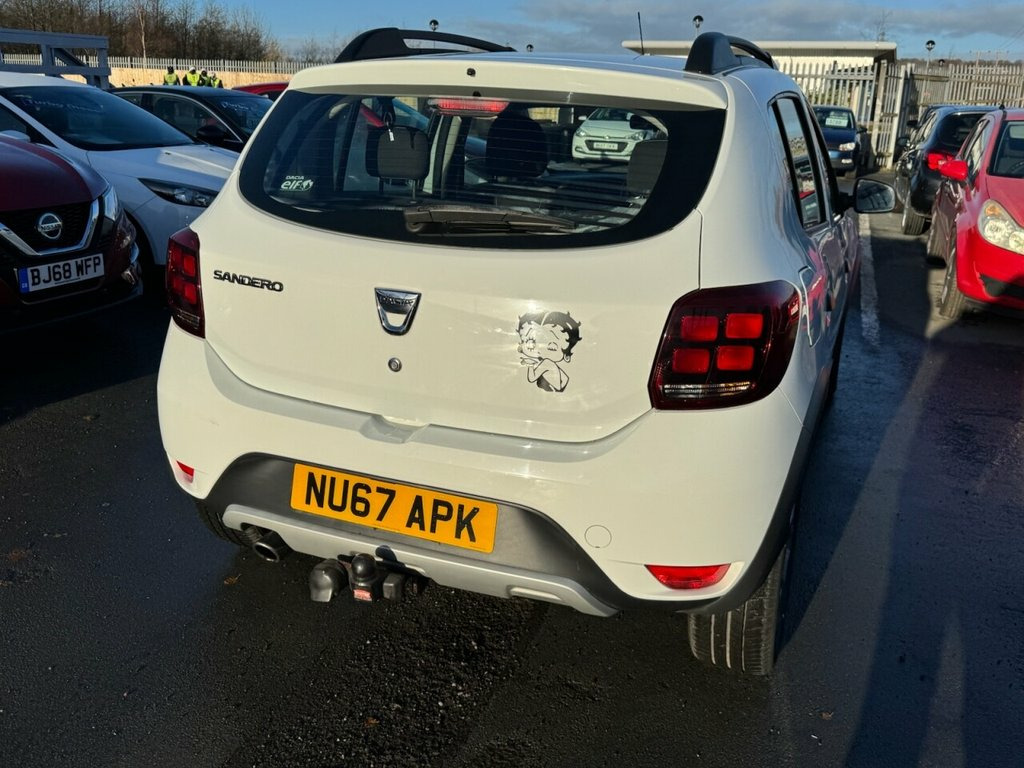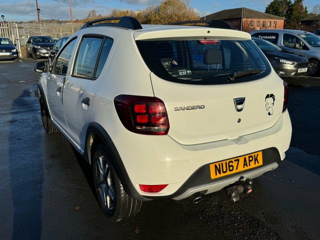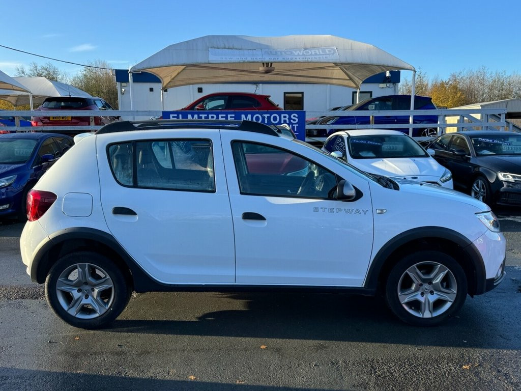 Here we have a superb example of our Dacia Sandero Stepway - Ambiance Edition - which is great on fuel plus comes with the full Ambiance spec which includes Bluetooth system, Eco mode, Tinted windows, USB connection, a Free 3 Month Warranty & a Full 12 Month MOT with NO Advisories. javascript:; We do a FREE Experian HPI Check on every vehicle. Poor credit finance is also available on this car. We have a huge selection of over 250 cars to choose from & are open 7 days a week. WARRANTY Every car comes with a 3 month parts & labour warranty that can be extended upon request. MOT We complete a full 12 month MOT that will be carried out at the point of sale. You don't have to worry about the previous MOT as we will do a fresh one for you & complete any previous or current advisories. HPI All of our cars have a full HPI check. If any of our cars are showing on finance or any mileage discrepancies then just give us a call as usually Experian just forget to update their system which can always be rectified. VOSA All of our cars have an up to date VOSA history check. PART EXCHANGE We can take your old car in as part exchange no matter what the condition. LOCATION We are situated just opposite the entrance to the old Federation Brewery in Dunston, just off the A1 Motorway, just to the rear of the Metrocentre in Gateshead. PHOTOGRAPHY Please visit our website more photos & a video. We can do a live viewing of any car. PAYMENT We accept all major 12V Power Socket by Gear Lever, 12V Socket for Rear Passengers, 16in Steel Wheels - Stepway Design, 3-Point Rear Seatbelts x3, 3-Speed Front Windscreen Wipers, Air Recirculation - 4-speed Heating and , Air Vents - Satin Chrome, Airbags - Driver, Airbags - Front Passenger with Deactivat, Airbags - Front Side, Anti-intruder Automatic Door-locking Sys, Anti-lock Braking System - ABS and Emerg, AUX Input, Bluetooth Connectivity, Boot Light, Bumpers - Front and Rear Body Coloured, Central Console Surround - Satin Chrome, Central Locking - Remote, Child Locks in Rear Doors, Chrome Front Grille, DAB-FM-AM Radio, Door Handles - Black, Door Handles - Interior Front - Satin Ch, Door Handles - Interior