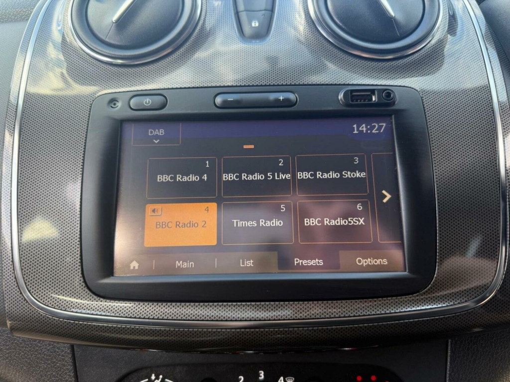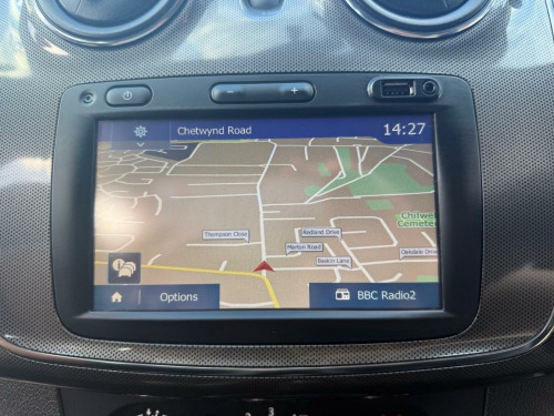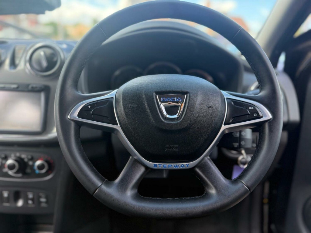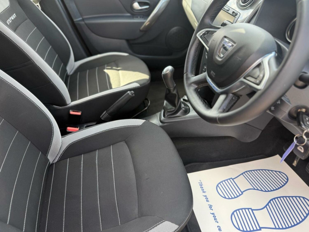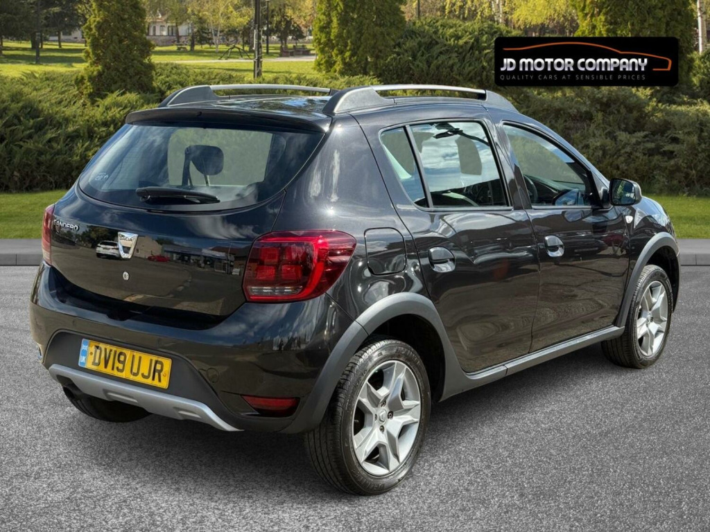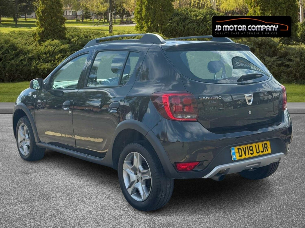 Dacia Sandero Stepway Comfort TCE, 0.9 petrol, 5 door hatchback in black. This vehicle is currently on 82,500 miles with a full service history with stamps present at 11k, 21k, 34k, 46k, 58k, 70k and then at 78k. Has a very long MOT with the next one being due on the 26/10/2026 with no advisory items present. A one previous owner example that has been maintained to a very high standard. Very good condition throughout, clean bodywork and has a superb clean interior with no unpleasant smells. Has a nice specification which includes remote central locking, alloy wheels, cloth upholstery, cup holders, air conditioning, bluetooth, roof bars, satellite navigation system, cruise control, daytime running lights and much more. This vehicle is HPI clear, the V5 is present and comes with two keys. Part exchange welcome, finance is available. We are located in Chilwell, Nottingham please call before travelling to visit us to check availability and make an appointment. A 3 months warranty is supplied with this vehicle and there is an option to upgrade to a 12 month Warranty Wise warranty for a small fee. Please speak to one of our sales advisors who will be happy to help.