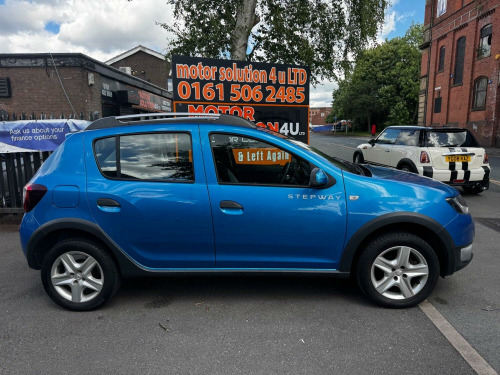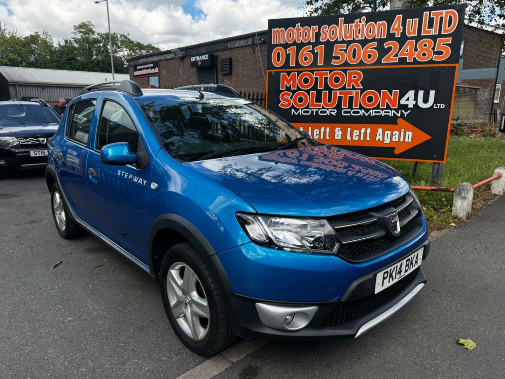 Full Service History. Just been serviced @ current mileage . 2 keys. Bluetooth phone conn. USB-AUX. Reverse Parking Sensors. SAT NAV. Dacia Sandero Stepway 0.9 Stepway Laureate TCe 90 finished in Blue (Manual), 16844 miles, only 1 previous owner. , Only £5495, , FINANCE AVAILABLE, PLEASE ASK FOR OUR COMPETITIVE FINANCE DEALS.12 MONTHS RAC BREAKDOWN COVER AVAILAVLE. Up To 2 years RAC Warranty available. ALL MAJOR CARDS ACCEPTED. INSPECTIONS WELCOME. WE ARE OPEN MONDAY TO SATURDAY 10.00 TO 17.00. All our cars comes with HPI check, Warranty and Full Valet. Part exchange welcome, please ring for details. Open Monday to Saturday 10.00 to 17.00. Full dealer facilities. Please visit our website www.motorsolution4u.co.uk 172 CHESTERGATE, STOCKPORT, SK3 0BQ