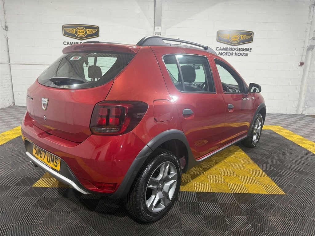 SERVICE HISTORY (4 STAMPS IN BOOK), LAST SERVICED AT 23155 MILES, 2 KEYS, Discover this 2017 Dacia Sandero Stepway TCe Ambiance, boasting exceptionally low mileage for its year at just 26,000 miles. This Euro 6 compliant 0.9L petrol model offers a practical and enjoyable driving experience, enhanced by manual air conditioning for your comfort and Bluetooth connectivity for seamless audio streaming and handsfree calls. The Dacia Sandero Stepway stands out with its impressive fuel economy, achieving a remarkable 55 miles per gallon, which is better than many similar vehicles. Furthermore, its low insurance group rating means lower running costs, and the generous boot space provides ample room for shopping, luggage, or equipment, making it a truly versatile choice. 12V Power Socket,12V Socket for Rear Passengers,16in Steel Wheels - Stepway Design,3-Point Rear Seatbelts x3,3-Speed Front Windscreen Wipers,AUX Input,Air Recirculation - 4-speed Heating and Ventilation,Air Vents - Satin Chrome,Airbags - Driver,Airbags - Front Passenger with Deactivation Function,Airbags - Front Side,Anti-intruder Automatic Door-locking System,Anti-lock Braking System - ABS and Emergency Brake Assist - EBA,Bluetooth Connectivity,Boot Light,Bumpers - Front and Rear Body Coloured,Central Console Surround - Satin Chrome,Central Locking - Remote,Child Locks in Rear Doors,Chrome Front Grille,DAB-FM-AM Radio,Door Handles - Black,Door Mirrors - Manually Adjustable,Door Mirrors - Metal Grey,Door Open - Visual Warning,Door Panels - Two-Tone Dark Carbon-Light Grey,EBD - Electronic Brakeforce Distribution,ECO Mode,ESC - Electronic Stability Control with ASR - Traction Control and Hill Start Assist - HSA,Electric Windows - Front,Fog Lamp Embellisher - Satin Chrome,Front Courtesy Light,Front Fog Lights,Front Passenger Grab Handle,Gear Shift Indicator,Headlights - Double Optic with Chrome Surrounds,Headlights Left On - Audible and Visual Warning,Headrests - Rear Height Adjustable x3,Heated Rear Window,Height-Adjustable Drivers Seat,Height-Adjustable Front Headrests,Height-Adjustable Front Seatbelts,Height-Adjustable Steering Wheel,High Level Third Brake Light,ISOFIX Points for Child Seats in Both Outer Rear Seats,Instrument Dial Surrounds - Satin Chrome,Interior Door Handles - Front - Satin Chrome,Interior Door Handles - Rear- Satin Chrome,LED Automatic Daytime Running Lights,Manual Air Conditioning,Manual Windows - Rear,Map Pockets on Front Seatbacks,Power Assisted Steering,Raised Ride Height,Rear Passenger Grab Handles,Rear Washer-Wipe,Rev Counter,Roof Bars - Satin Chrome,Seatbelt not Fastened - Visual and Audible Warning,Seats - 60-40 Split Folding Rear,Side Sills - Black,Skid Plates - Front and Rear - Satin Chrome,Stepway Logo on Front Door Panel,Sunvisor with Vanity Mirror - Passenger,Thatcham Approved Engine Immobiliser,Tinted Windows,Tyre Inflation Kit,Tyre Pressure Monitor,USB Connection for MP3 Players,Wheelarch Extensions
