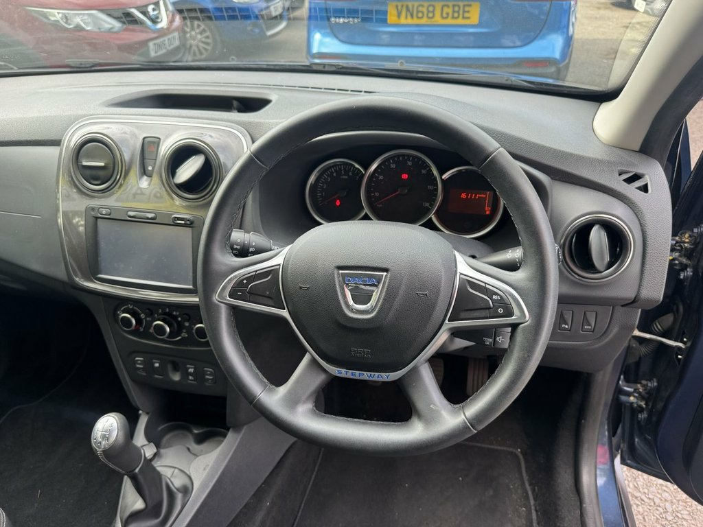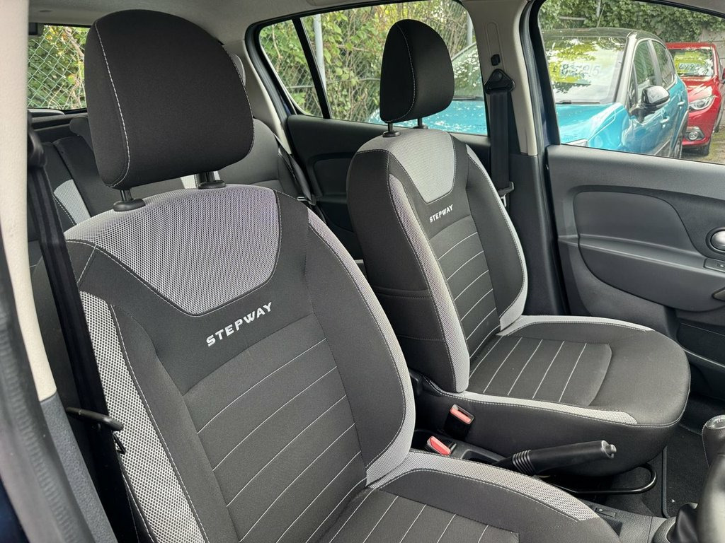 Dacia Sandero Stepway TCE Comfort in metallic blue, has service history with 6 stamps in the book. Comes with sat navigation, 16" alloy wheels, air conditioning, electric windows in the front and rear, electric mirrors, rear parking sensors, cruise control, stop/start engine, its a 5 speed, has bluetooth, voice command, a touchscreen dab radio, aux port, usb, multifunction steering wheel and 2 remote keys. THE CAR WILL HAVE A SERVICE AND 12 MONTHS MOT / PART EXCHANGE IS ALWAYS WELCOME / FREE 12 MONTH AA ROADSIDE RECOVERY INCLUDED / FINANCE IS AVAILABLE VIA OUR WEBSITE LINK / THE CAR HAS BEEN HPI AND MILEAGE CHECKED, ALL OK / WE ARE A FAMILY RUN BUSINESS AND HAVE BEEN TRADING FOR OVER 30 YEARS, WE OFFER DELIVERY IN MAINLAND UK (Please ask for details), WE ARE HERE TO HELP YOU! PLEASE CONTACT US WITH ANY QUESTIONS 12V Power Socket by Gear Lever, 12V Socket for Rear Passengers, 16in Steel Wheels - Stepway Design, 3-Point Rear Seatbelts x3, 3-Speed Front Windscreen Wipers, 7-Function On-Board Computer, Air Recirculation - 4-speed Heating and , Air Vents - Satin Chrome, Airbags - Driver, Airbags - Front Passenger with Deactivat, Airbags - Front Side, Anti-intruder Automatic Door-locking Sys, Anti-lock Braking System - ABS and Emerg, AUX Input, Black Wheel Arch Extensions, Bluetooth Connectivity, Boot Light, Bumpers - Front and Rear Body Coloured, Central Console Surround - Satin Chrome, Central Locking - Remote, Child Locks in Rear Doors, Chrome Front Grille Strip, Chrome Heating Control Inserts, Cruise