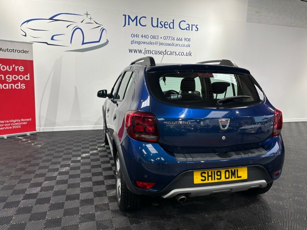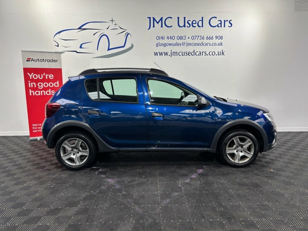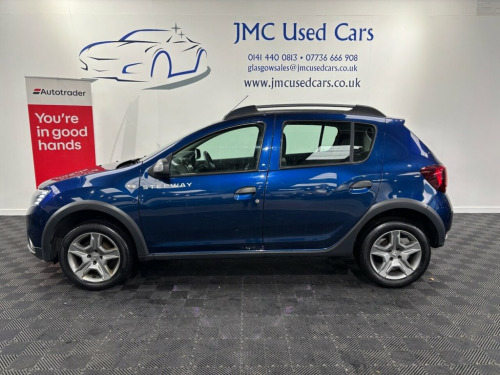 The Dacia Sandero Stepway 0.9 TCe Comfort is a versatile and affordable hatchback that stands out with its robust, crossover-inspired design. Powered by a 0.9-litre petrol engine, it offers a good balance of performance and fuel efficiency, making it an ideal choice for those seeking practicality without breaking the bank. The Euro 6 compliance ensures it meets modern environmental standards, while the higher ground clearance adds a bit of extra ruggedness for light off-road adventures. Inside, the cabin is surprisingly spacious, with a simple yet functional layout, and features like Bluetooth connectivity and air conditioning for added comfort. The Sandero Stepway delivers great value for money, offering a comfortable and reliable driving experience. Award-Winning Family Business | Premium Customer Service & Aftercare Located just off Junction 24 of the M8 in Glasgow, we offer an impressive range of quality used cars, all displayed in our indoor showroom. Each vehicle is meticulously prepared to meet our high standards, ensuring you're driving away with complete confidence. We welcome part exchanges and offer tailored finance and warranty packages to suit every budget. Need help choosing the right car? Our team is here to provide expert advice and support. Can't make it in person? No problem! We offer live video walkarounds of our cars upon request, and you can complete all finance agreements securely online. For more details or to arrange a viewing, contact M Azurite Blue, 12V Power Socket by Gear Lever, 12V Socket for Rear Passengers, 16in Steel Wheels - Stepway Design, 3-Point Rear Seatbelts x3, 3-Speed Front Windscreen Wipers, 7-Function On-Board Computer, AUX Input, Air Recirculation - 4-speed Heating and , Air Vents - Satin Chrome, Airbags - Driver, Airbags - Front Passenger with Deactivat, Airbags - Front Side, Anti-intruder Automatic Door-locking Sys, Anti-lock Braking System - ABS and Emerg, Black Wheel Arch Extensions, Bluetooth Connectivity, Boot Light, Bumpers - Front and Rear Body Coloured, Central Console Surround - Satin Chrome, Central Locking - Remote, Child Locks in Rear Doors, Chrome Front Grille Strip, Chrome Heating Control In