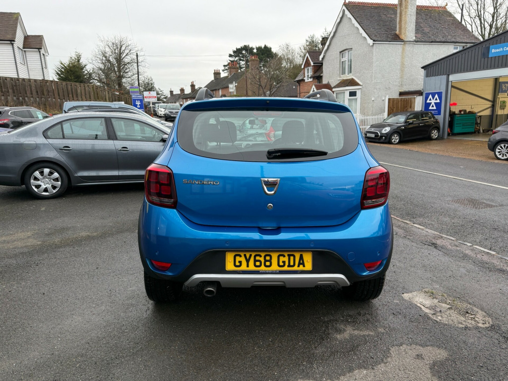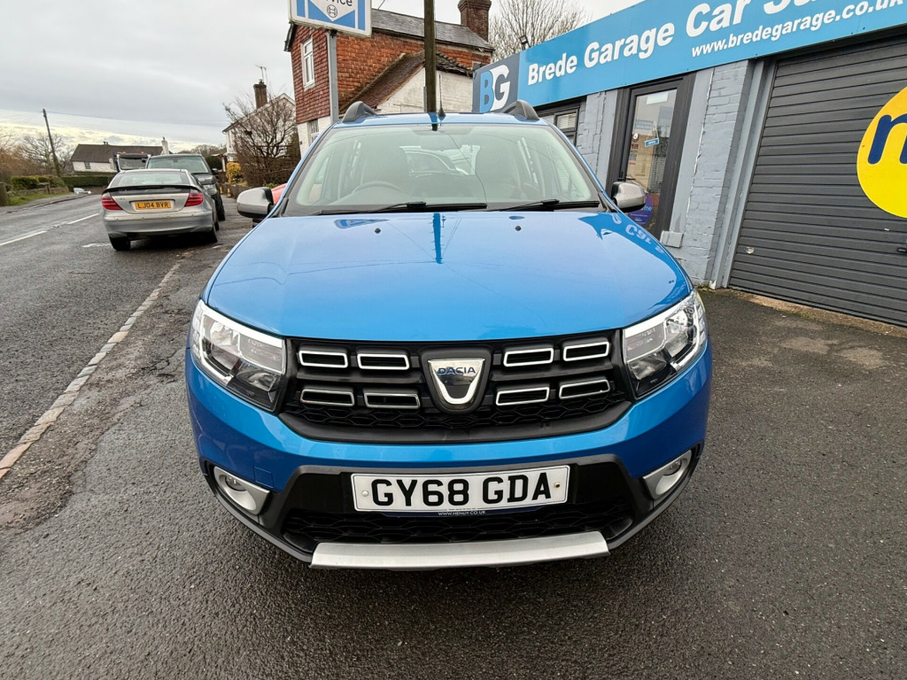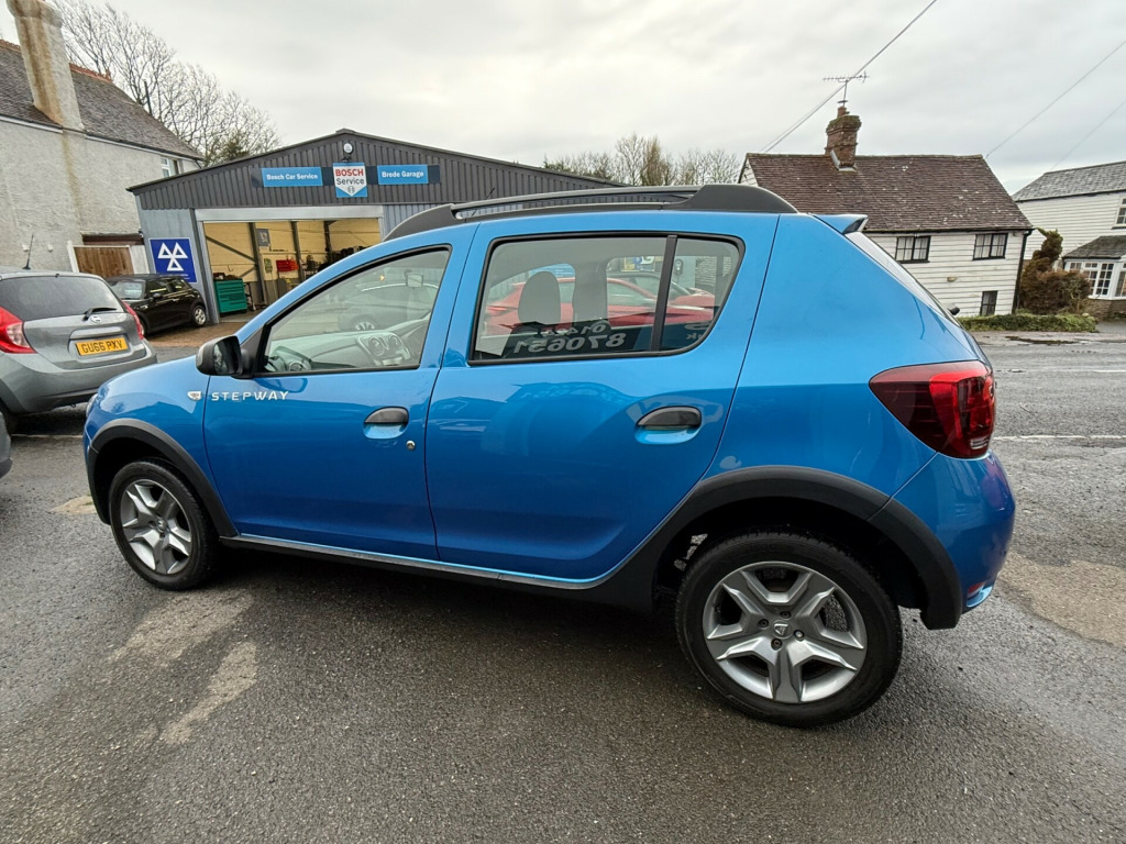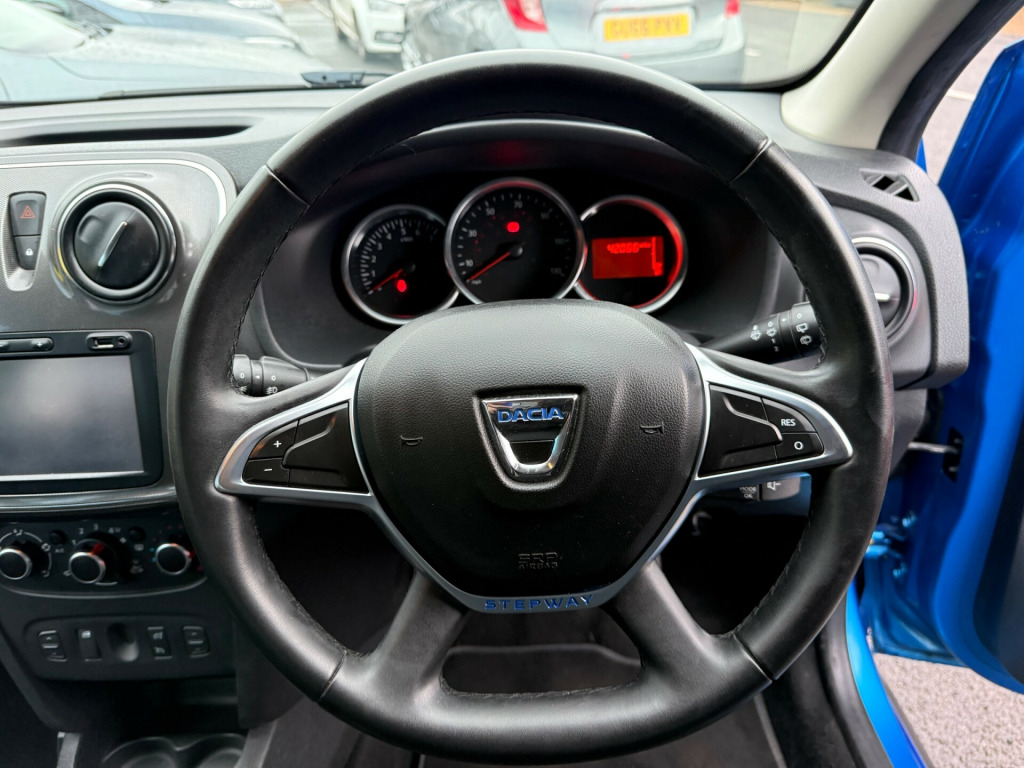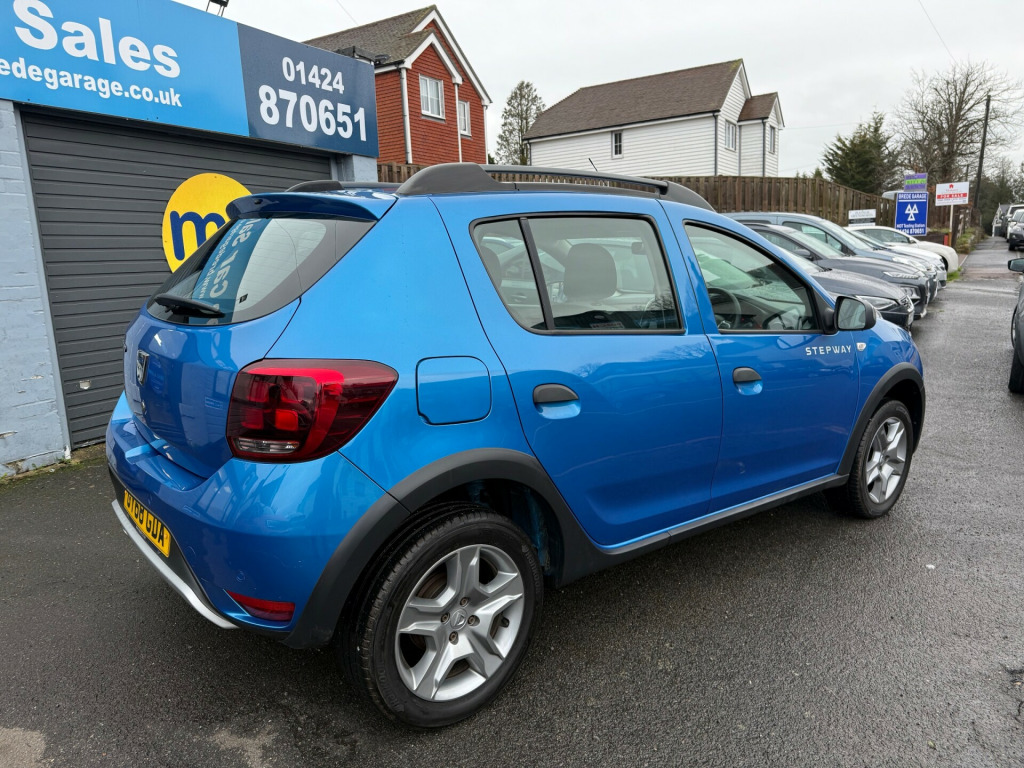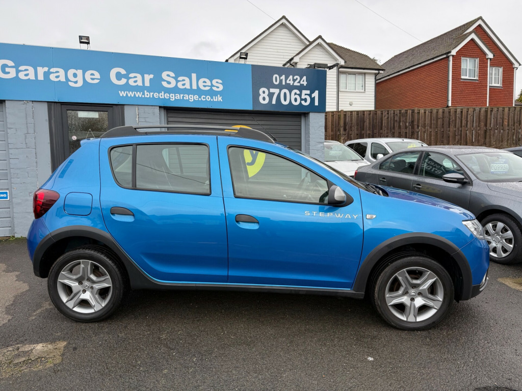 This 2018 Dacia Sandero Stepway 0.9 TCe Comfort Hatchback with 42066 miles on the clock is a reliable and efficient choice for anyone in need of a practical vehicle. With 5 seats and 5 doors, it offers ample space for passengers and cargo, making it suitable for daily commutes and family outings. Powered by a petrol engine, this Euro 6 (s/s) compliant vehicle is also ULEZ compliant, providing peace of mind for city driving. This comes with a new MOT, ensuring its roadworthiness for years to come. The Azurite Blue exterior is complemented by a rear parking camera, making parking and reversing a breeze. Inside, the 12V power socket by the gear lever and for rear passengers, as well as an AUX input, provide convenience and connectivity for modern lifestyles. This hatchback combines practicality with style, making it an attractive option for those in the market for a versatile and economical car., v power socket by gear lever, 12v socket for rear passengers, aux input, bluetooth connectivity, dab-fm-am radio, satellite navigation - medianav evolution 7in touchscreen multimedia system, usb connection for mp3 players, 16in steel wheels - stepway design, black wheel arch extensions, bumpers - front and rear body coloured, chrome front grille strip, door handles - black, door mirrors - heated and electrically adjustable, door mirrors - metal grey, electric windows - front, electric windows - rear, fog lamp embellisher - satin chrome, heated rear window, roof bars - metal grey, side sills - black, skid plates - front and rear - satin chrome, stepway logo on front door panel, tinted windows, tyre inflation kit, 3-point rear seatbelts x3, airbags - driver, airbags - front passenger with deactivation function, airbags - front side, anti-intruder automatic door-locking system, anti-lock braking system - abs and emergency brake assist - eba, central locking - remote, child locks in rear doors, esc - electronic stability control with asr - traction control and hill start assist - hsa, height-adjustable front seatbelts, isofix points for child seats in both outer rear seats, seatbelt not fastened - visual and audible warning, thatcham approved engine immobiliser, 3-speed front windscreen wipers, air recirculation - 4-speed heating and ventilation, air vents - satin chrome, boot light, central console surround - satin chrome, chrome heating control inserts, door handles - interior front - satin chrome, door handles - interior rear - satin chrome, door panels - dark carbon, front courtesy light, front passenger grab handle, gear knob - leather, headrests - rear height adjustable x3, height-adjustable drivers seat, height-adjustable front headrests, height-adjustable steering wheel, instrument dial surrounds - satin chrome, manual air conditioning, map pockets on front seatbacks, rear passenger grab handles, rear washer-wipe, seats - 60-40 split folding rear, soft feel steering wheel, sunvisor with vanity mirror - passenger, 7-function on-board computer, cruise control and speed limiter, door open - visual warning, eco mode, gear shift indicator, power assisted steering, raised ride height, rear parking sensors, rev counter, tyre pressure monitor, front fog lights, headlights - double optic with chrome surrounds, headlights left on - audible and visual warning, high level third brake light, led automatic daytime running lights, 12 months mot, 6 months nationwide warranty, aa dealer promise 12 months free breakdown cover