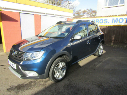***** Sold with a service, a full MOT and 6 months road tax ***** This Dacia Sandero Stepway has covered 46,493 miles the 0.9 litre TCe petrol engine can return a quoted 47.1 miles to the gallon combined which makes it an economical choice. The Essential model comes with extras including Bluetooth phone connectivity, air conditioning, electric front windows, remote central locking and a DAB digital radio included in the specification. It is complete with the owner's manual / service book and two remote keys. Prior to handover to the new owner we will give the vehicle a service, a full MOT and include six months road tax. A part exchange is welcome on this vehicle, finance options are available and most major credit and debit cards are accepted. Please contact us for full details for part exchange or finance quotes ***** Please see our own website to view all our cars ***** We are a small, family run business that has a genuine interest in motor vehicles and have been buying and selling cars in Dundee from the same premises since 1973 ***** All cars come with a warranty and are road taxed at point of sale so they are ready to drive away ***** Our cars are all fully inspected, HPI checked and well prepared ***** We are happy to assist with transferring a cherished registration if you have one so that your new car is ready to go with your registration already on it ***** We are open Monday - Saturday 8:30 until 17:30 and 10:30 - 15:00 on Sundays ***** After hours available by appointment ***** Please see our reviews. Bluetooth Connectivity, Manual Air Conditioning, DAB-FM-AM Radio, Electric Windows - Front, Central Locking - Remote, Power Assisted Steering, Tyre Pressure Monitor, 12V Power Socket by Gear Lever, Anti-lock Braking System - ABS and Emergency Brake Assist - EBA, ESC - Electronic Stability Control with ASR - Traction Control and Hill Start Assist - HSA, Height-Adjustable Drivers Seat, Height-Adjustable Steering Wheel, Raised Ride Height, Black Wheel Arch Extensions, Side Sills - Black, Roof Bars - Metal Grey, Skid Plates - Front and Rear - Satin Chrome, AUX Input, Boot Light, ECO Mode, Front Fog Lights, Fog Lamp Embellisher - Satin Chrome, Gear Shift Indicator, Map Pockets on Front Seatbacks, Seats - 60-40 Split Folding Rear, USB Connection for MP3 Players, Child Locks in Rear Doors, ISOFIX Points for Child Seats in Both Outer Rear Seats, Thatcham Approved Engine Immobiliser, Airbags - Driver, Airbags - Front Passenger with Deactivation Function, Airbags - Front Side, 2 Remote Keys, Emergency Spare Wheel, Stepway Cloth - Dark Carbon.