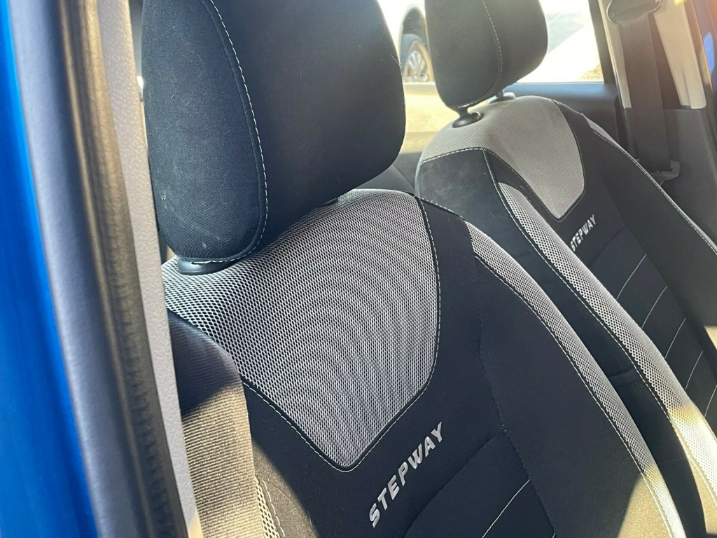 v power socket by gear lever, 12v socket for rear passengers, aux input, bluetooth connectivity, dab-fm-am radio, usb connection for mp3 players, 16in steel wheels - stepway design, black wheel arch extensions, bumpers - front and rear body coloured, chrome front grille strip, door handles - black, door mirrors - manually adjustable, door mirrors - metal grey, electric windows - front, fog lamp embellisher - satin chrome, heated rear window, manual windows - rear, roof bars - metal grey, side sills - black, skid plates - front and rear - satin chrome, stepway logo on front door panel, tinted windows, tyre inflation kit, 3-point rear seatbelts x3, airbags - driver, airbags - front passenger with deactivation function, airbags - front side, anti-intruder automatic door-locking system, anti-lock braking system - abs and emergency brake assist - eba, central locking - remote, child locks in rear doors, esc - electronic stability control with asr - traction control and hill start assist - hsa, height-adjustable front seatbelts, isofix points for child seats in both outer rear seats, seatbelt not fastened - visual and audible warning, thatcham approved engine immobiliser, 3-speed front windscreen wipers, air recirculation - 4-speed heating and ventilation, air vents - satin chrome, boot light, central console surround - satin chrome, door handles - interior front - satin chrome, door handles - interior rear - satin chrome, door panels - two-tone dark carbon-light grey, front courtesy light, front passenger grab handle, headrests - rear height adjustable x3, height-adjustable drivers seat, height-adjustable front headrests, height-adjustable steering wheel, instrument dial surrounds - satin chrome, manual air conditioning, map pockets on front seatbacks, rear passenger grab handles, rear washer-wipe, seats - 60-40 split folding rear, sunvisor with vanity mirror - passenger, door open - visual warning, eco mode, gear shift indicator, power assisted steering, raised ride height, rev counter, tyre pressure monitor, front fog lights, headlights - double optic with chrome surrounds, headlights left on - audible and visual warning, high level third brake light, led automatic daytime running lights