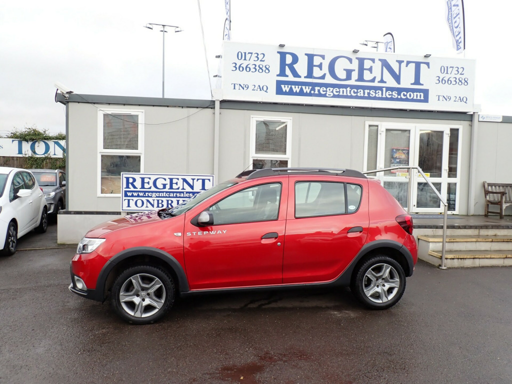 Fusion Red Sandero Stepway - available now for your viewing and test drive in Tonbridge where we are open 7 days a week. v power socket by gear lever, 12v socket for rear passengers, aux input, bluetooth connectivity, dab-fm-am radio, usb connection for mp3 players, 16in steel wheels - stepway design, black wheel arch extensions, bumpers - front and rear body coloured, chrome front grille strip, door handles - black, door mirrors - manually adjustable, door mirrors - metal grey, electric windows - front, fog lamp embellisher - satin chrome, heated rear window, manual windows - rear, roof bars - metal grey, side sills - black, skid plates - front and rear - satin chrome, stepway logo on front door panel, tinted windows, tyre inflation kit, 3-point rear seatbelts x3, airbags - driver, airbags - front passenger with deactivation function, airbags - front side, anti-intruder automatic door-locking system, anti-lock braking system - abs and emergency brake assist - eba, central locking - remote, child locks in rear doors, esc - electronic stability control with asr - traction control and hill start assist - hsa, height-adjustable front seatbelts, isofix points for child seats in both outer rear seats, seatbelt not fastened - visual and audible warning, thatcham approved engine immobiliser, 3-speed front windscreen wipers, air recirculation - 4-speed heating and ventilation, air vents - satin chrome, boot light, central console surround - satin chrome, door handles - interior front - satin chrome, door handles - interior rear - satin chrome, door panels - two-tone dark carbon-light grey, front courtesy light, front passenger grab handle, headrests - rear height adjustable x3, height-adjustable drivers seat, height-adjustable front headrests, height-adjustable steering wheel, instrument dial surrounds - satin chrome, manual air conditioning, map pockets on front seatbacks, rear passenger grab handles, rear washer-wipe, seats - 60-40 split folding rear, sunvisor with vanity mirror - passenger, door open - visual warning, eco mode, gear shift indicator, power assisted steering, raised ride height, rev counter, tyre pressure monitor, front fog lights, headlights - double optic with chrome surrounds, headlights left on - audible and visual warning, high level third brake light, led automatic daytime running lights