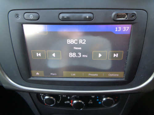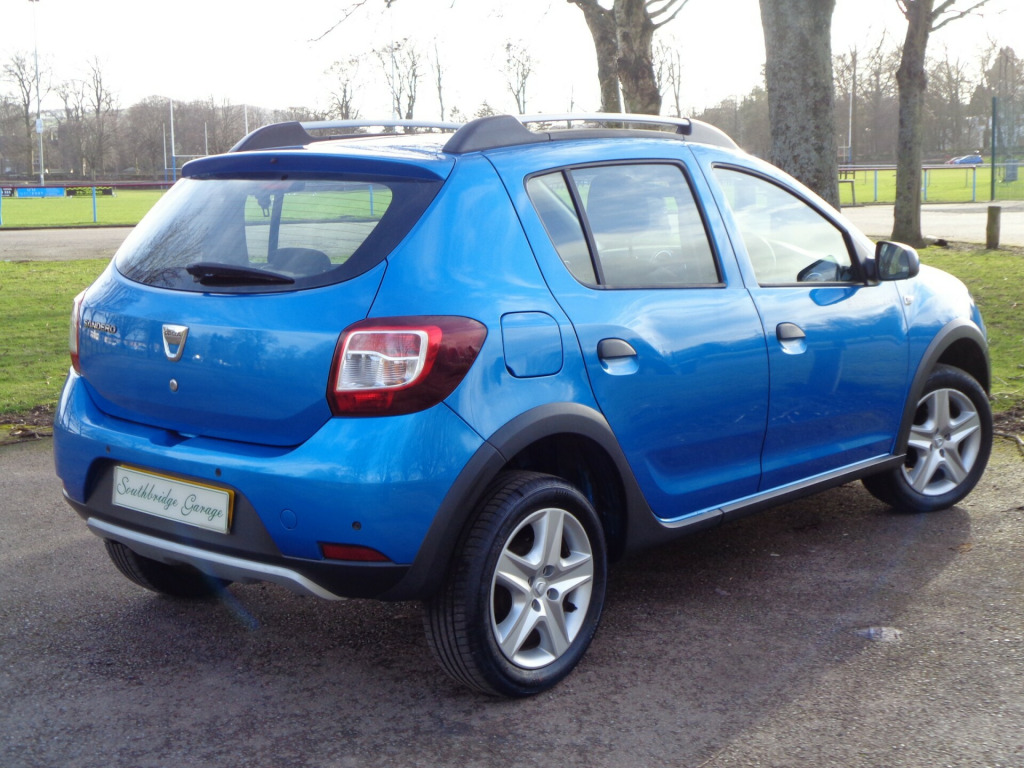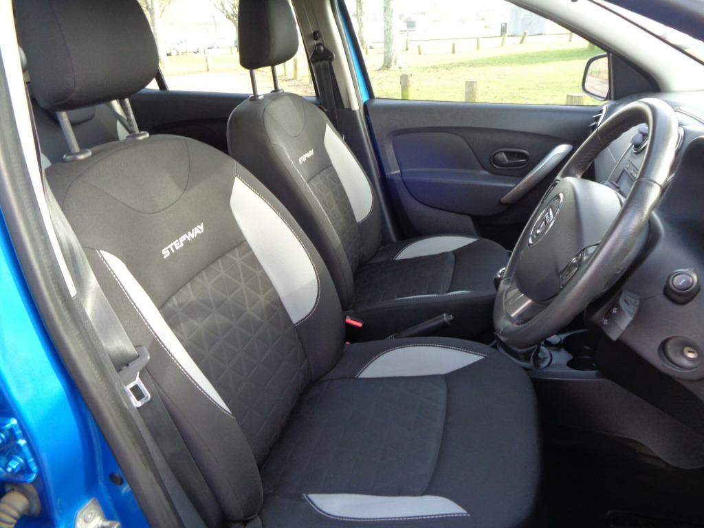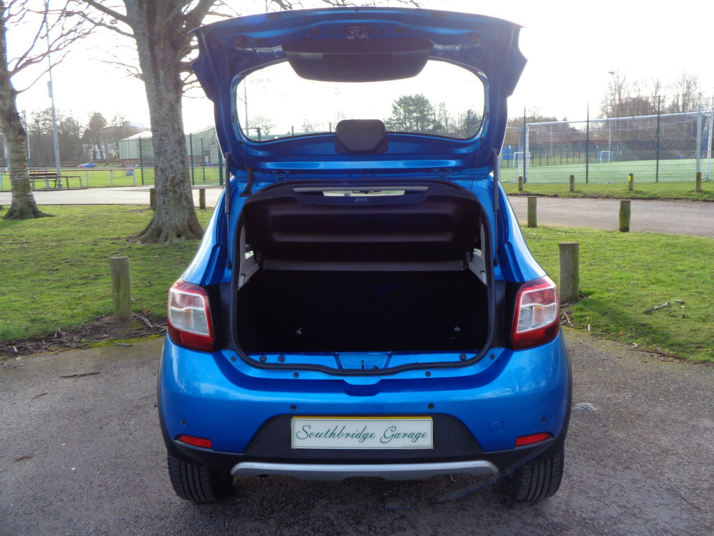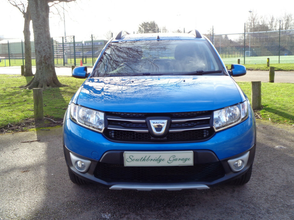 ONLY £35 for road tax on this Azurite Blue top spec Dacia Sandero Stepway. This sits a little higher than the regular Sandero, making it easier to get in and out of. It also comes with the 7'' touchscreen with Satellite Navigation, Bluetooth, etc. Give us a call on 01334 656746 if you would like to come and see it or, if you are not already on it, click the link through to our website for many more photos. Part exchange welcome. Southbridge Garage, Cupar, KY15 5HY. r conditioning, bluetooth connection, satellite navigation, usb/ipod interface, adjustable steering column, cruise control, power steering, rear parking sensor, abs, child locks, isofix child seat anchor points, immobiliser, remote central locking, electric front windows, electric mirrors, rear electric windows, auxiliary input socket, oem sound system, front head restraints, height adjustable drivers seat, folding rear seats, rear headrests, body coloured bumpers, front fog lights, metallic paintwork, rear wash/wipe, roof rails, tyre repair kit, lez compliant