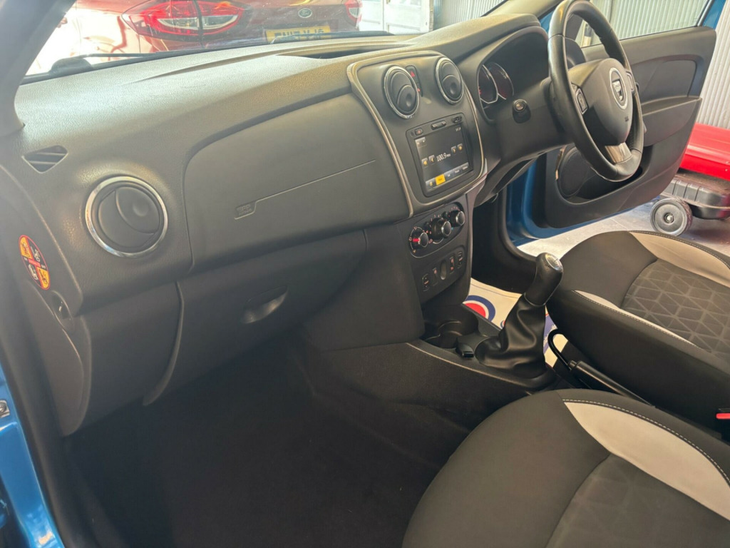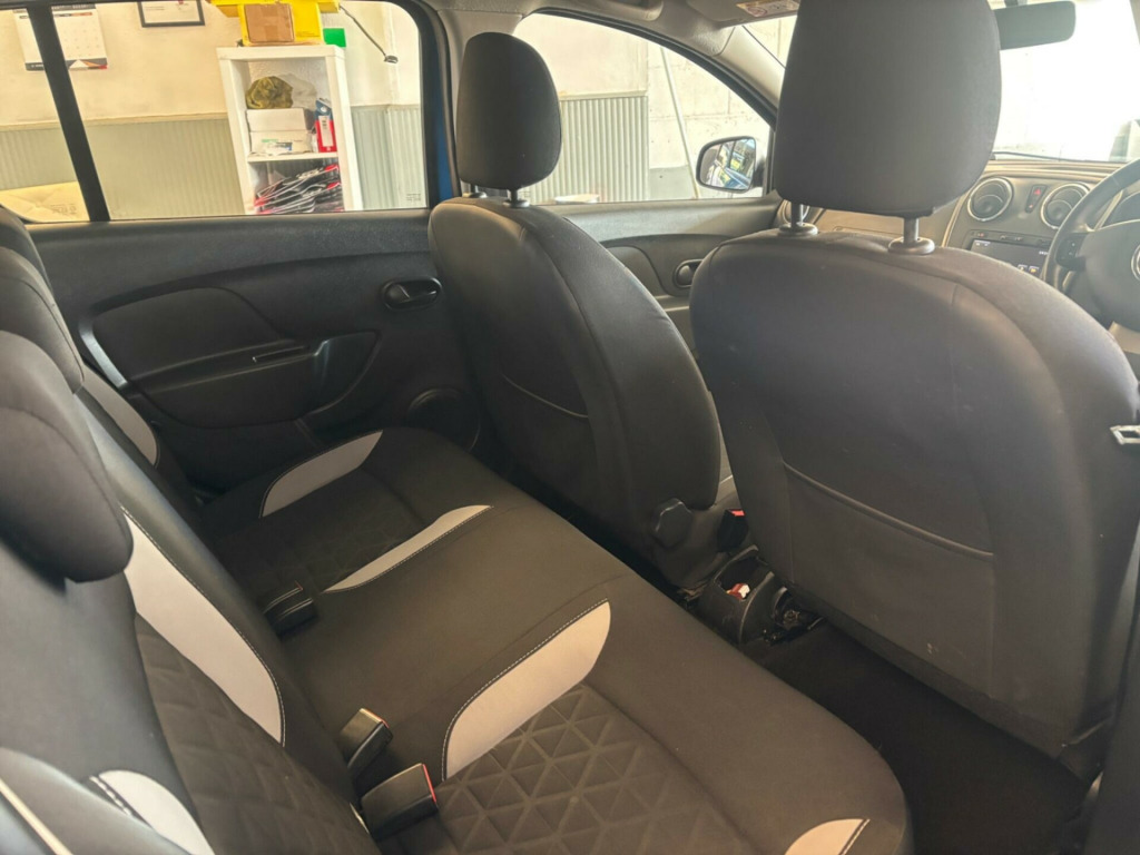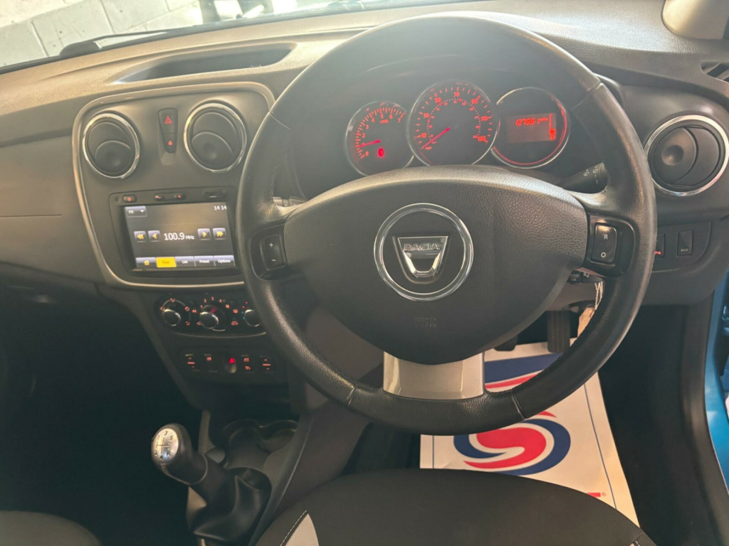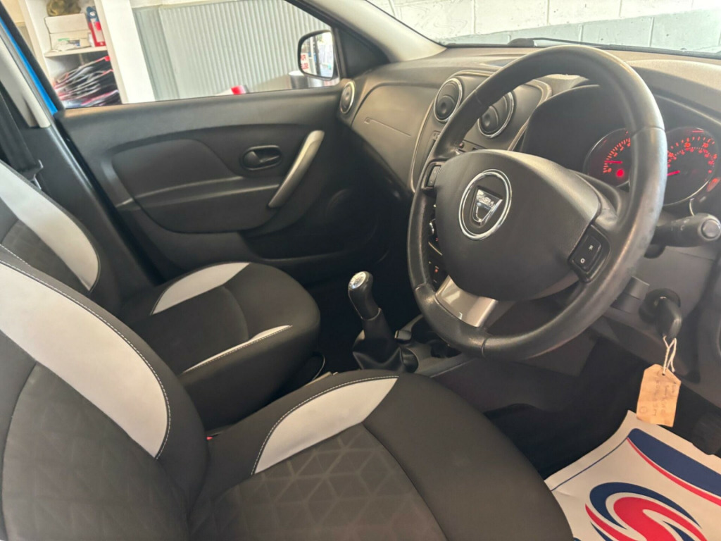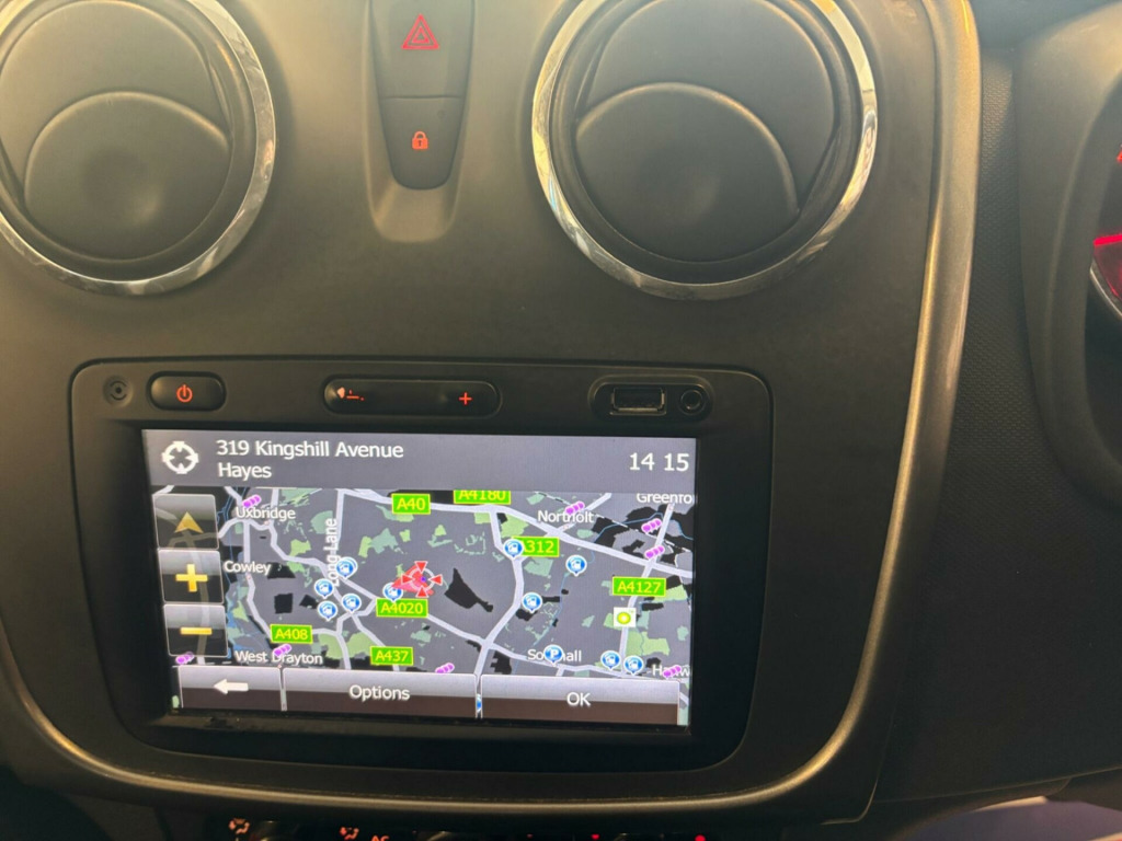 This 2014 Dacia Sandero Stepway TCe Laureate is a great find, having had only two owners from new. It boasts a 0.9L petrol engine and comes with a 3 month warranty for your peace of mind. Inside, you'll find manual air conditioning to keep you comfortable, and Bluetooth connectivity for streaming your favourite audio. The radio system, developed by Arkamys, offers 24 AM FM presets for your listening pleasure, and rear parking sensors are included to assist with parking.The Sandero Stepway Laureate stands out with its low insurance group, making it an economical choice for many drivers. It also offers generous boot space, providing ample room for shopping, luggage, or equipment. These features, combined with its practical design and efficient engine, indicate that this Dacia Sandero Stepway offers excellent value and usability compared to other vehicles in its class. v power socket, 16in alloy look wheels - stepway, abs - anti-lock braking system, asr - traction control, air recirculation - 4-speed heating and ventilation, air vents - chrome surrounds, airbags - driver, airbags - front passenger, airbags - front passenger deactivation, airbags - front side, anti-intruder automatic door-locking system, bluetooth connectivity for streaming audio, bumpers - front and rear body coloured, central locking - remote, centre console surround - graphite, child locks in rear doors, chrome front grille, chrome heating control inserts, cruise control and speed limiter, drl - daytime running lights, door handles - front graphite, door mirrors - body coloured, door mirrors - heated and electrically adjustable, door open - visual warning, driver and front passenger seat belt unfastened - visual and audible warning, eba - emergency brake assist, eco mode, esc - electronic stability control, electric windows - front and rear, front courtesy light, front fog light - satin chrome surrounds, front passenger grab handle, front passenger reading light, glovebox light, grab handles - rear passenger with coat hook, headlights - single optic with chrome surrounds, headlights left on - audible and visual warning, headrests - rear height adjustable x3, heated rear window, height-adjustable drivers seat, height-adjustable front headrests, height-adjustable steering wheel, high level third brake light, isofix points for child seats in both outer rear seats, instrument dial surrounds - chrome, luggage compartment - light, manual air conditioning, map pockets on front seatbacks, power assisted steering, radio with 24 am-fm presets and sound by arkamys, raised ride height, rear parking sensors, roof bars - satin chrome, satellite navigation - medianav 7in touchscreen multimedia system, satellite navigation - uk and ireland mapping, scuff plates - front and rear - satin chrome, seats - 60-40 split folding rear, side sills - black, speakers - x2 - front, steering column mounted fingertip controls, steering wheel - chrome logo surround, steering wheel - graphite lower insert, steering wheel - leather and gear knob, stepway logo on front door panel, sunvisor with vanity mirror - passenger, thatcham approved engine immobiliser, tinted windows, trip computer - 7 function, tyre inflation kit, usb and aux connection points